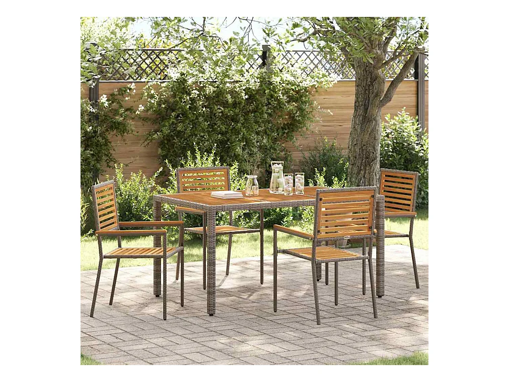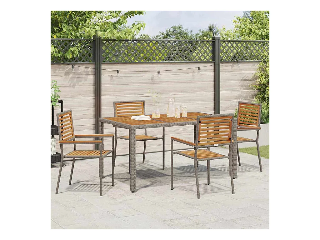 Set di 4 sedie da giardino in legno massello di acacia e acciaio inox