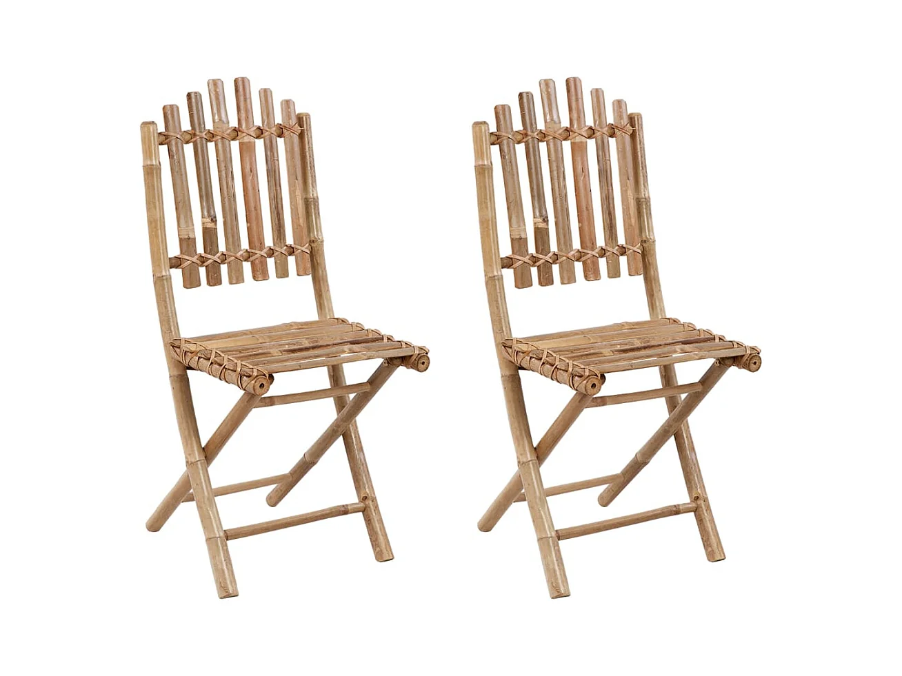 Sedie da giardino pieghevoli 2 pezzi con cuscini in bambù