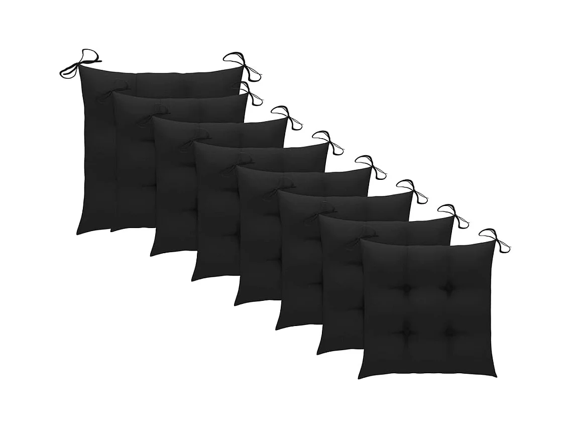 Set di 8 sedie da giardino con cuscini neri in legno massello di teak