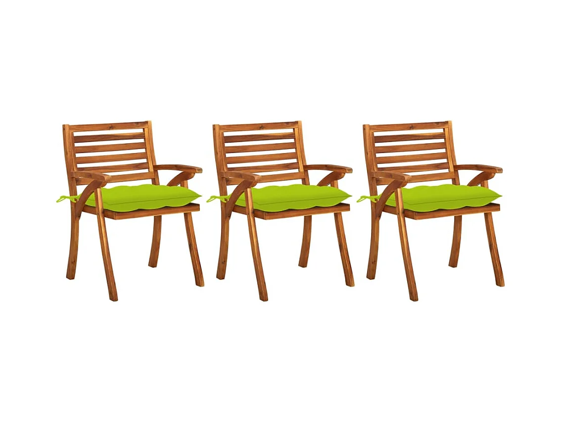 Sedie da pranzo da giardino con cuscini 3 pz. Massello di acacia