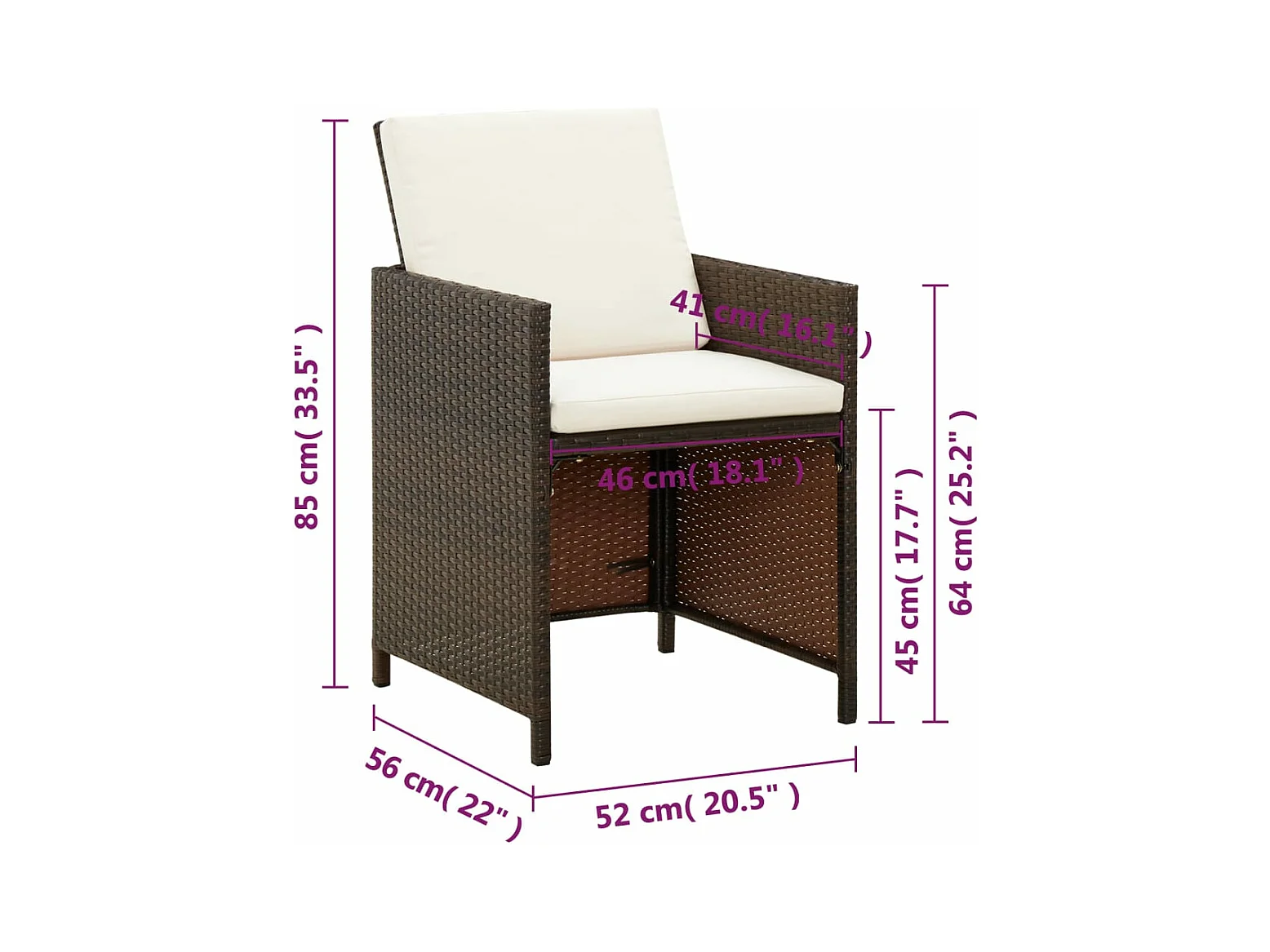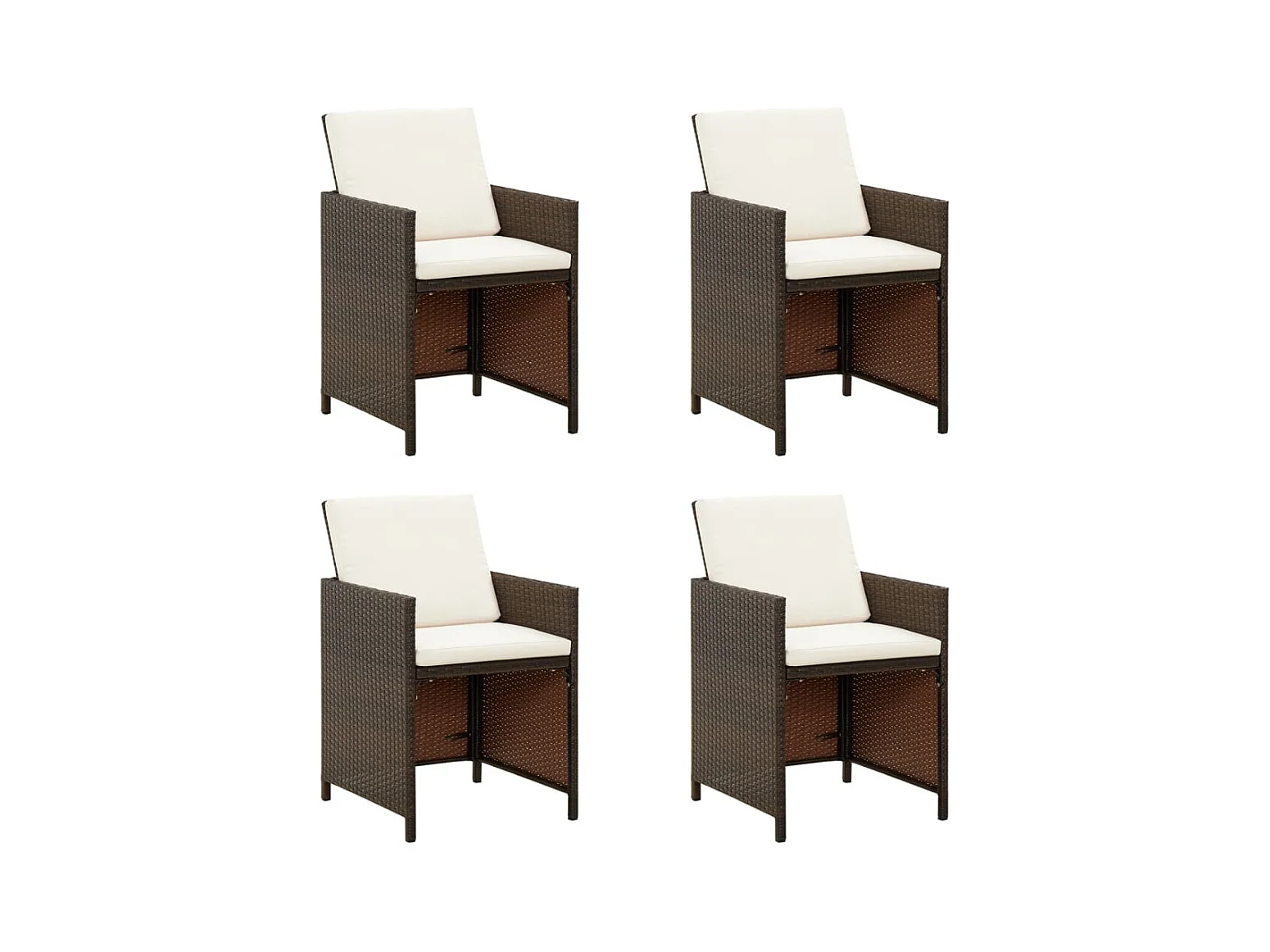 Sedie da pranzo da giardino con cuscini 4 pezzi in rattan marrone