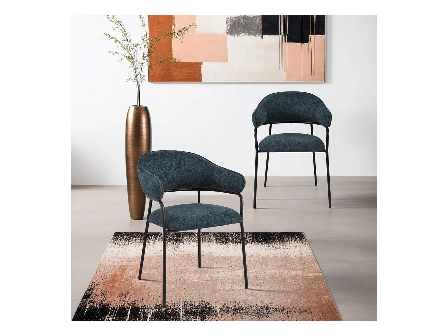 Sedie Rebecca Mobili Azobe 82,5x57x56,5 Tessuto Poliestere Acciaio Blu Petrolio Nero Moderno SET 2 pezzi