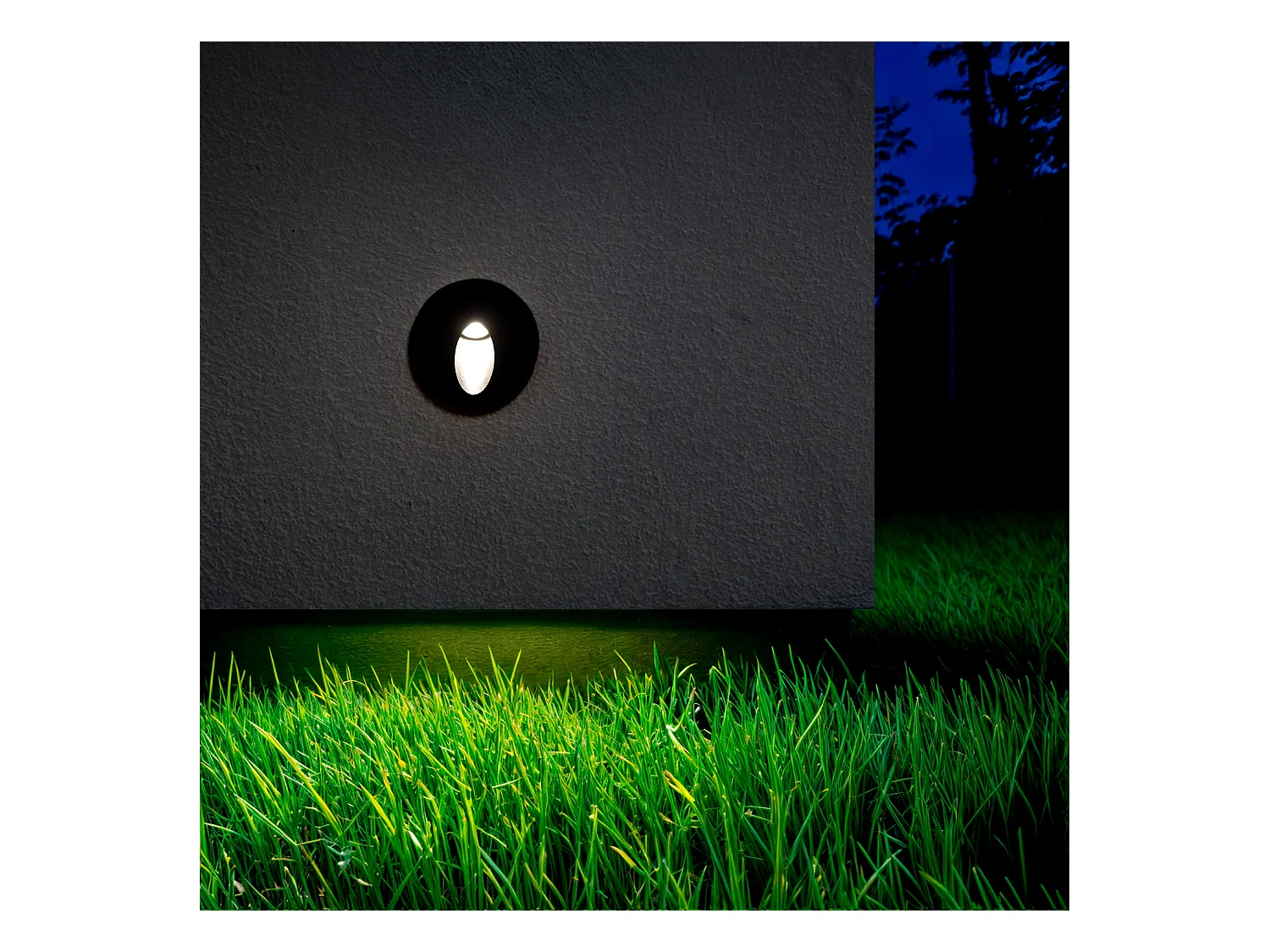 Segnapasso per Esterni LED 3W da Incasso a Parete Circolare Nero Boiler 4000K Bianco Naturale