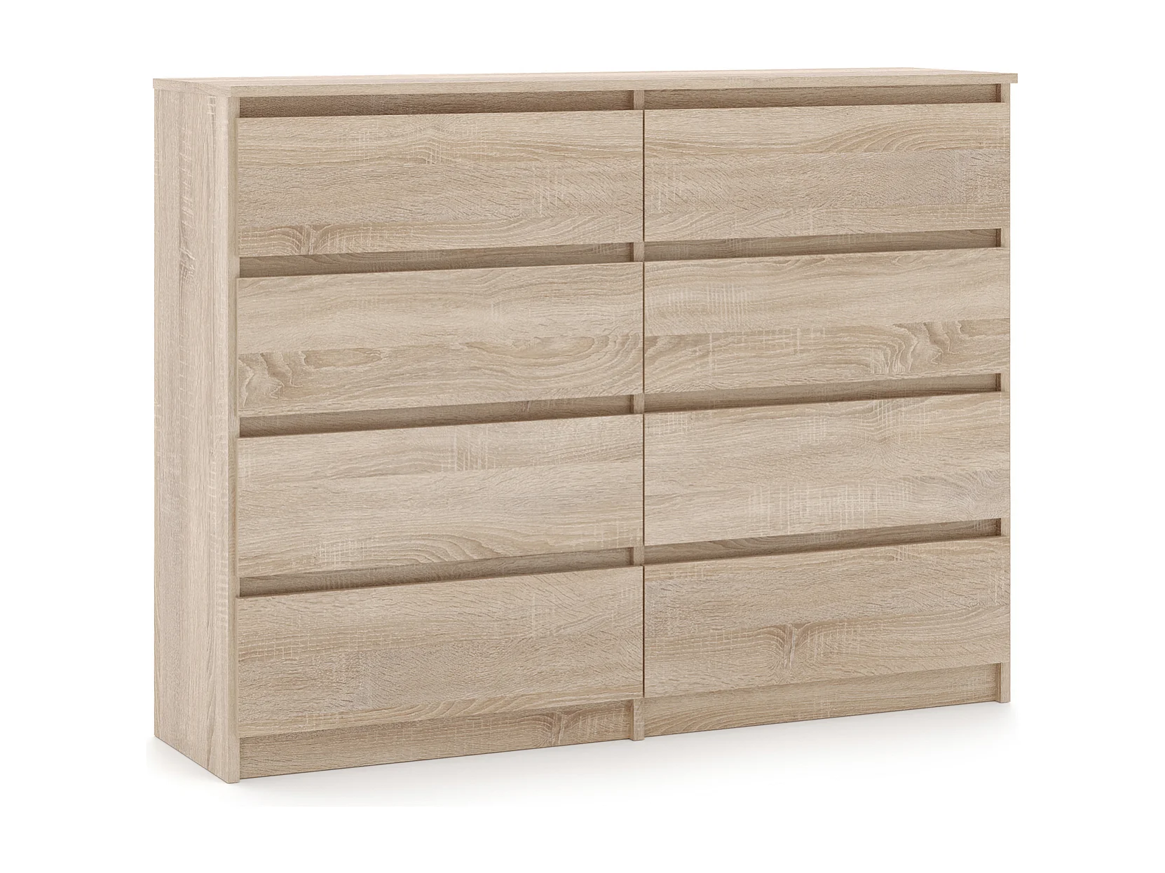Semplice comò 120 cm in quercia Sonoma con 8 cassetti