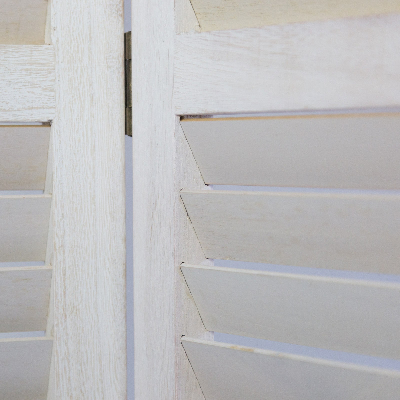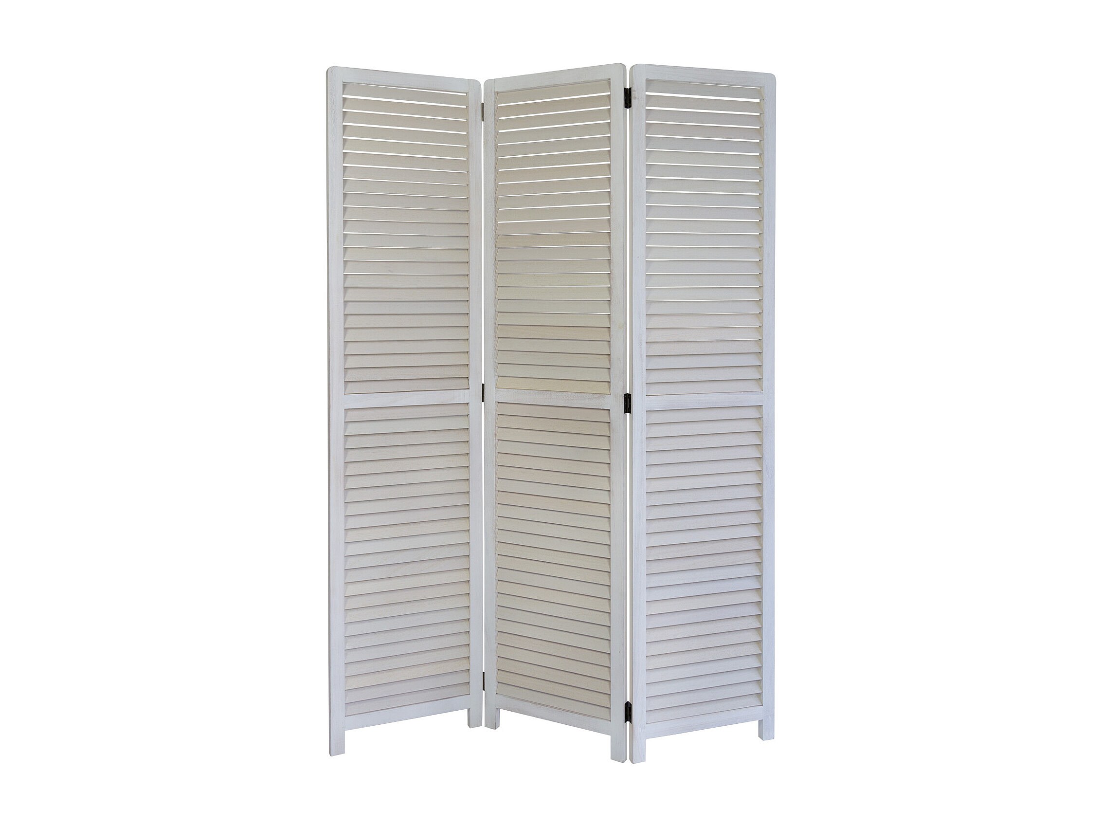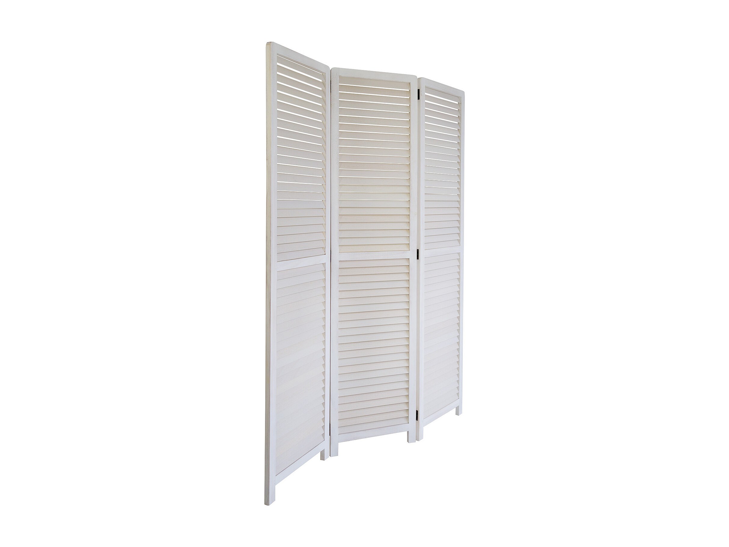 Paravento divisore separe con ripiani Yvelines T752 3 pannelli legno paulonia bianco