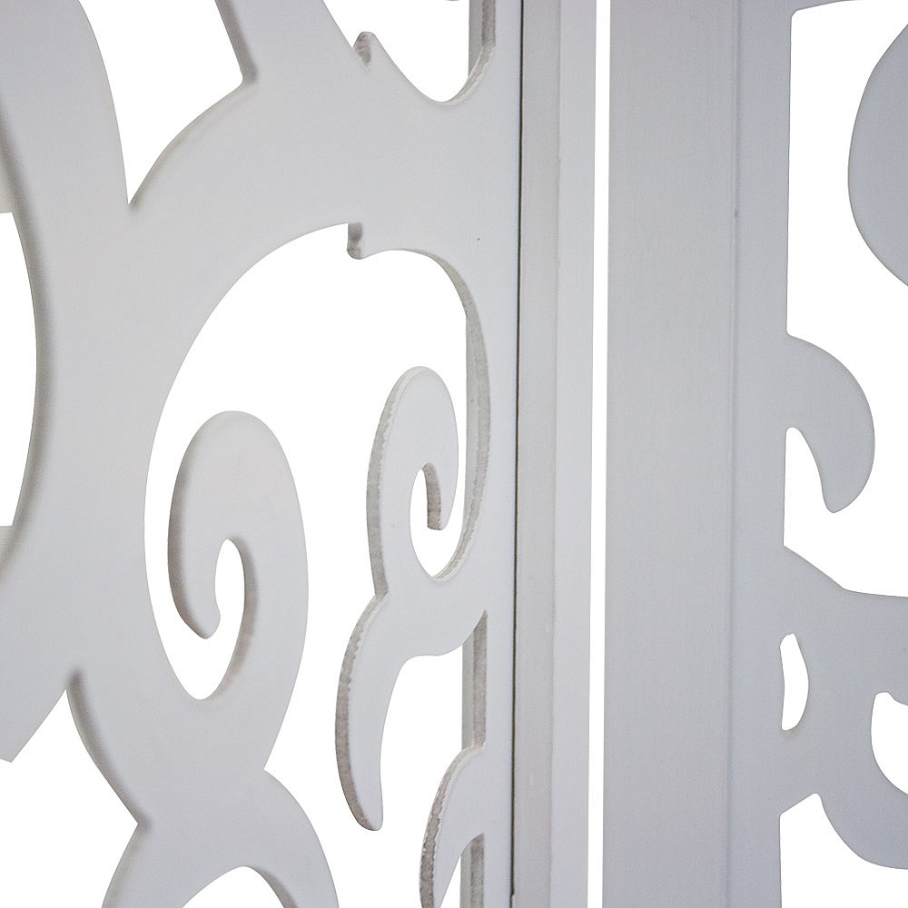 Paravento divisore separe con ripiani Yvelines T752 3 pannelli legno paulonia bianco