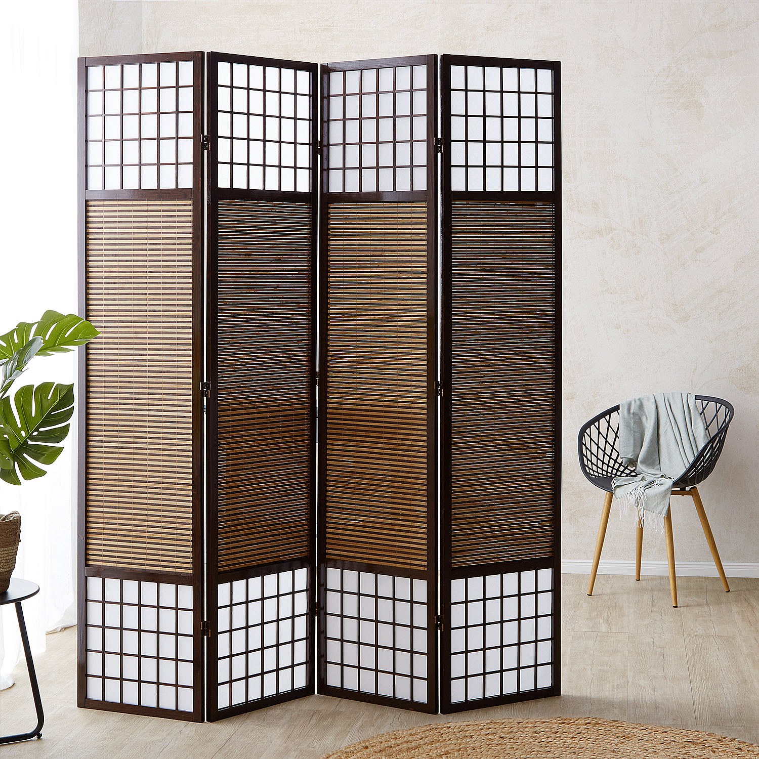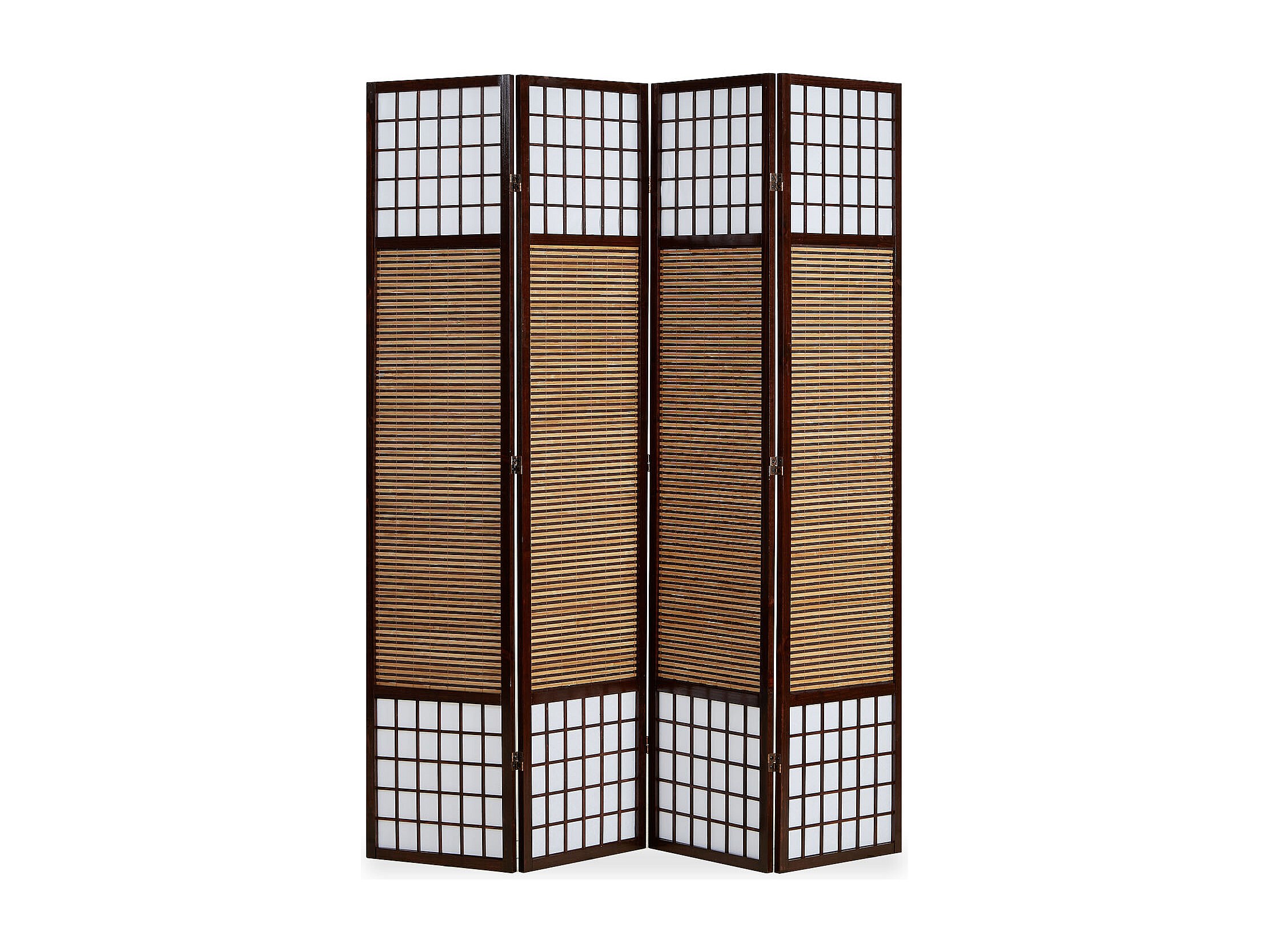 Paravento divisore separè decorativo MCW-A84 4 pannelli 161x170cm marrone