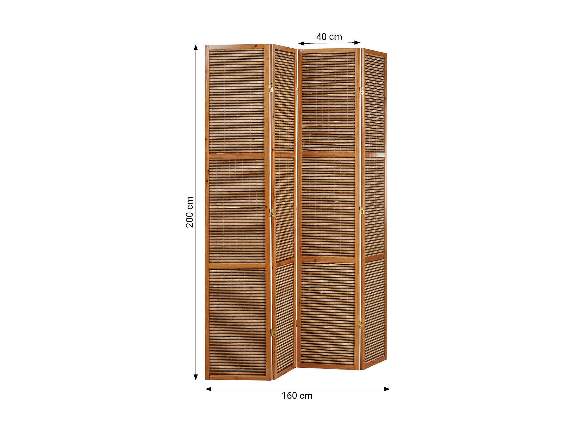 Parete divisoria 4 pannelli marroni in legno massello di paulownia