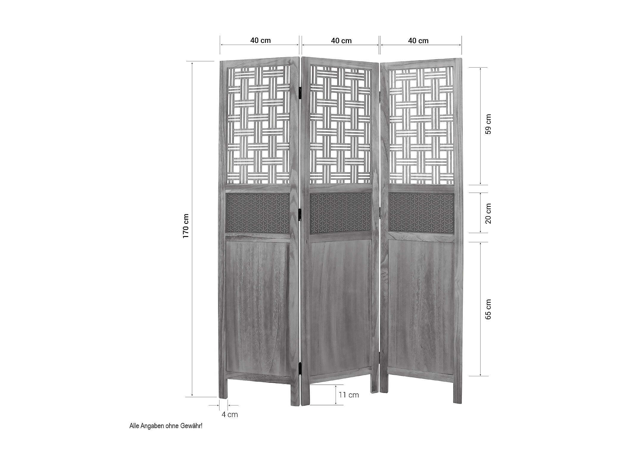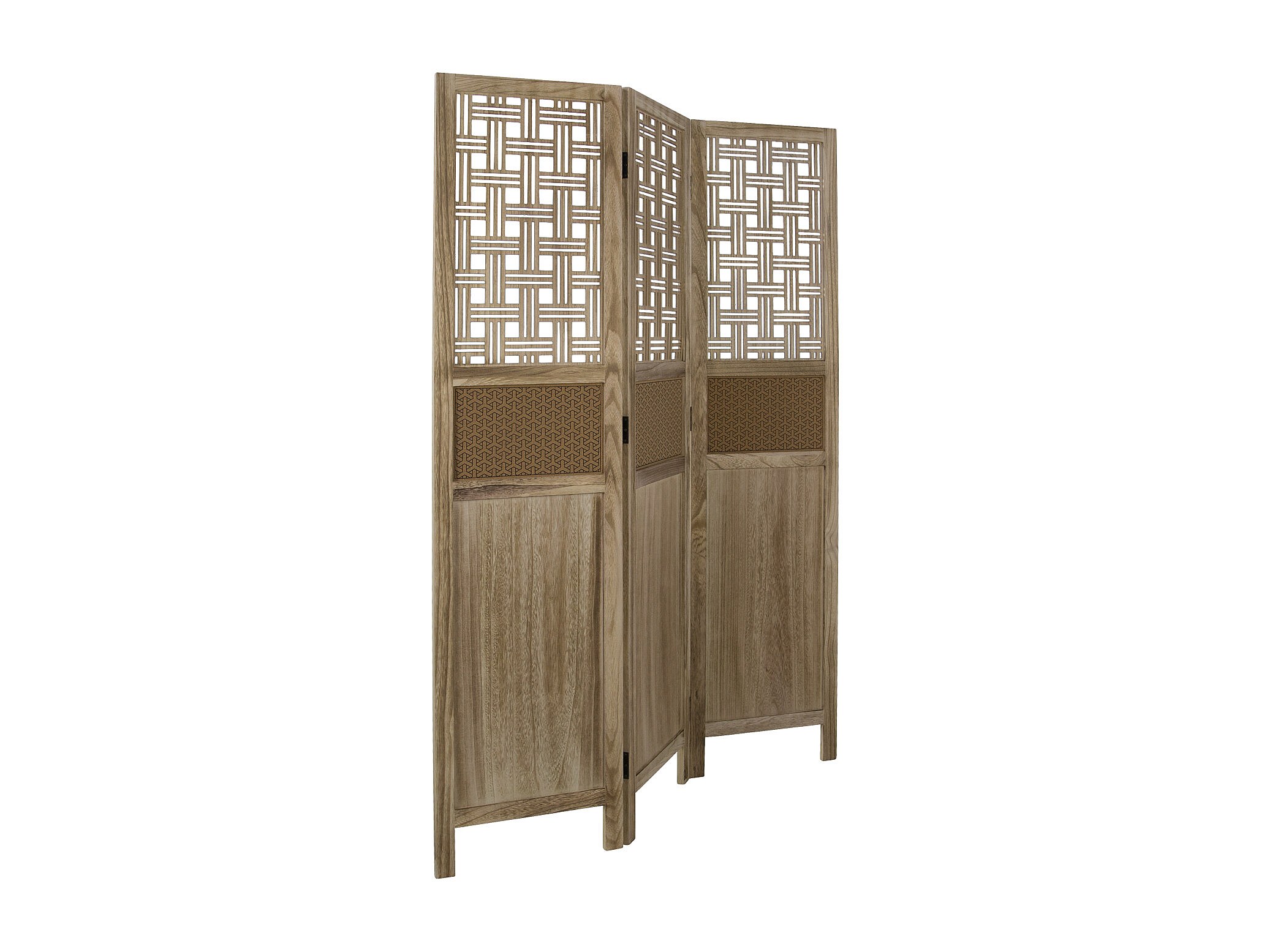 Separé 120x170x2,2 cm beige Paravento 3 pannelli pieghevole schermo in legno