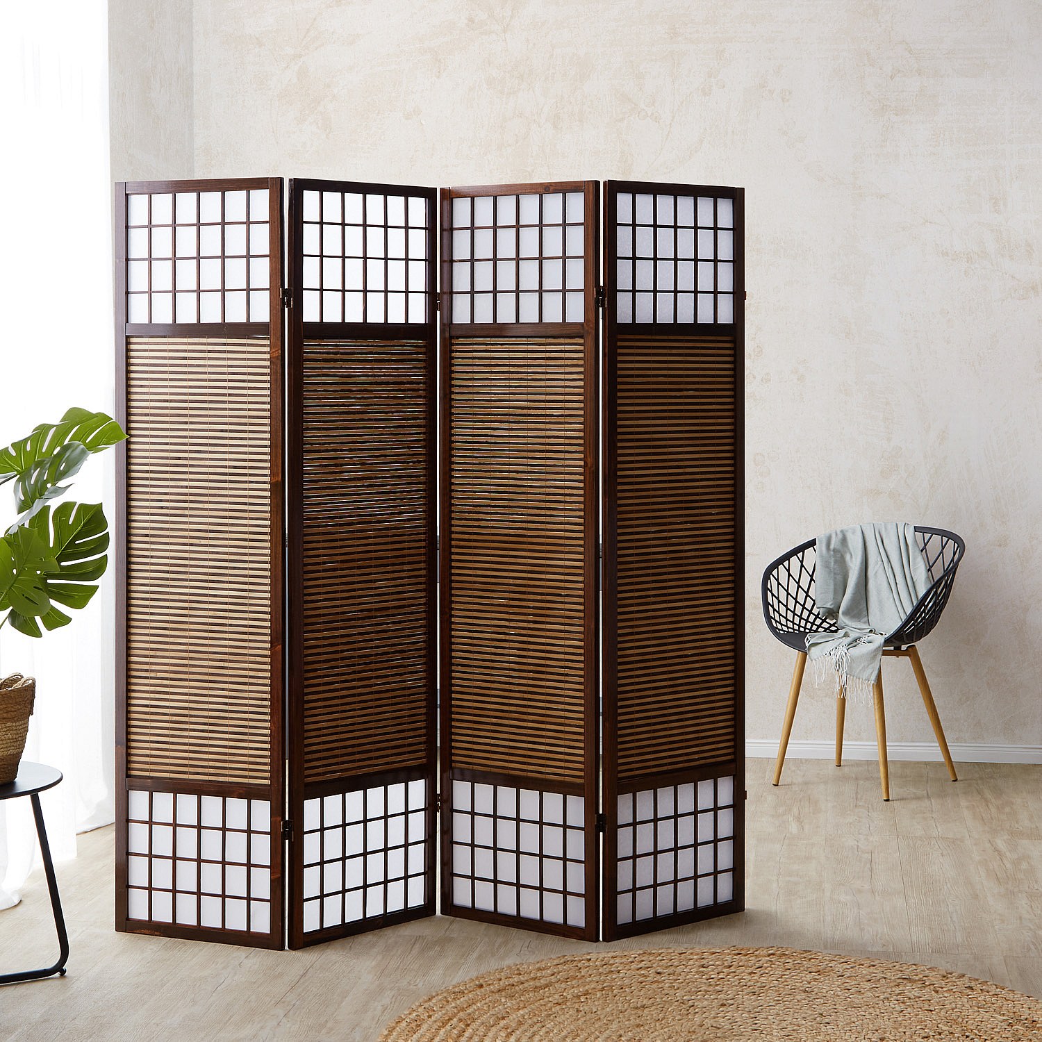 Paravento divisore separè decorativo MCW-A84 4 pannelli 161x170cm marrone