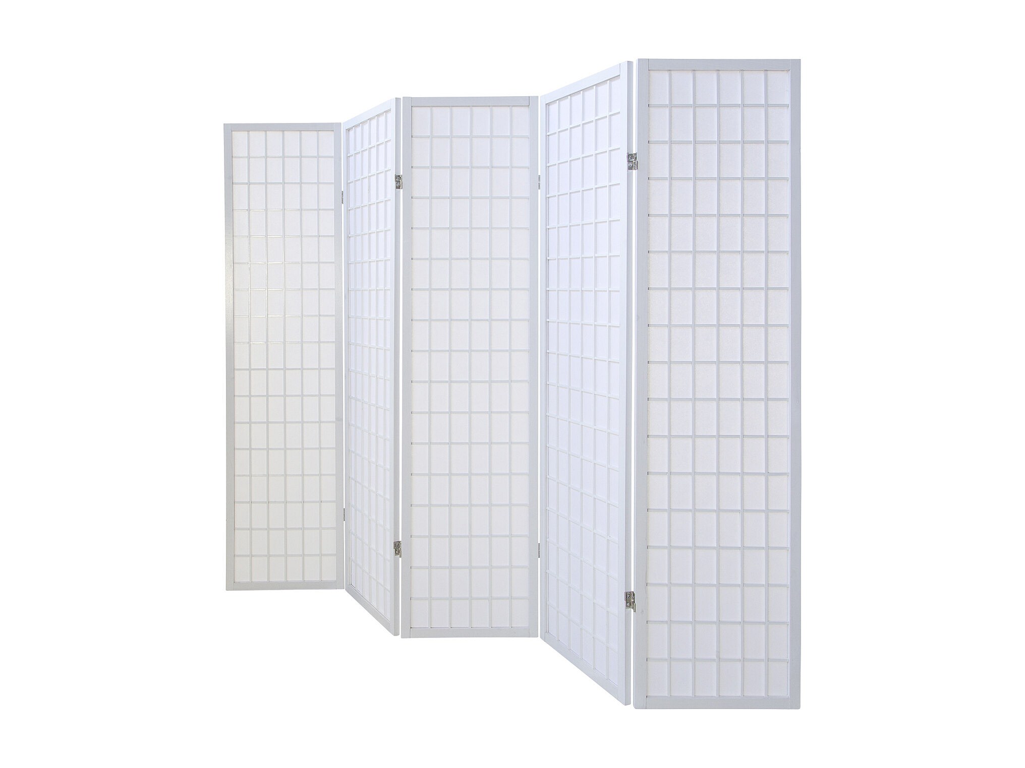 Parete divisoria 5 pannelli in legno massello di paulownia bianco