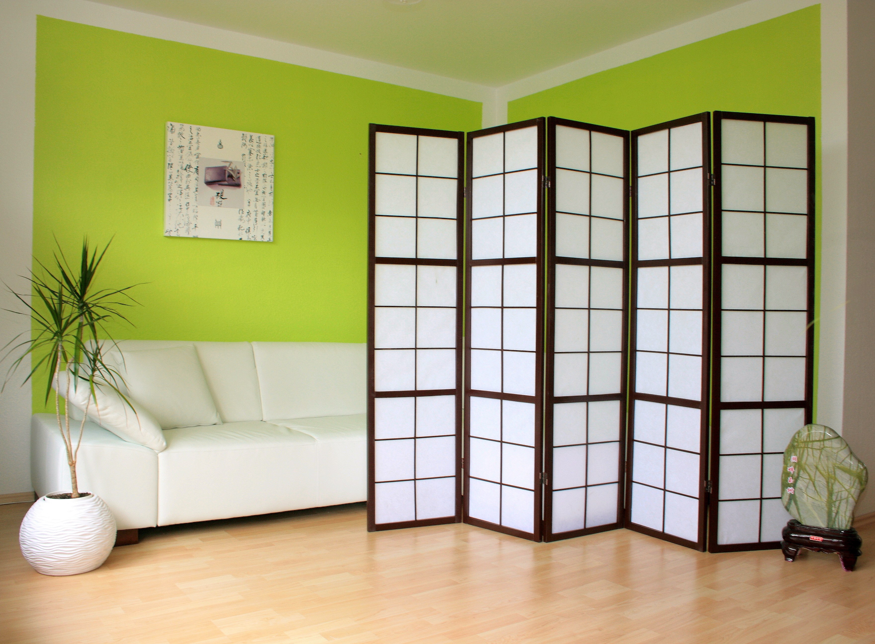 Parete divisoria nera a 5 pannelli in legno massello di paulownia