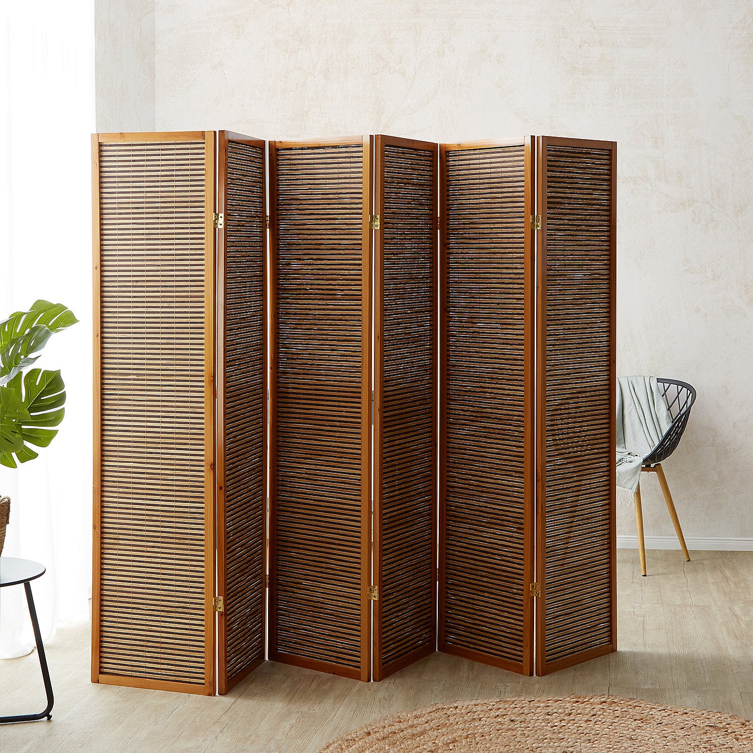 Paravento divisore separè decorativo MCW-A84 6 pannelli 245x170cm marrone