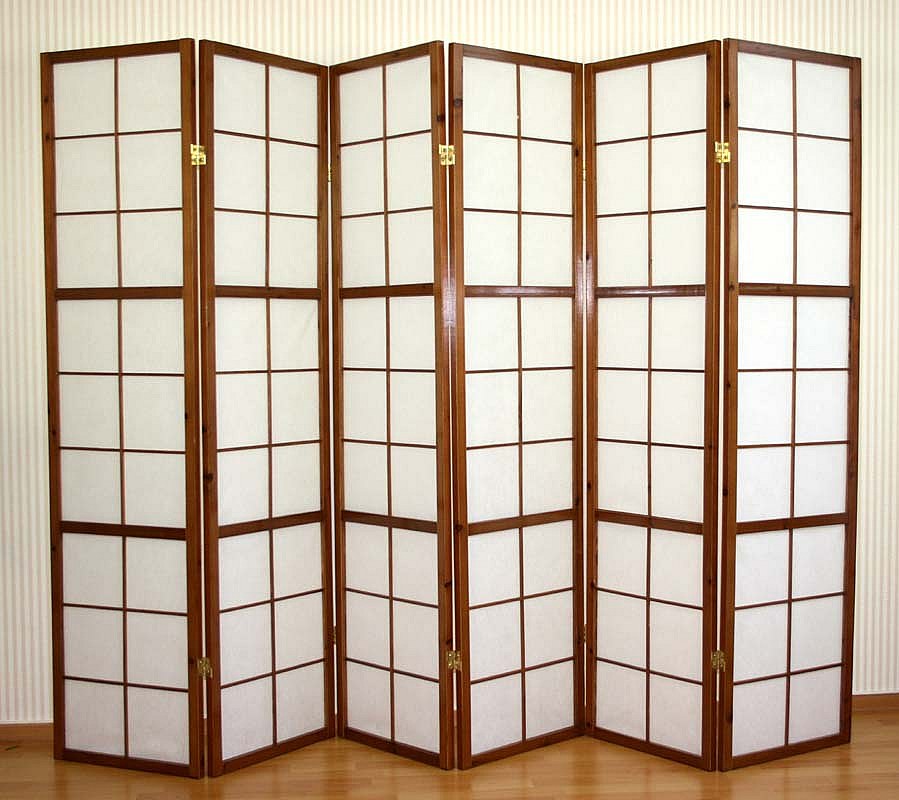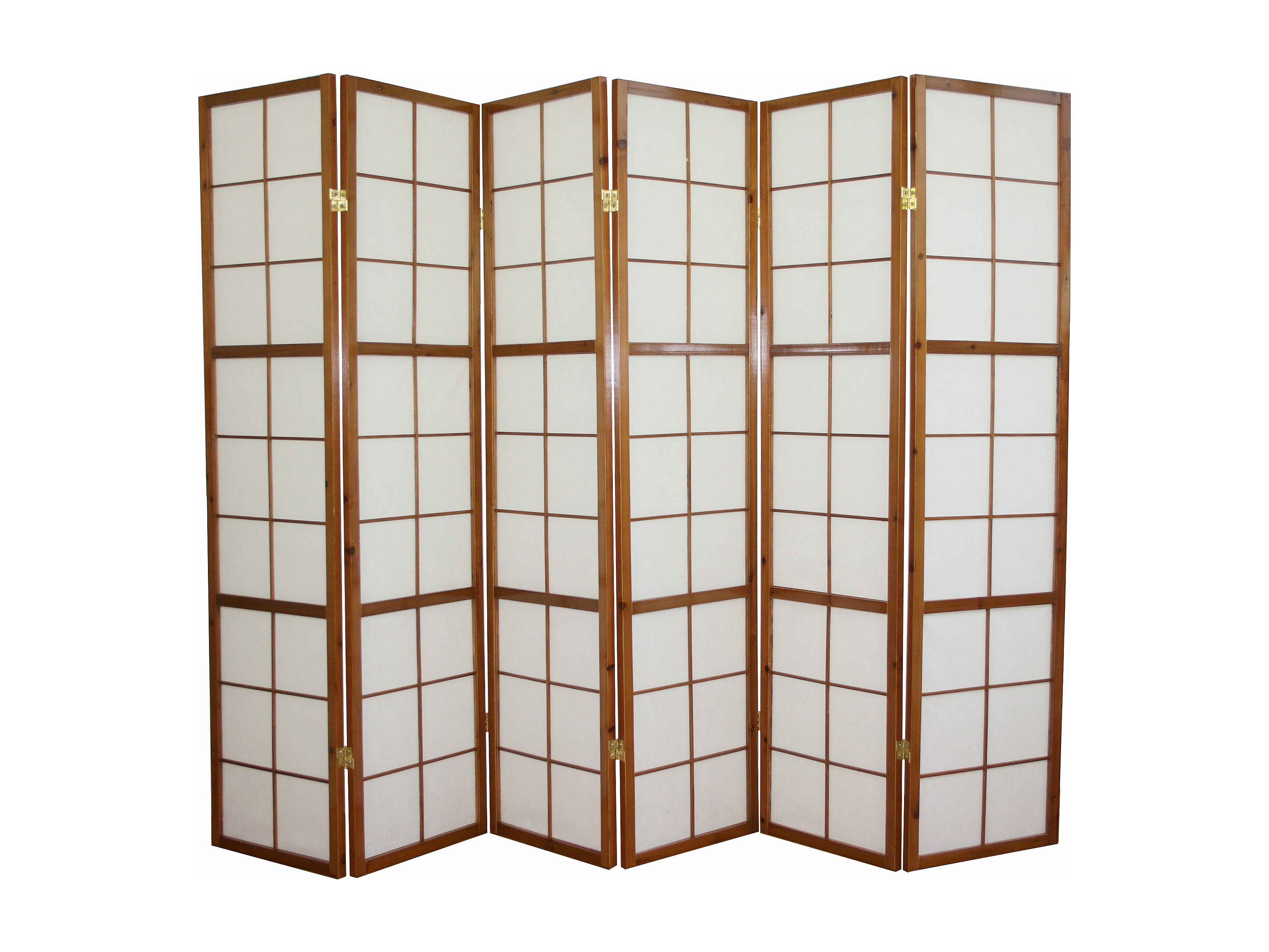 Parete divisoria 6 pannelli marroni in legno massello di paulownia