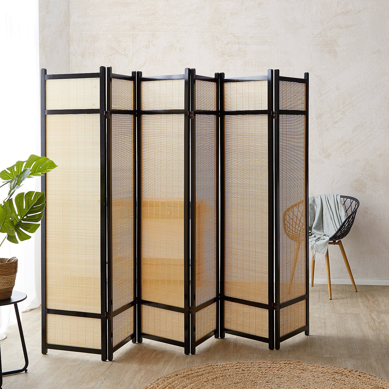 Parete divisoria nera a 6 pannelli in legno massello di paulownia