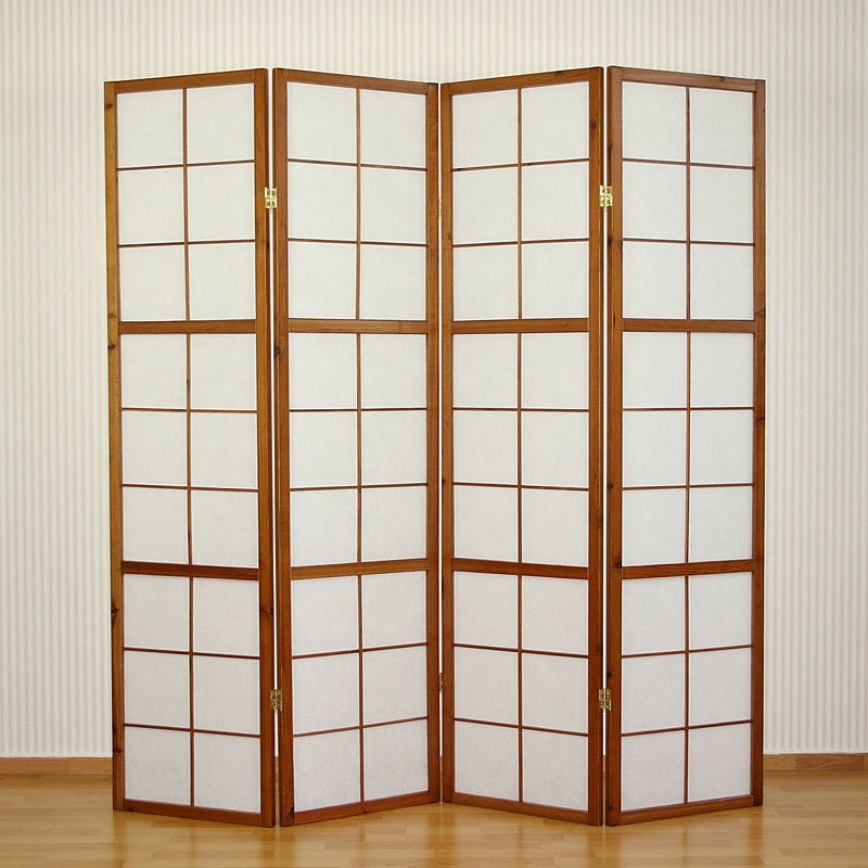 Paravento divisore separè decorativo MCW-A84 4 pannelli 161x170cm marrone