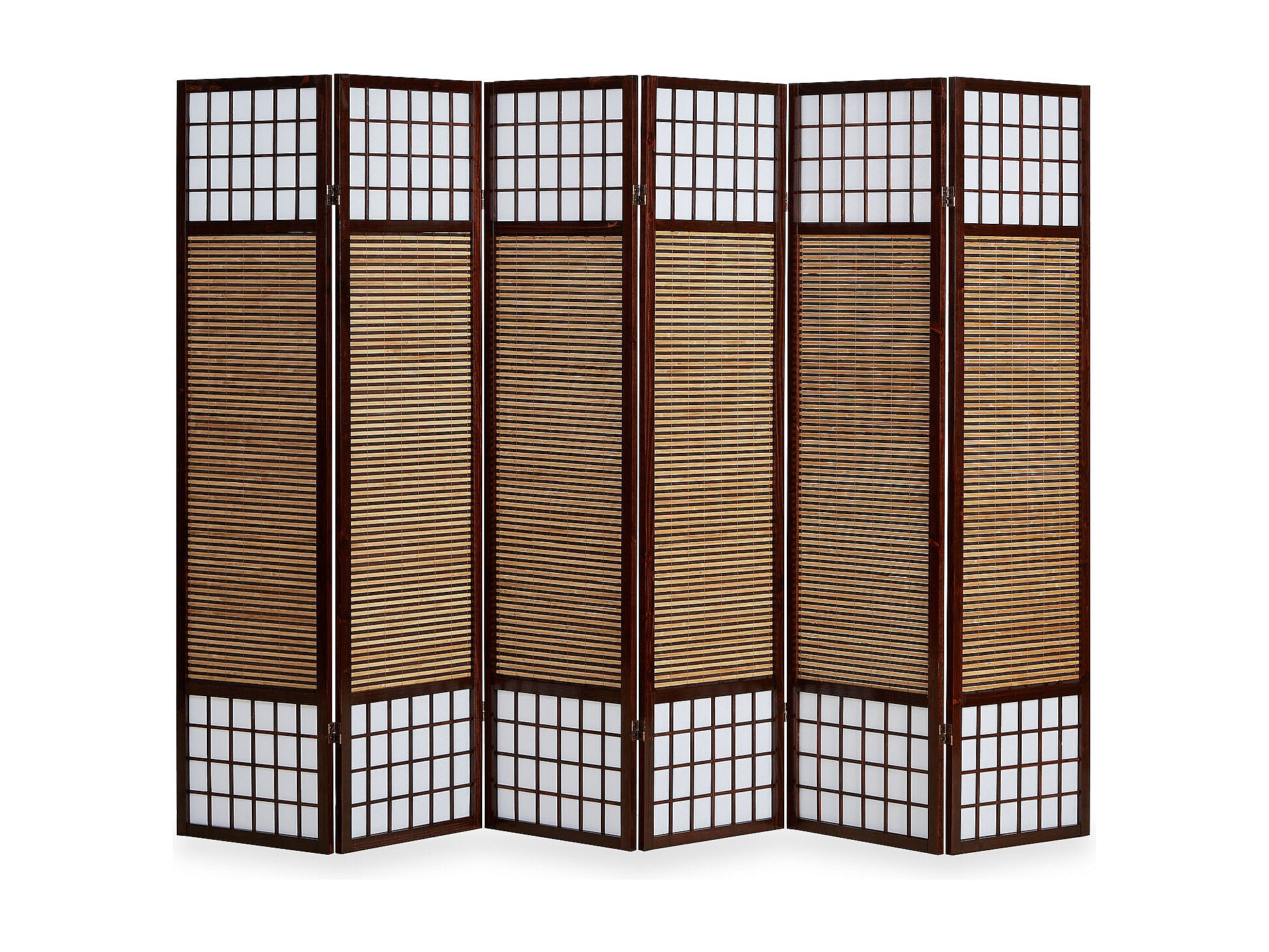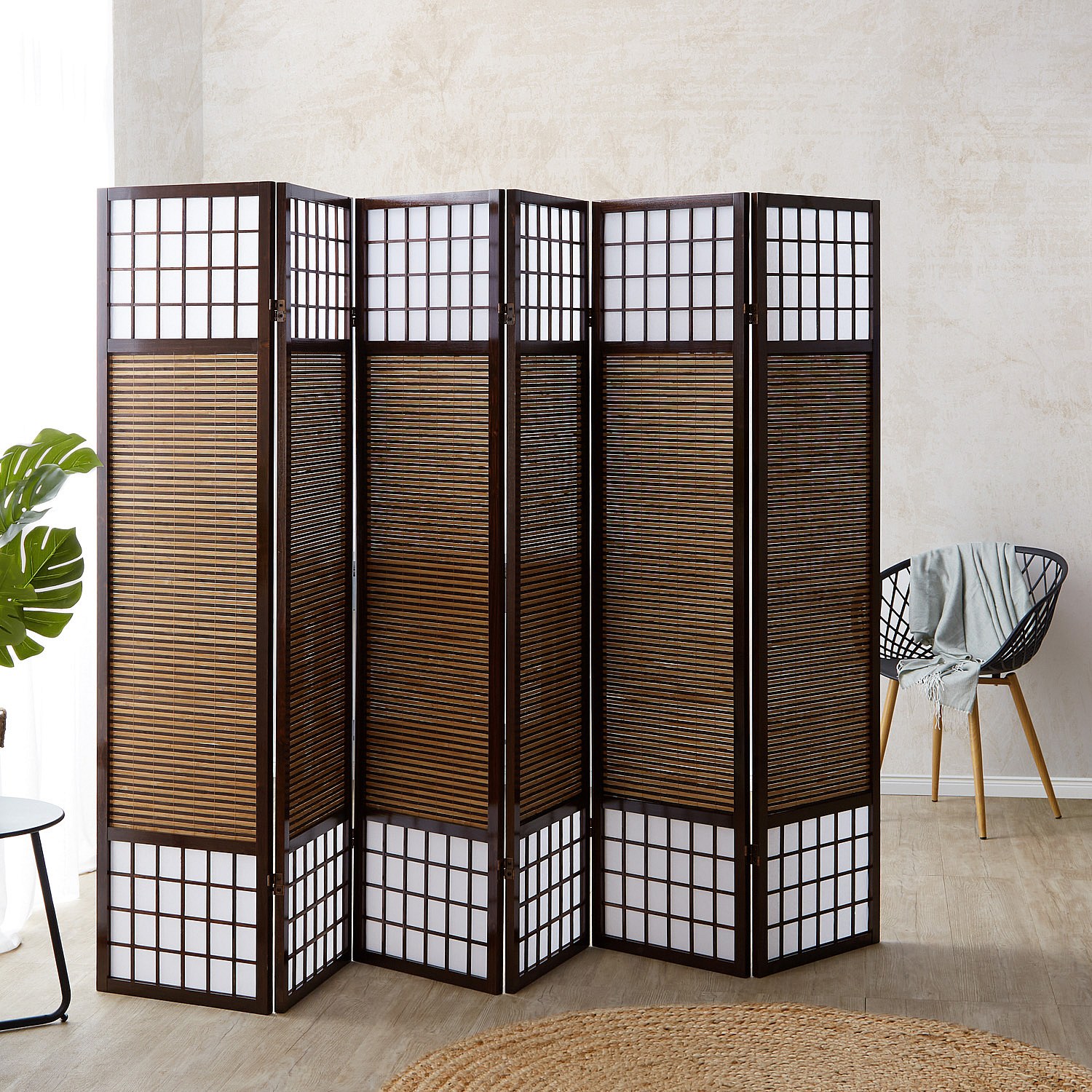 Paravento divisore separè decorativo MCW-A84 6 pannelli 245x170cm marrone