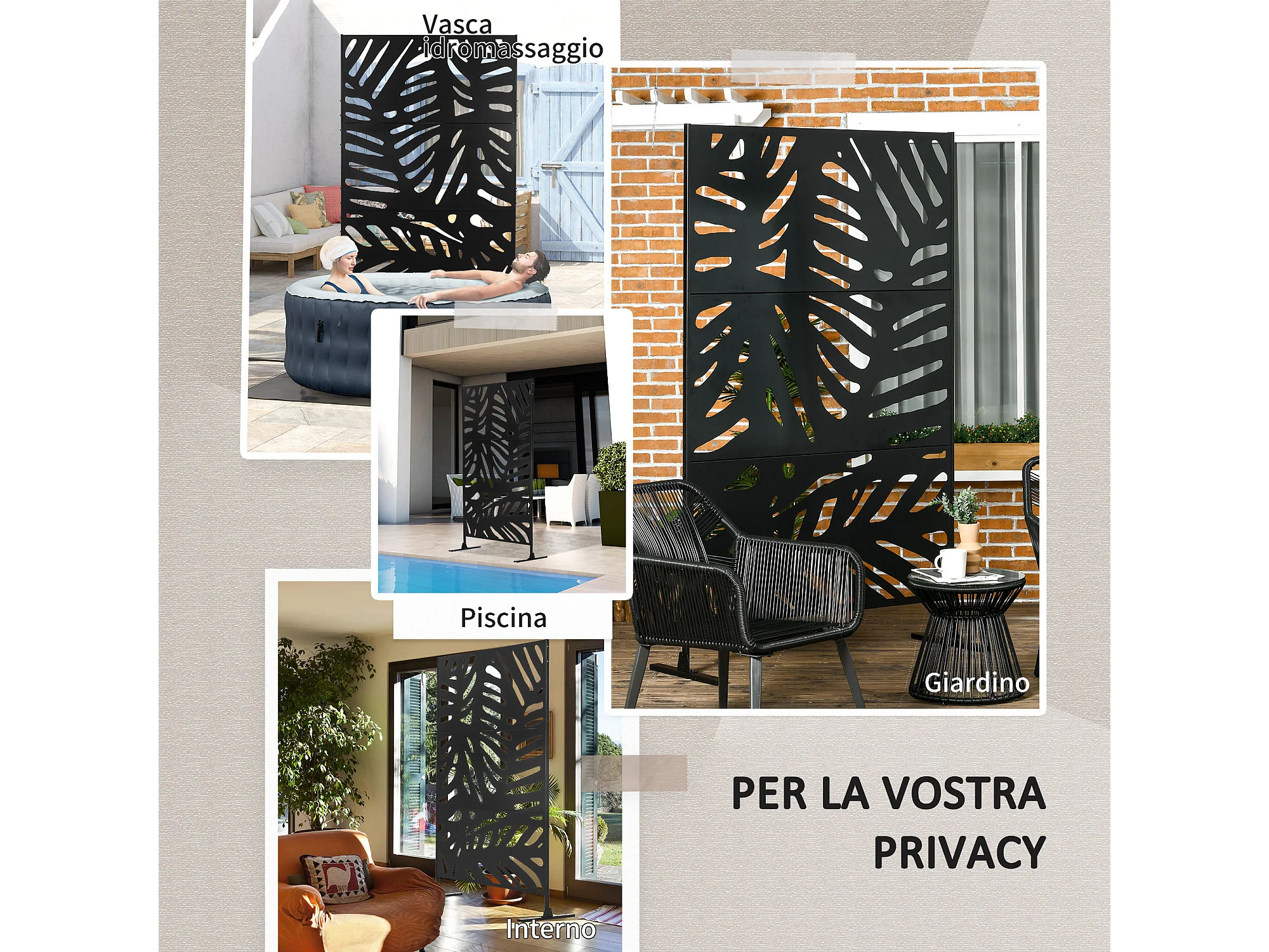 Separé a 3 ante verticali per esterno 122x45x198 cm nero