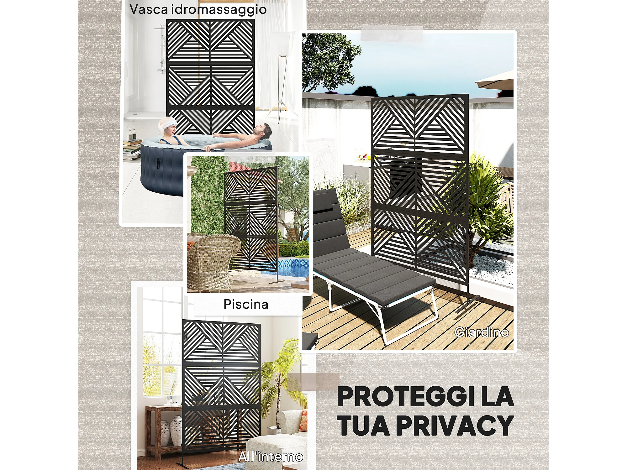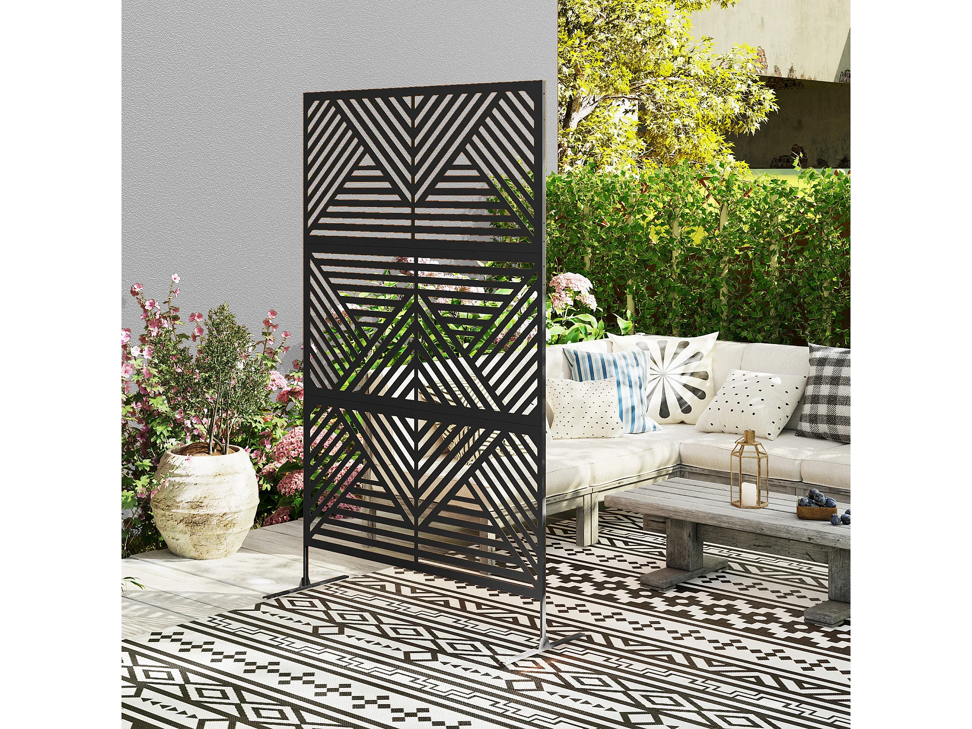 Separé da esterno e traliccio per rampicanti in acciaio nero