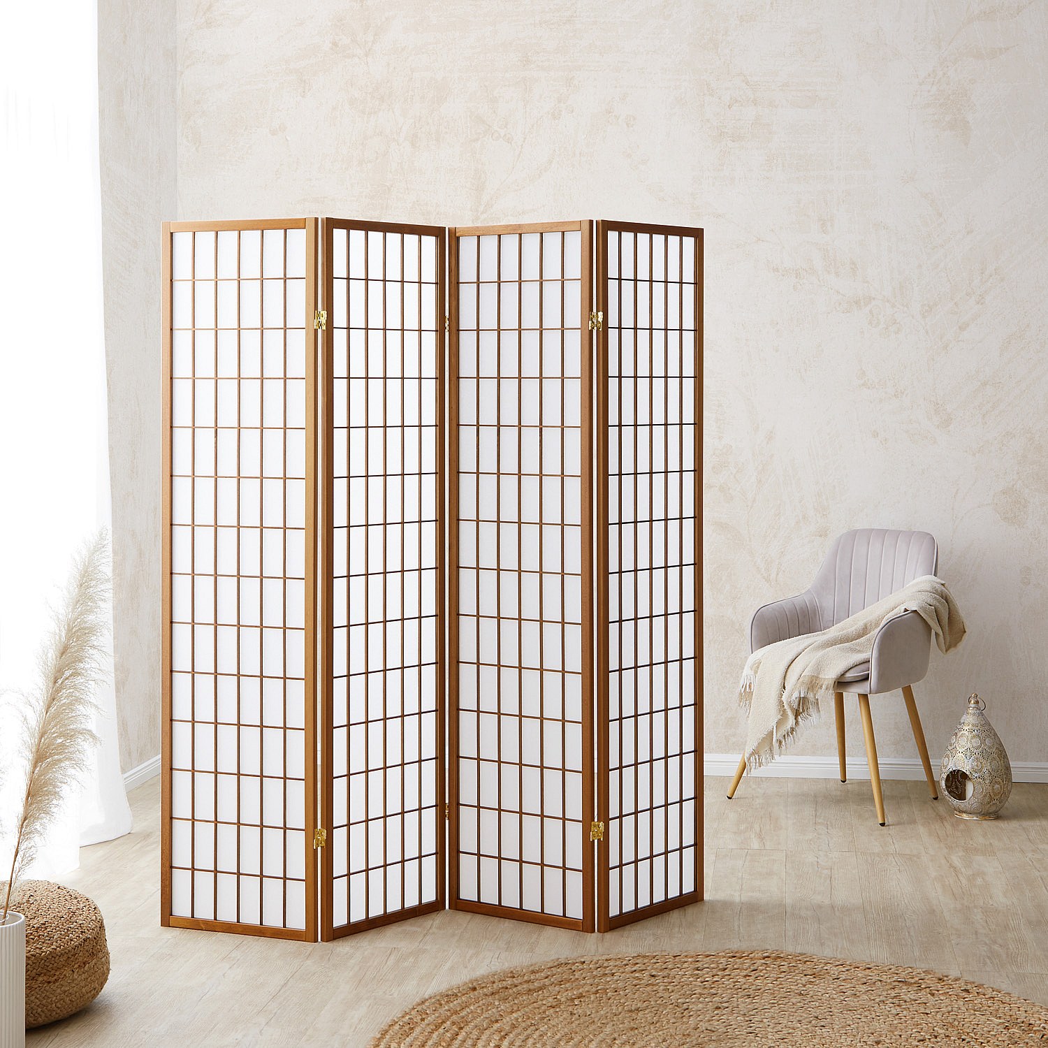 Paravento divisore separè decorativo MCW-A84 4 pannelli 161x170cm marrone
