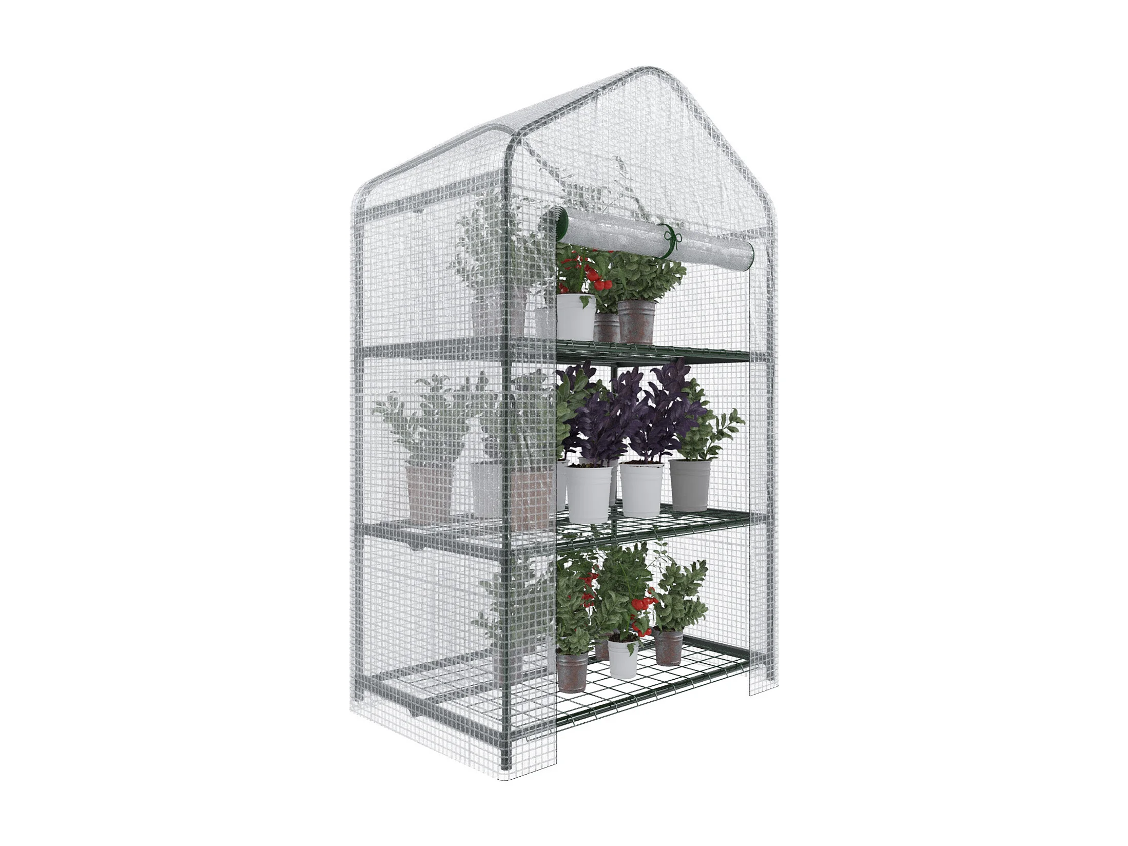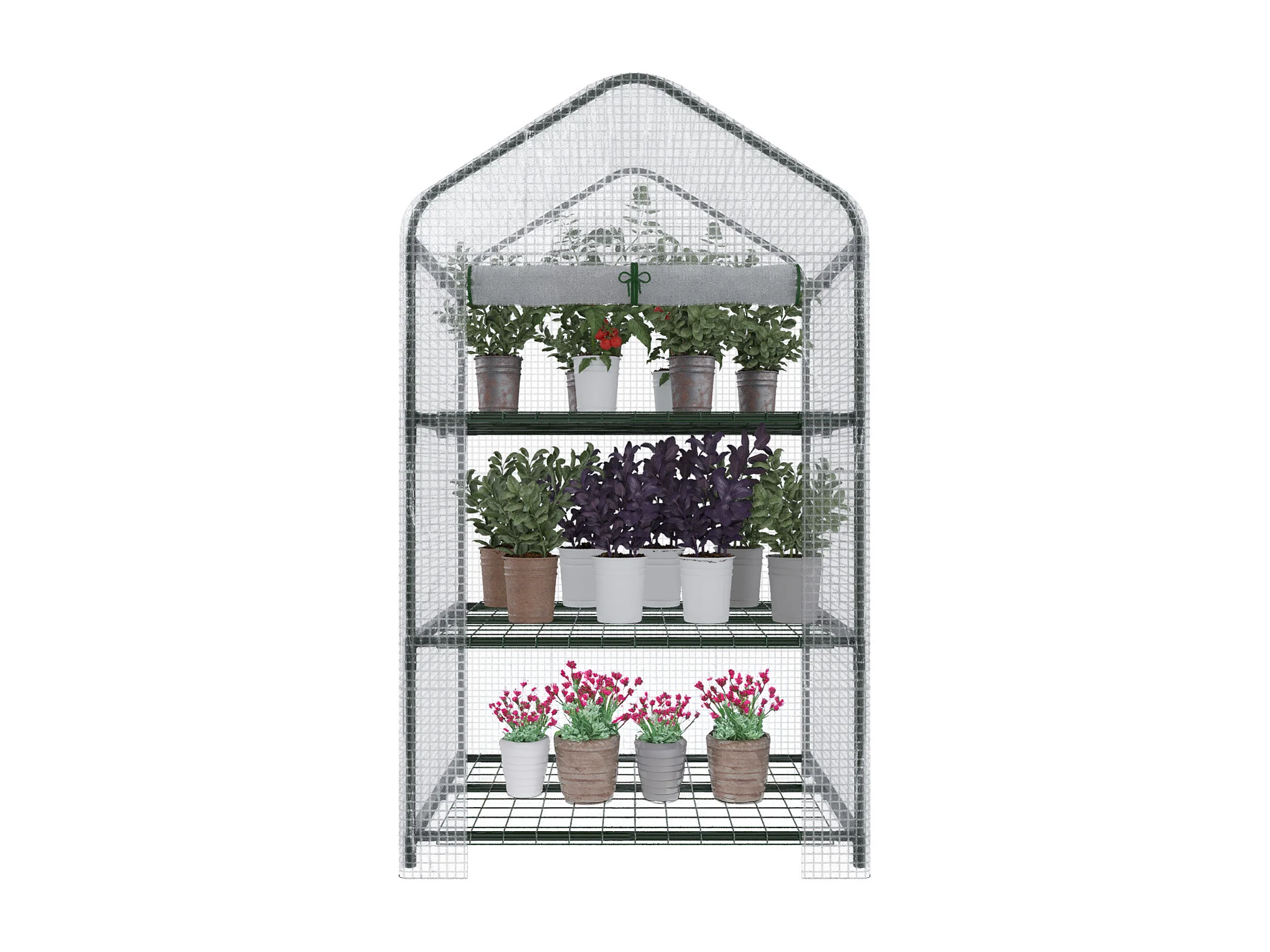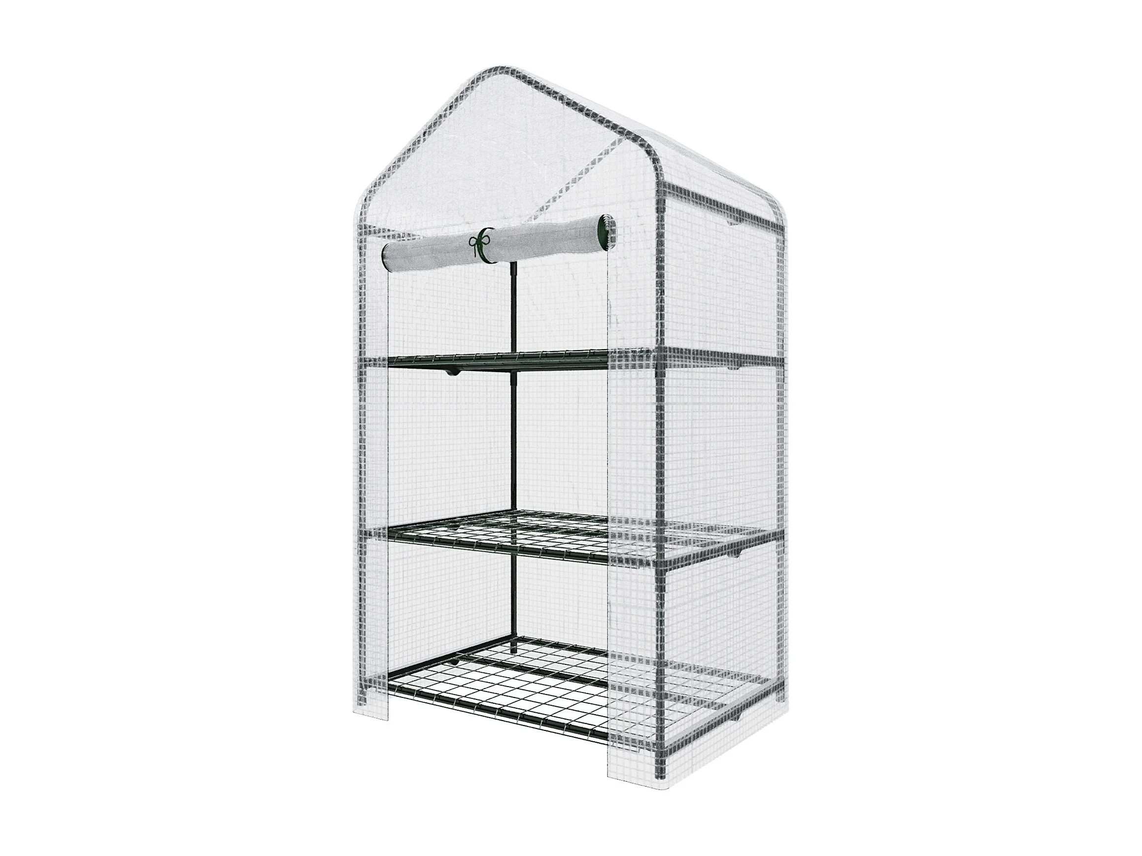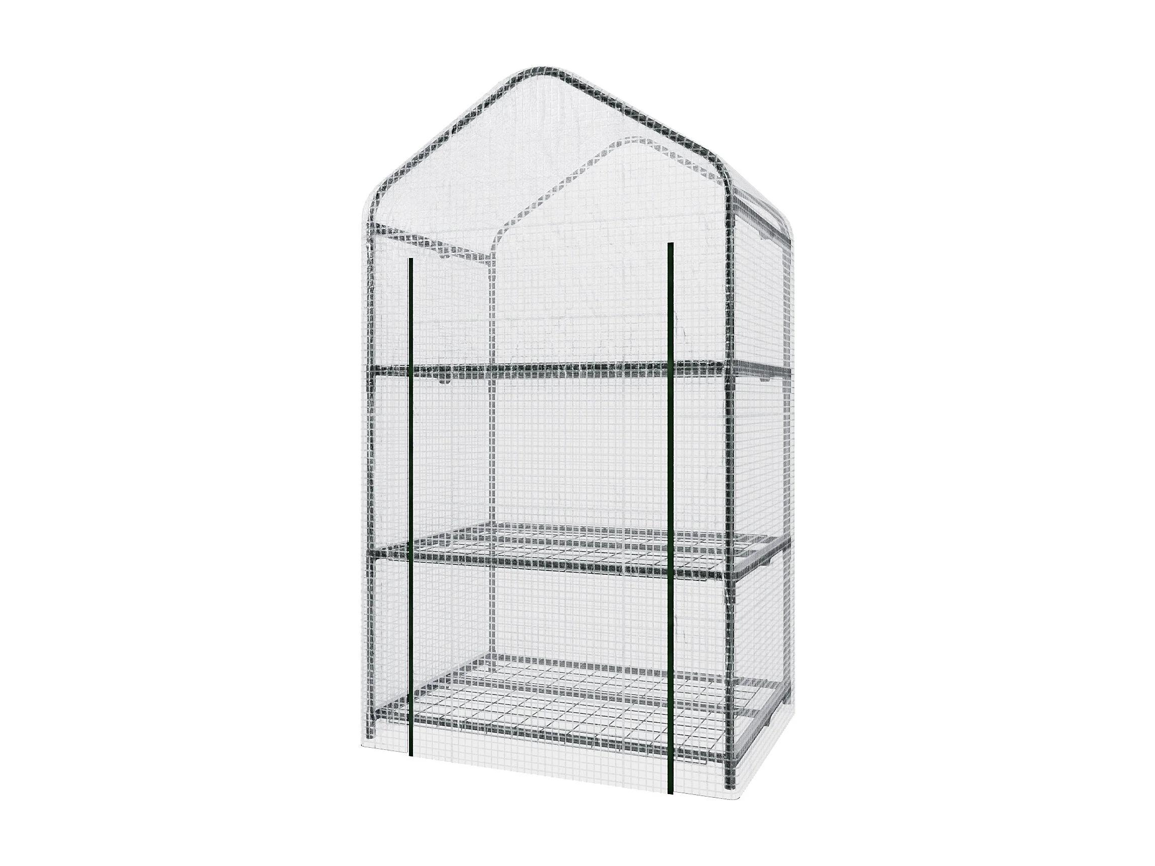 Serra A 3 Ripiani Da Giardino Per Orto Telaio In Acciaio Verniciato Telo In PVC Trasparente Porta Avvolgibile Apertura A Cerniera 69x49x125 Cm