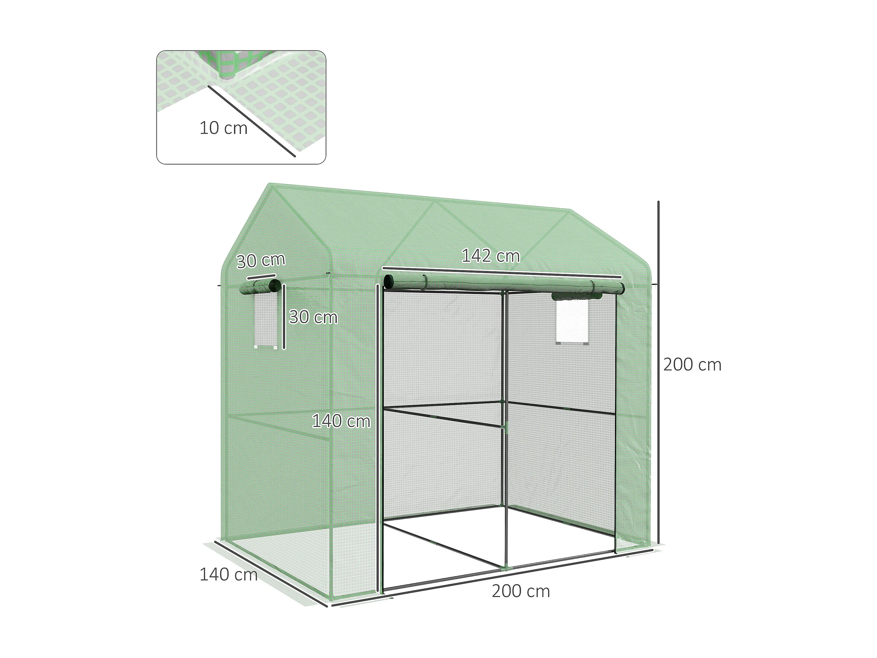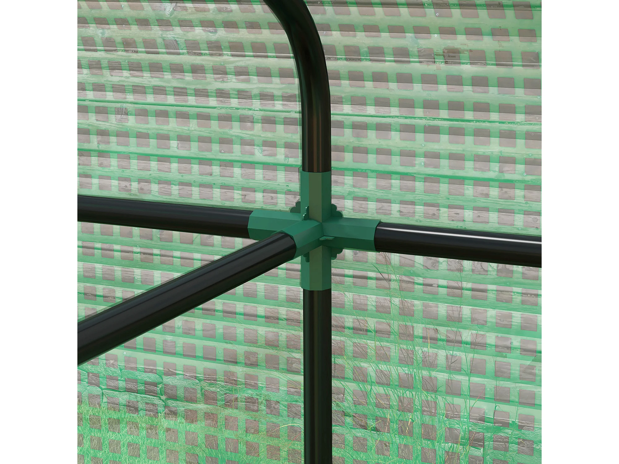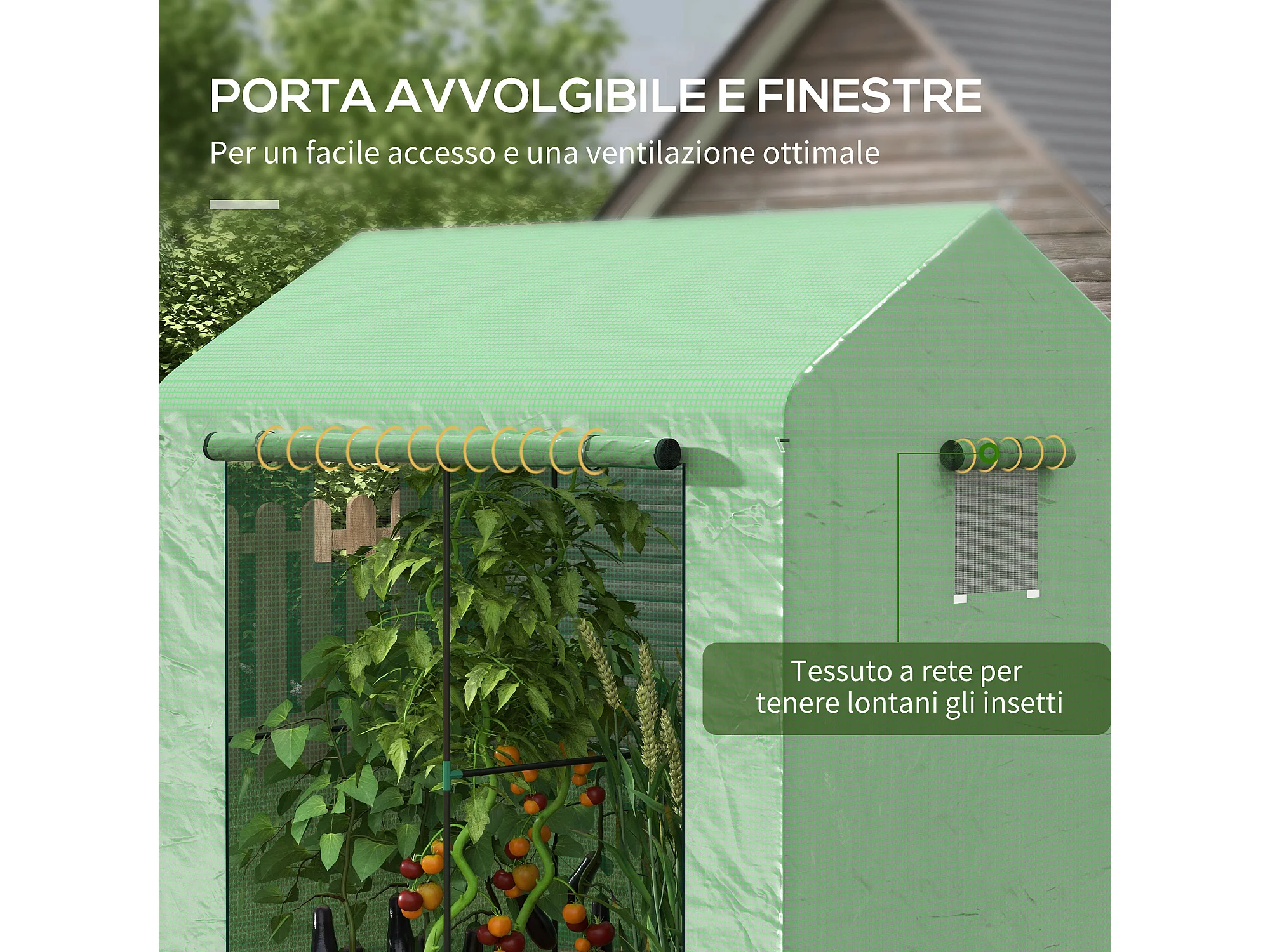 Serra a casetta a 2 sezioni con porta e finestre avvolgibili verde