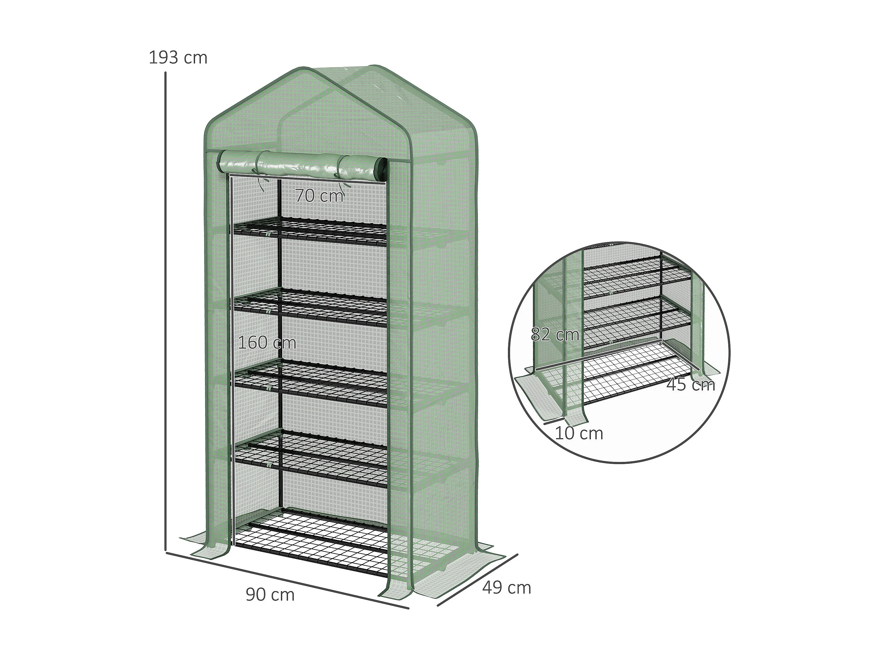 Mini serra per piante a 5 ripiani in acciaio pvc 69x49x193 cm