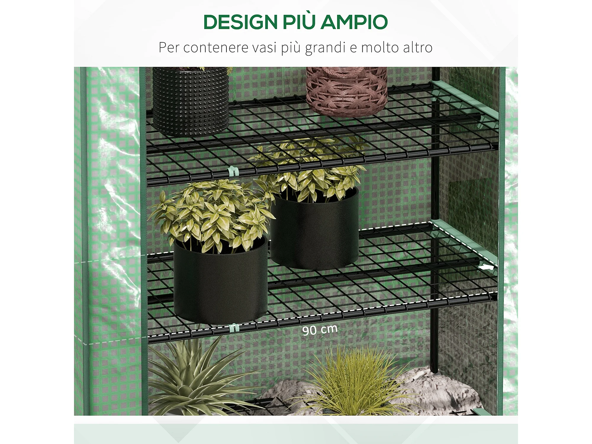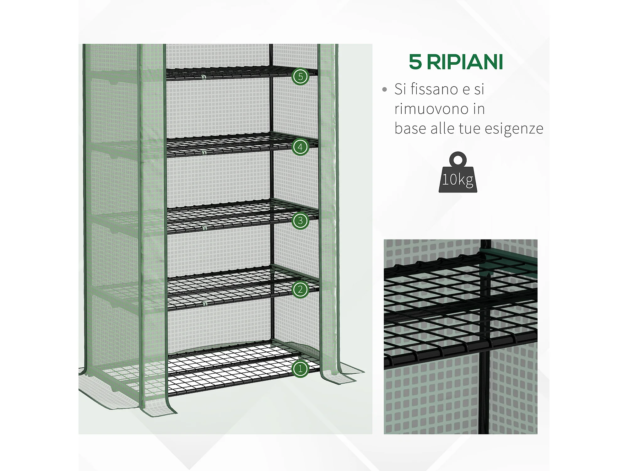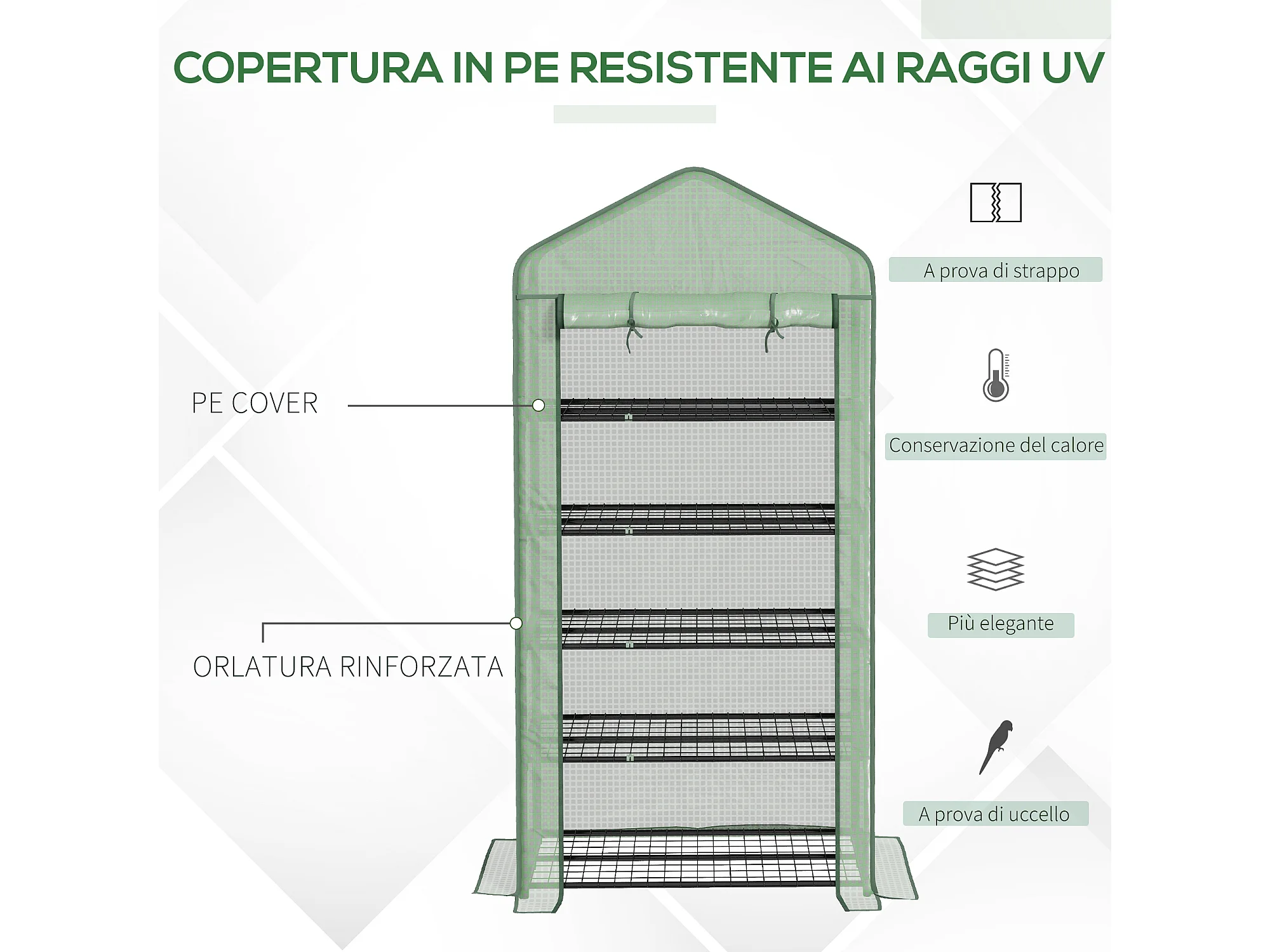 Serra da giardino ripiani in metallo copertura pe 80x49x160cm