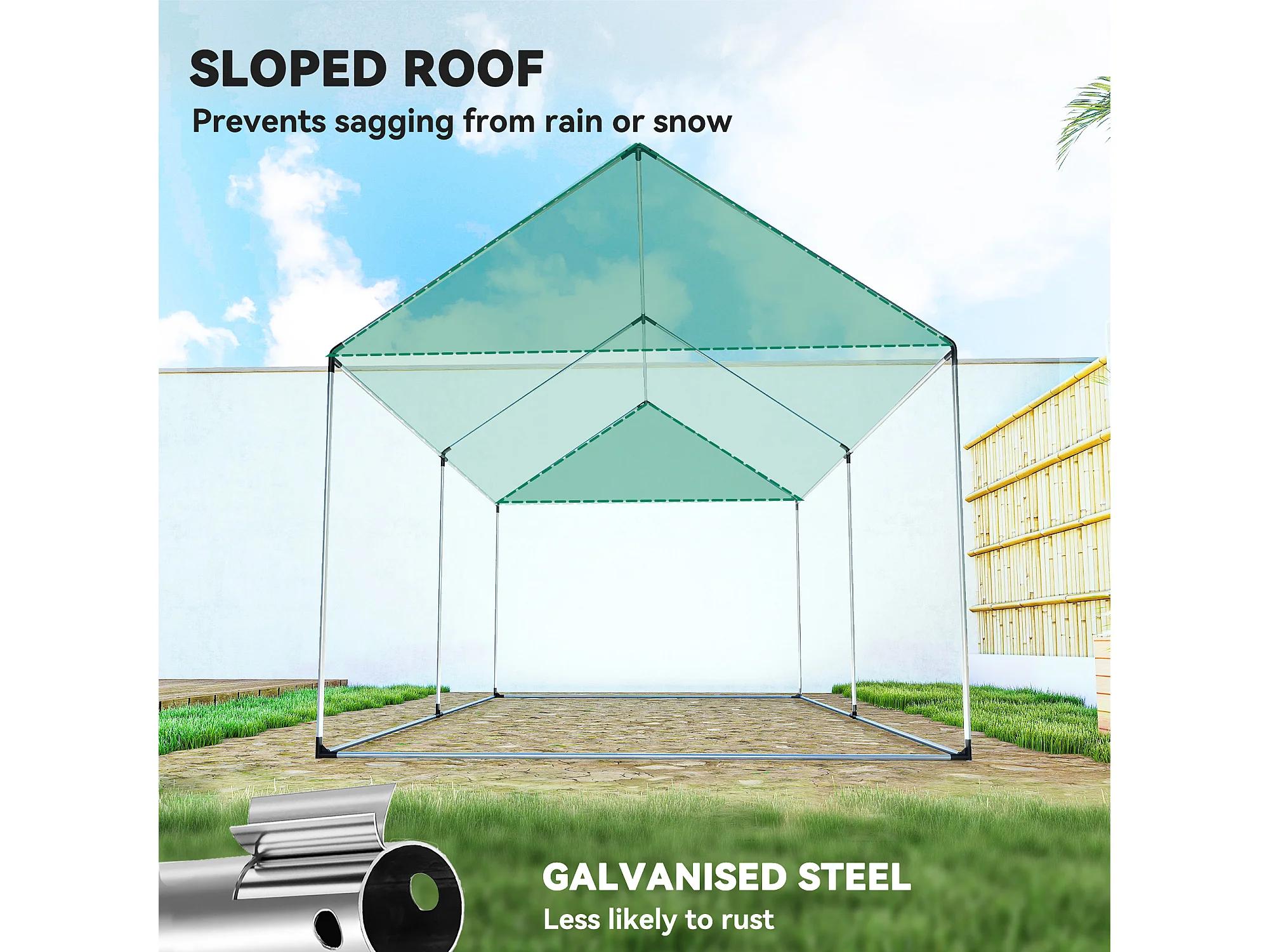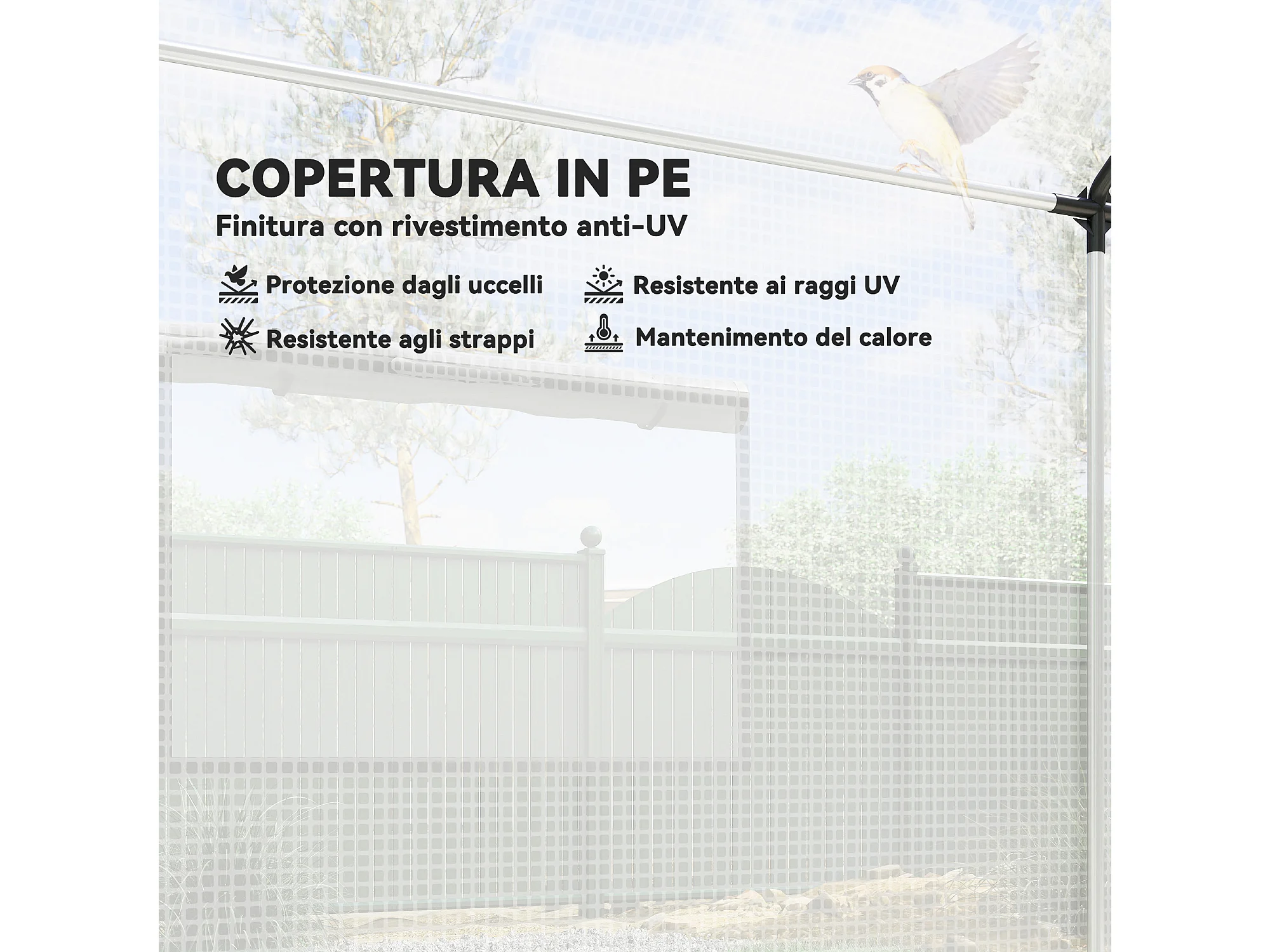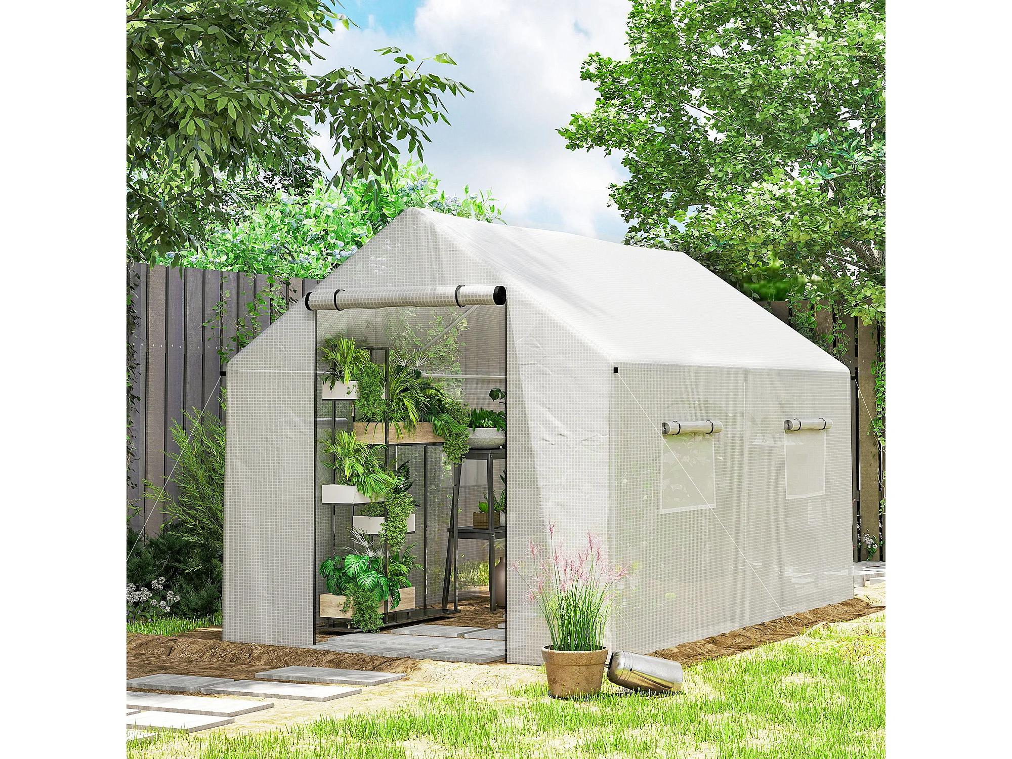 Serra a tunnel 2x3x2 m con tetto a punta in acciaio e pe bianco