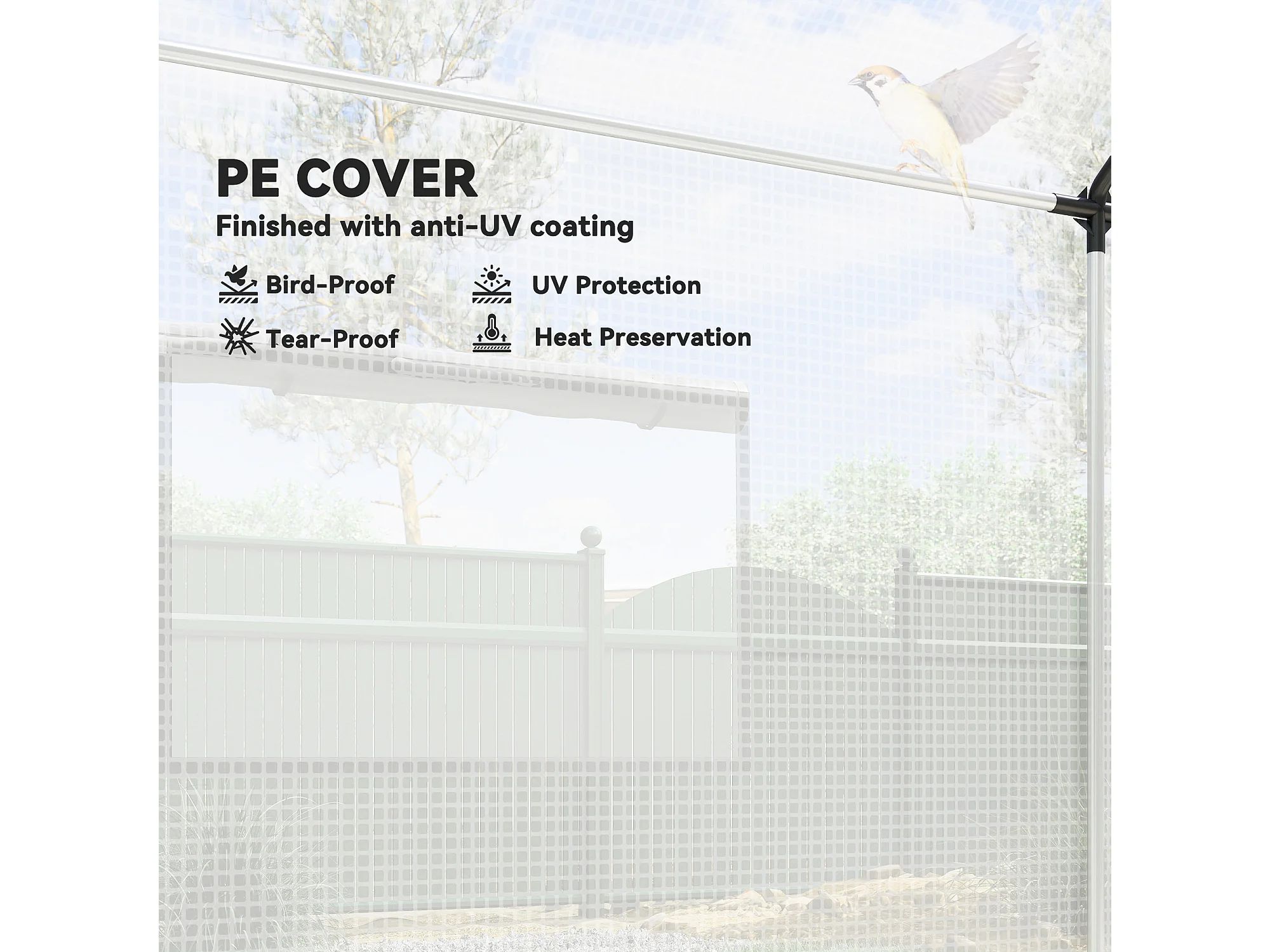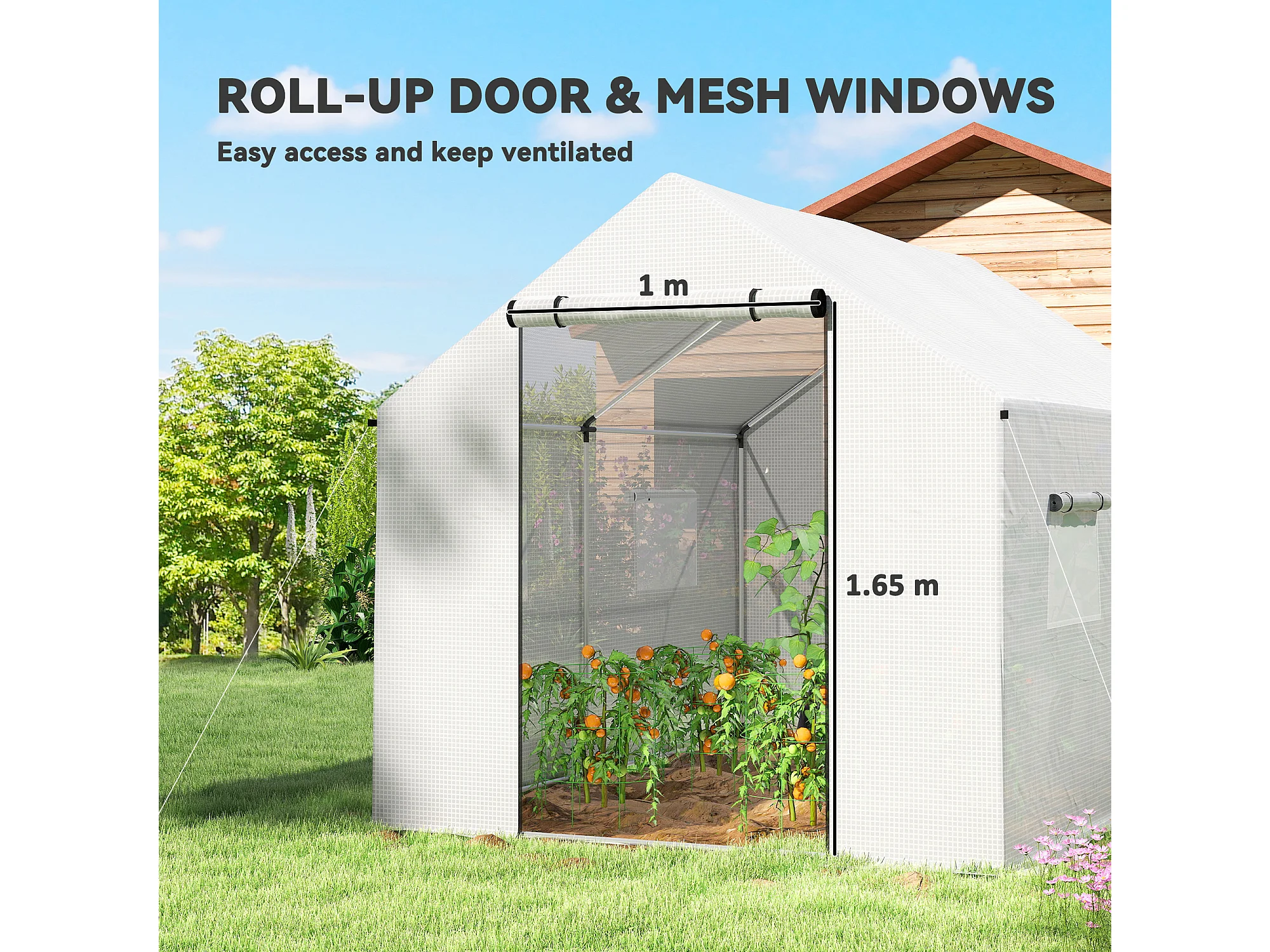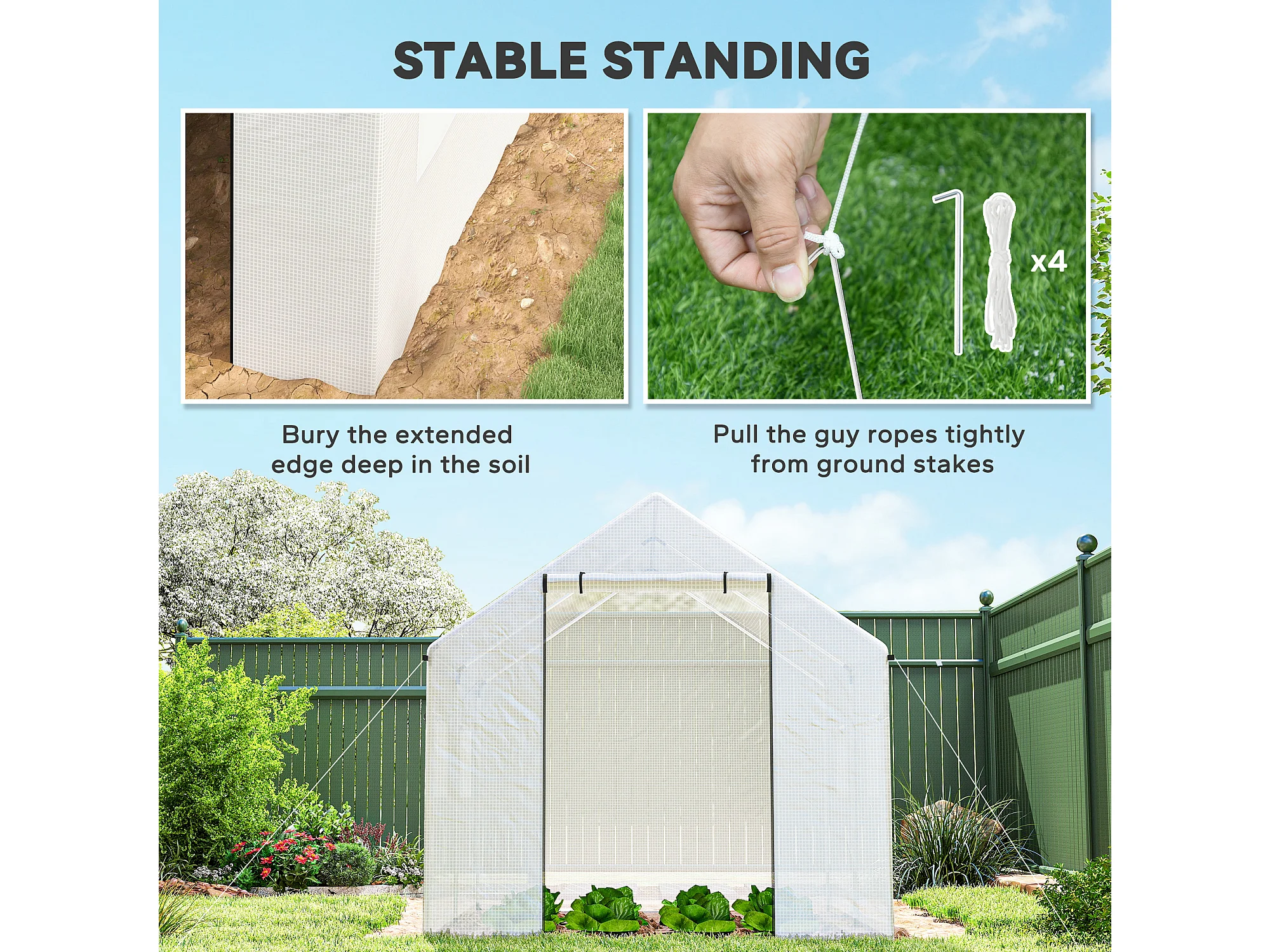Serra a tunnel 2x3x2 m con tetto a punta in acciaio e pe bianco