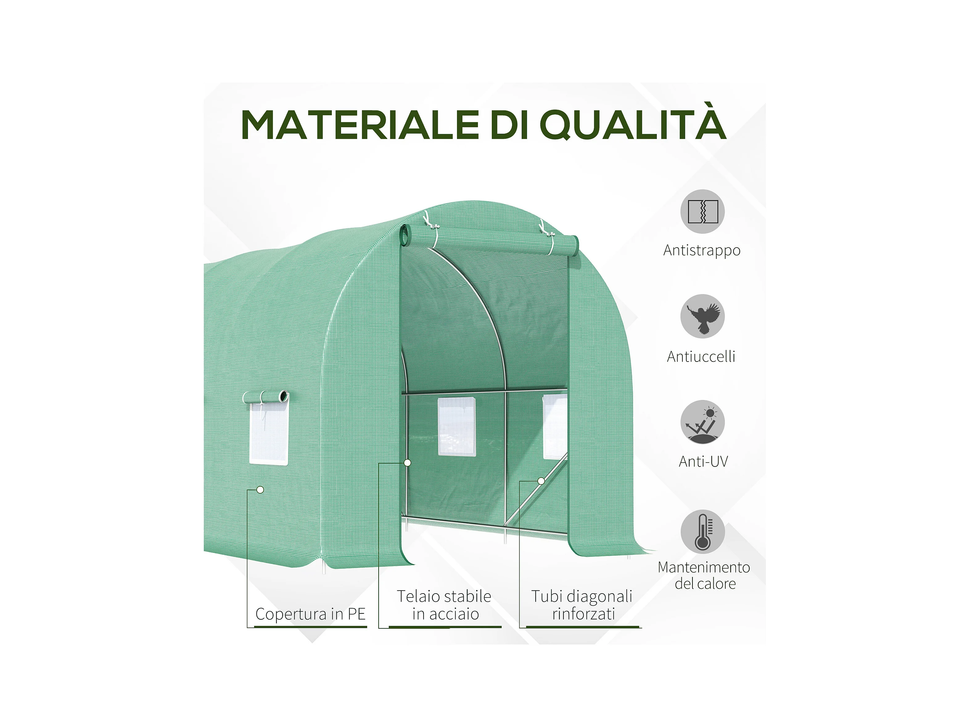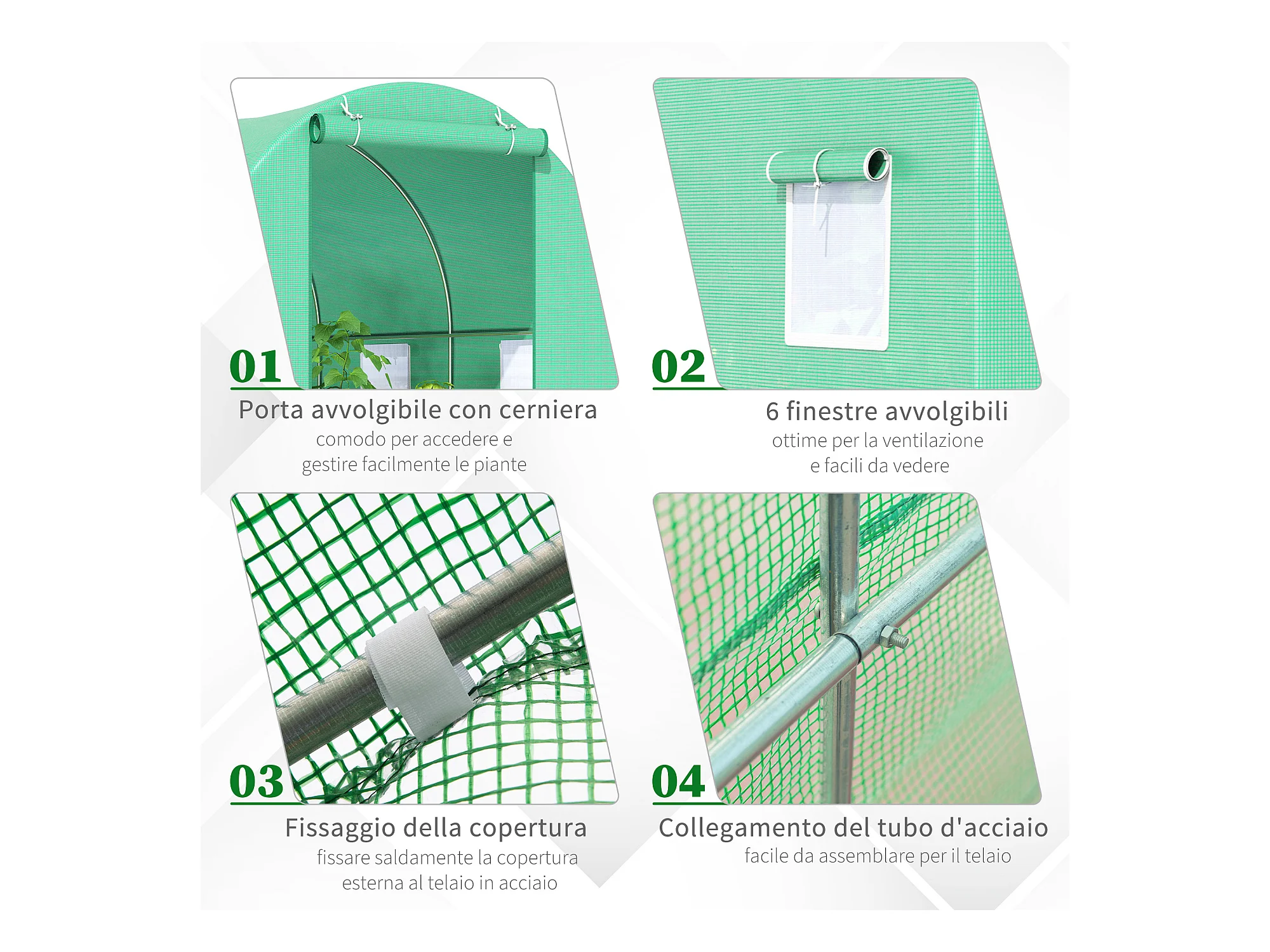 Serra a tunnel con 8 finestre laterali e ingresso avvolgibile verde
