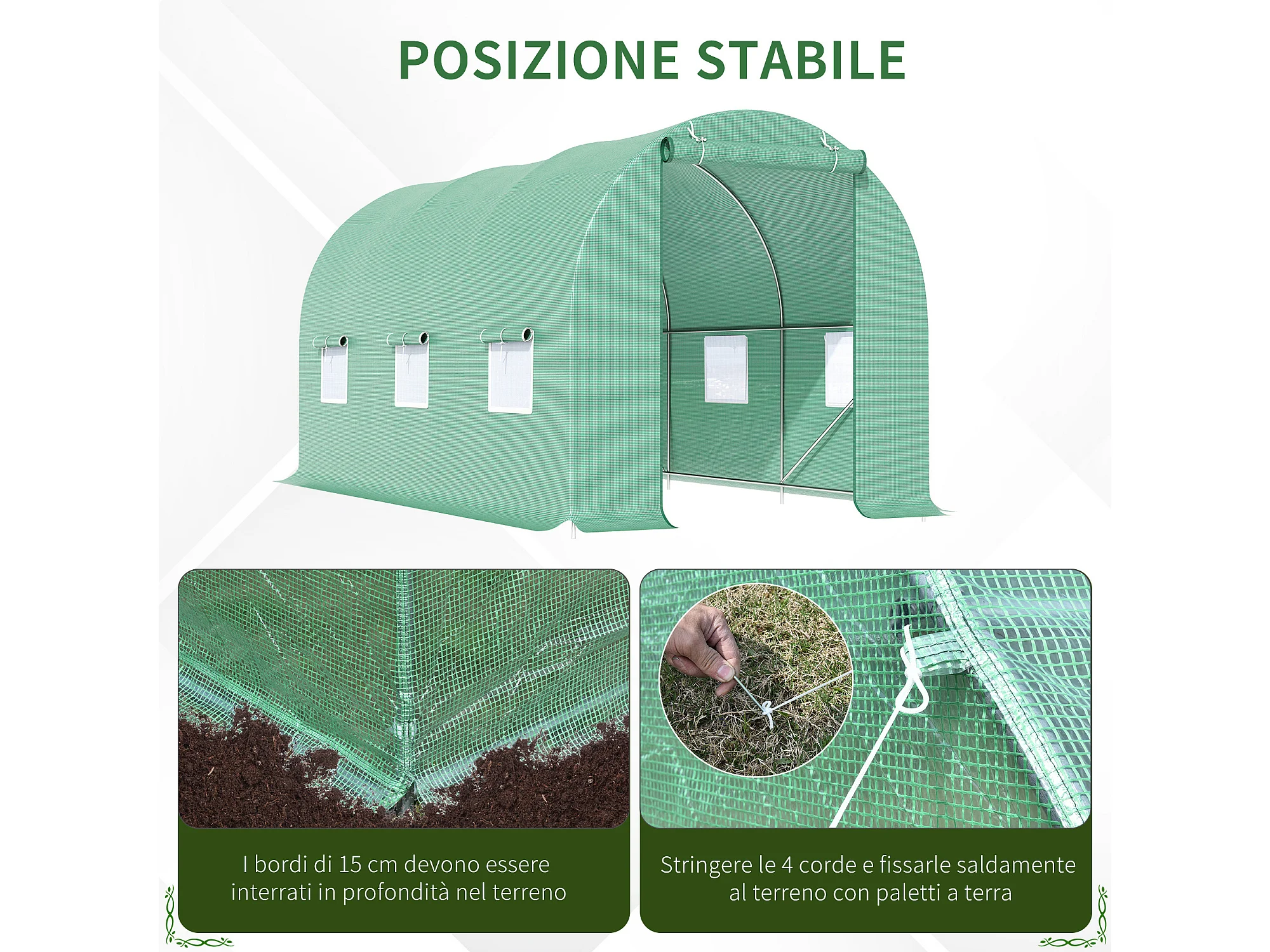 Serra a tunnel 4.5x2x2 m con picchetti e funi incluse verde
