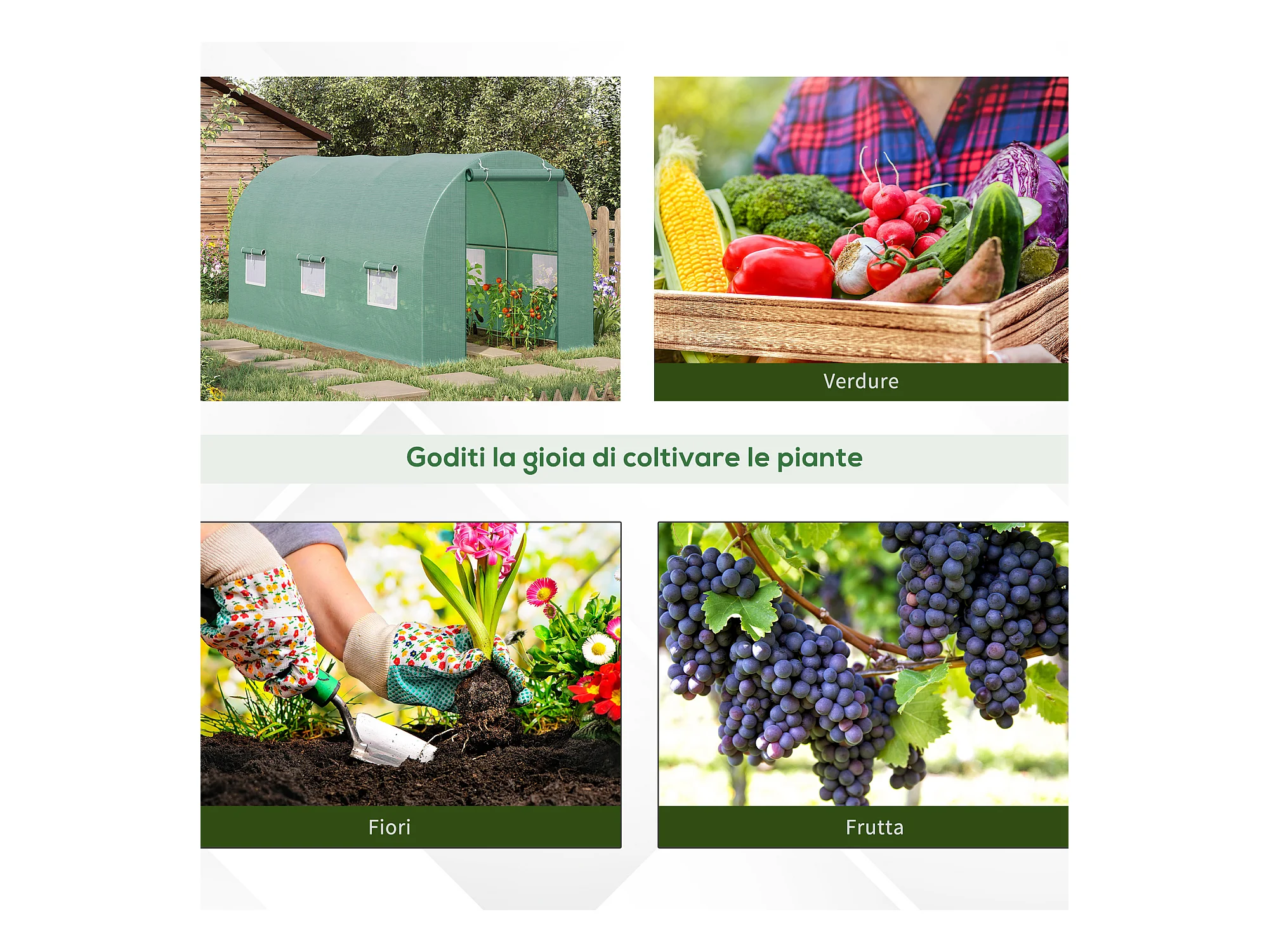 Serra per orto a tunnel 3.5x2x2m 6 finestre e porta con zip
