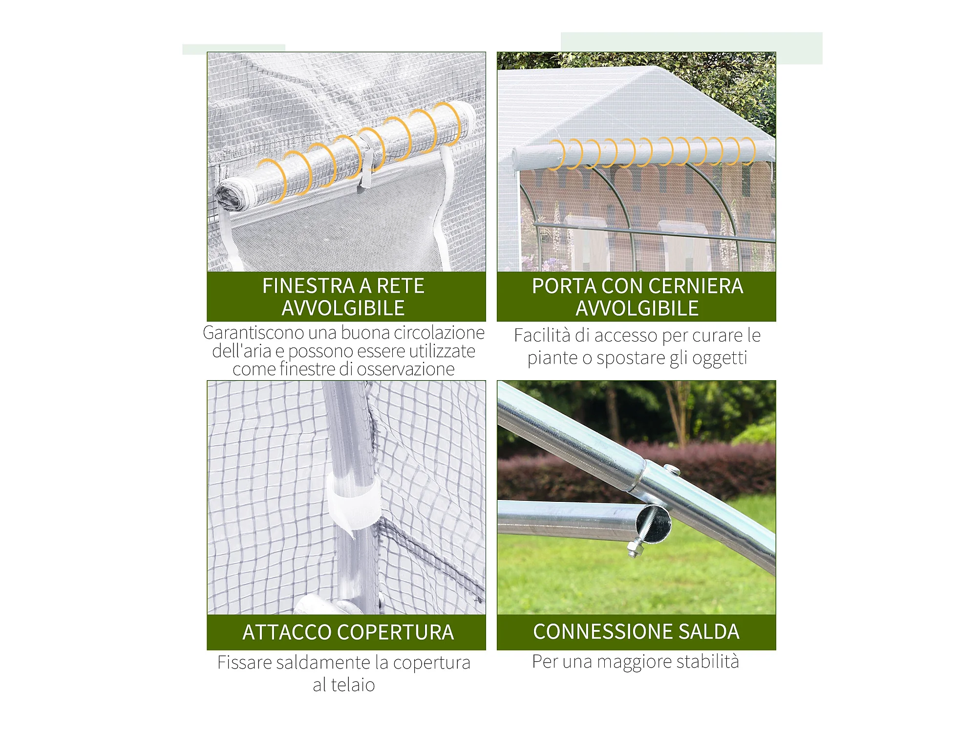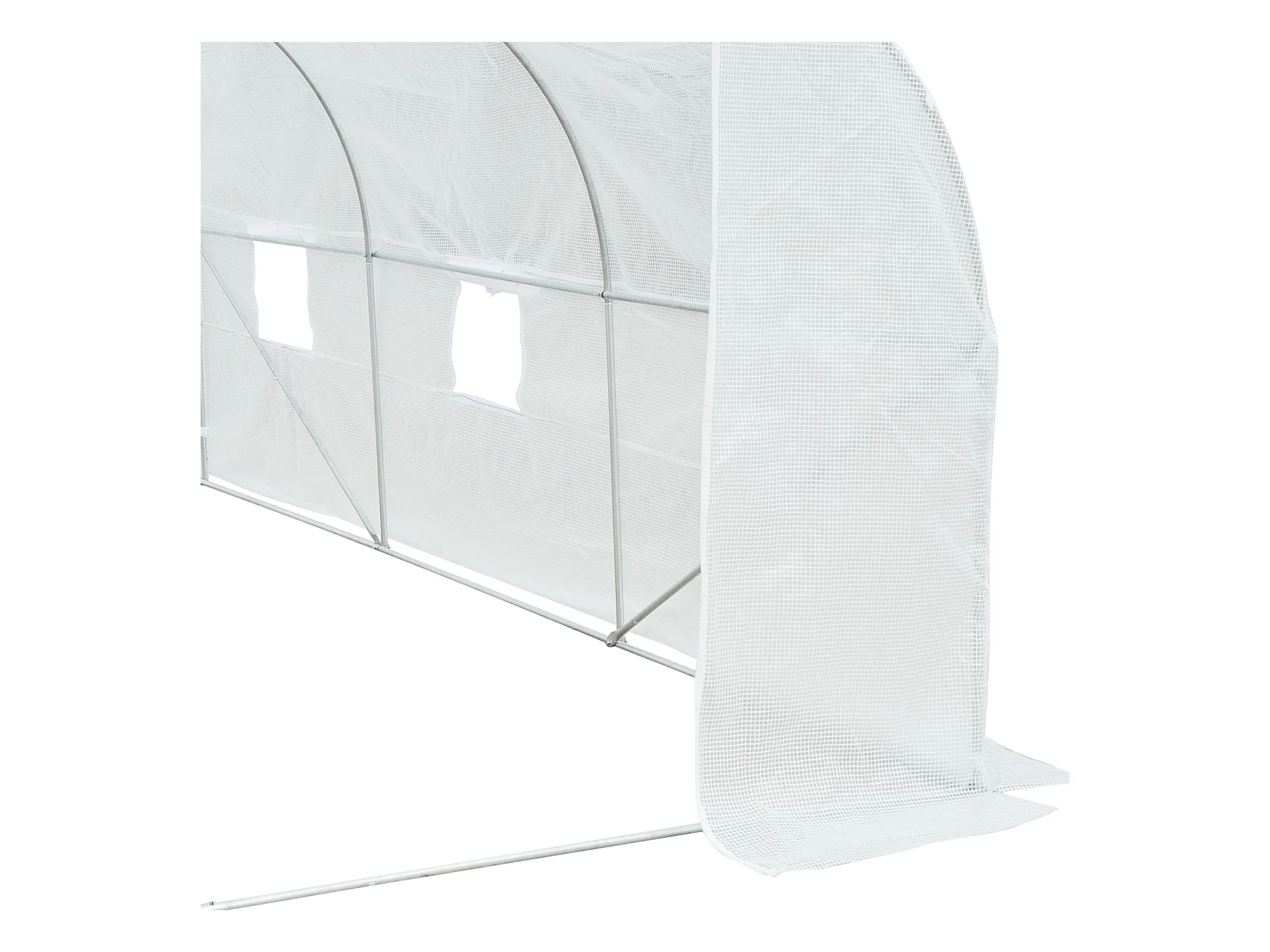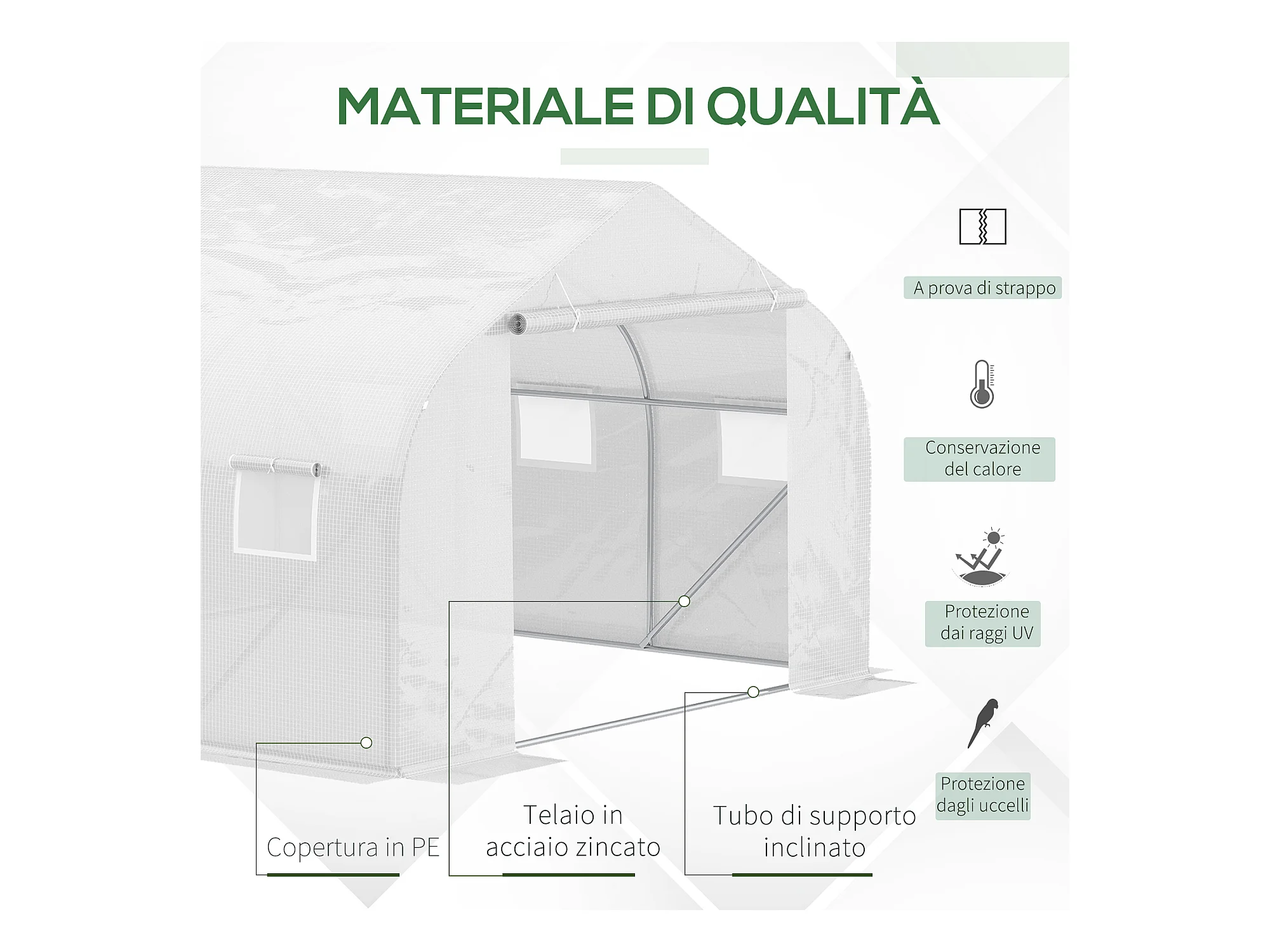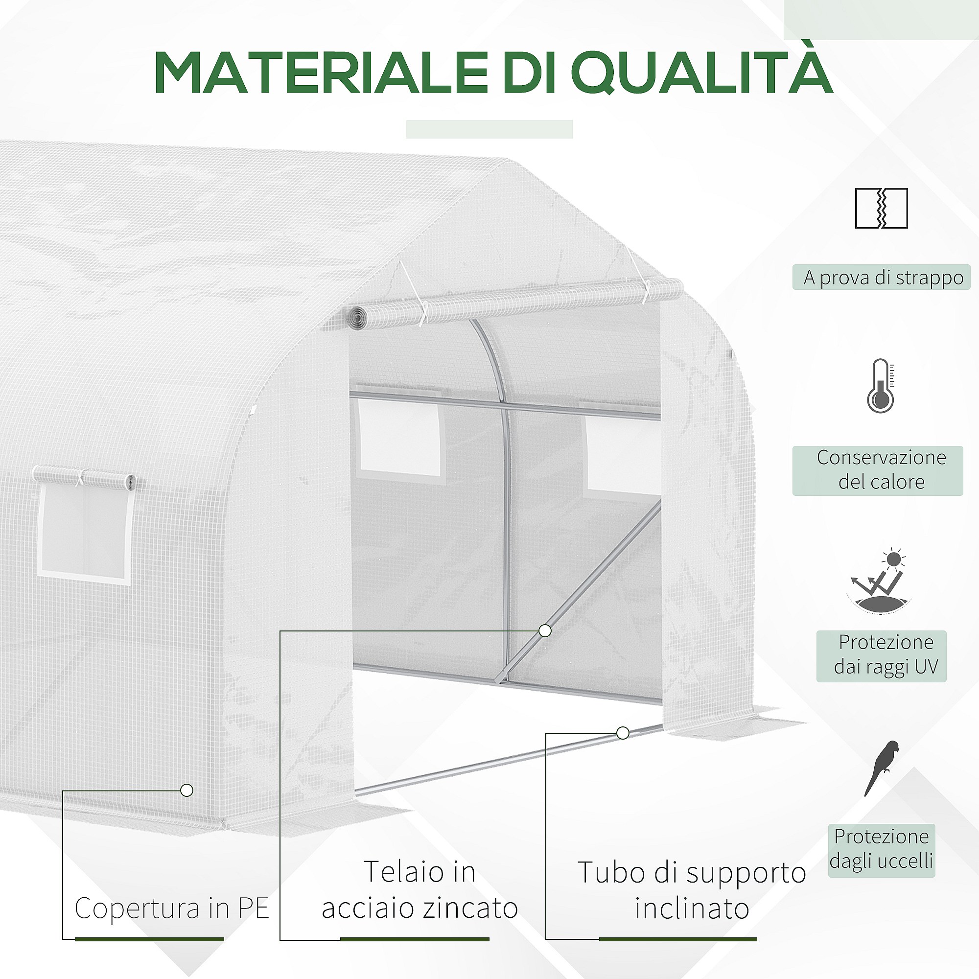 Serra a tunnel con 6 finestre a rete in metallo e pe 3.5x3 m bianca