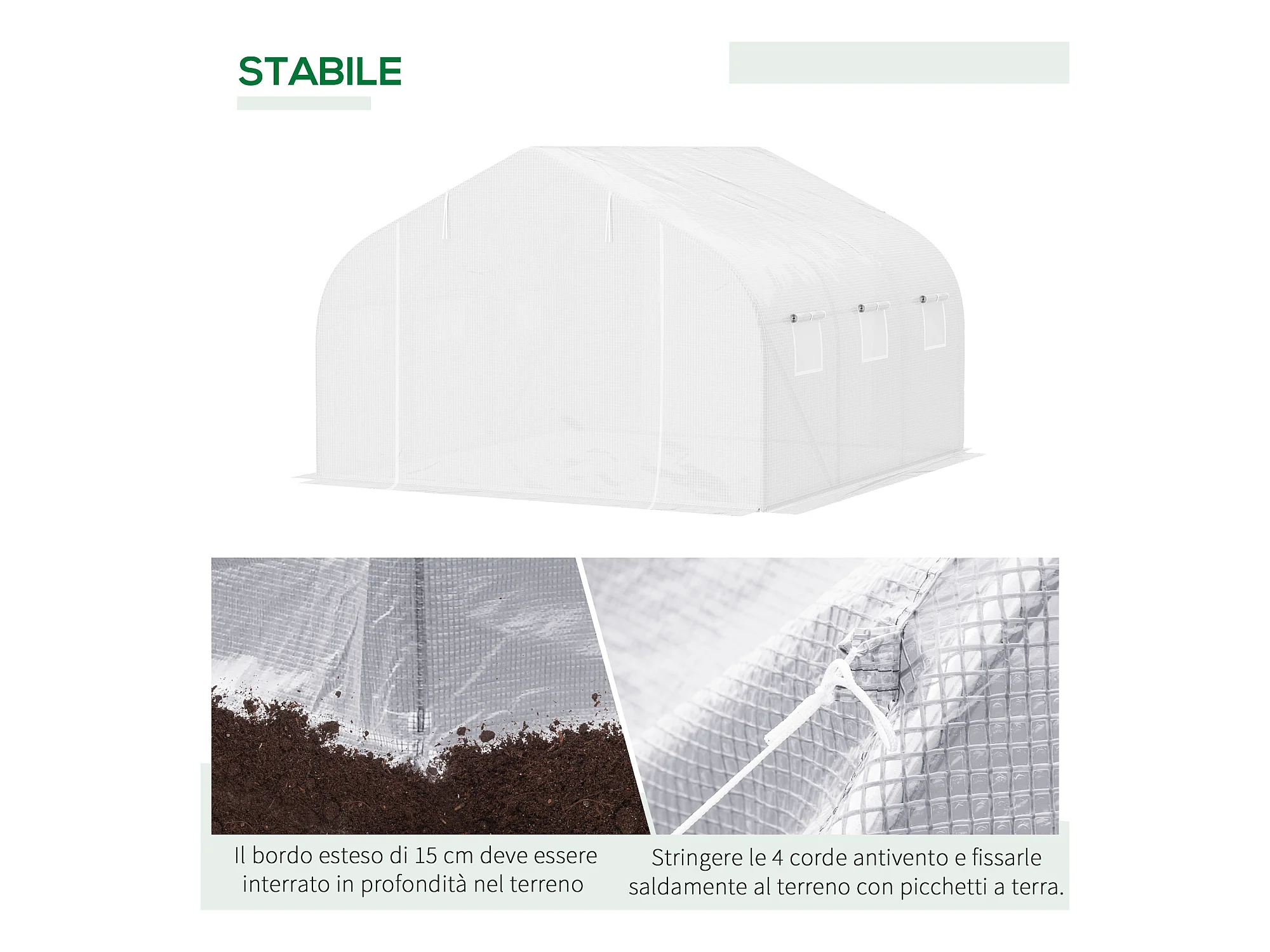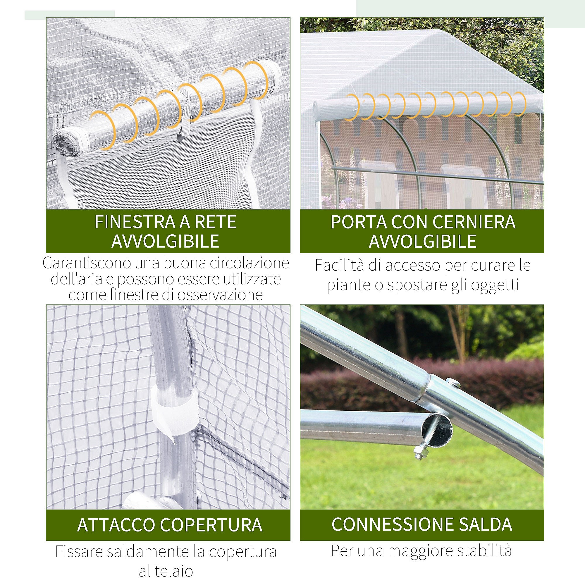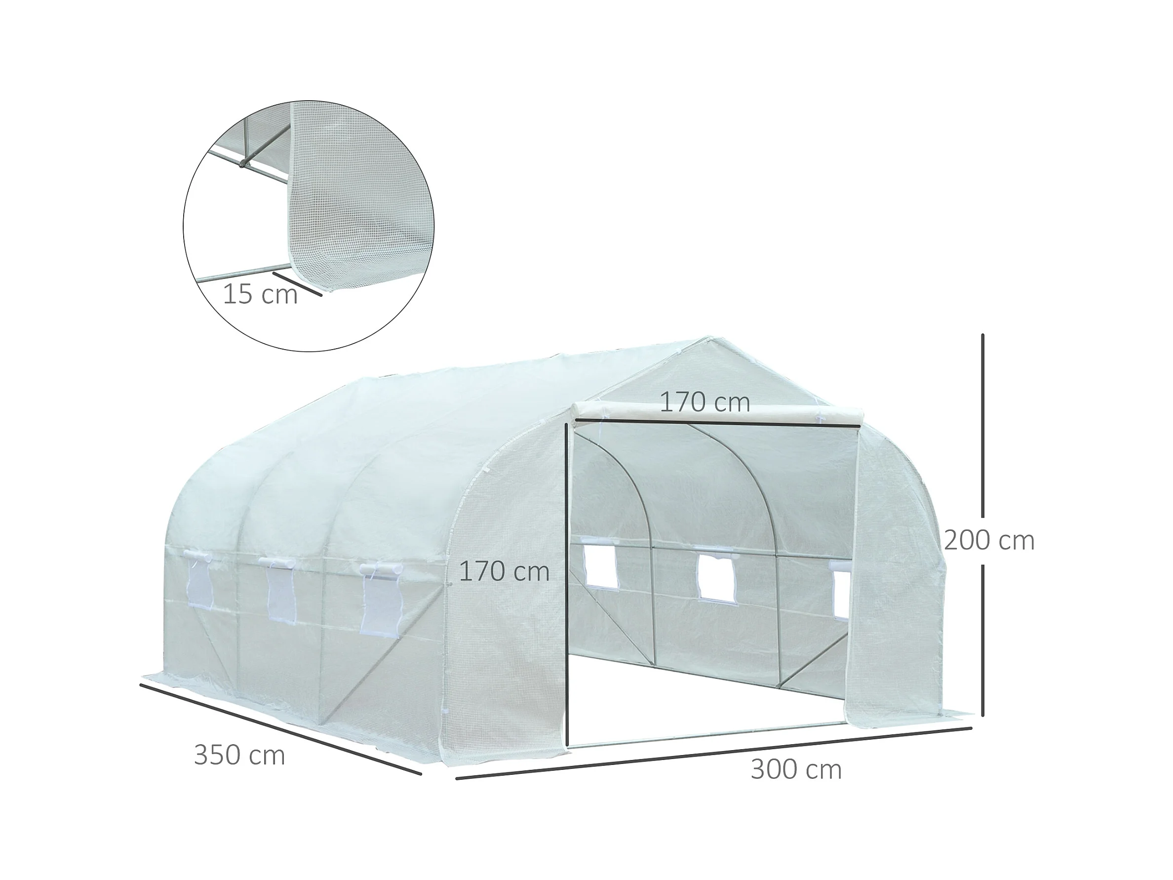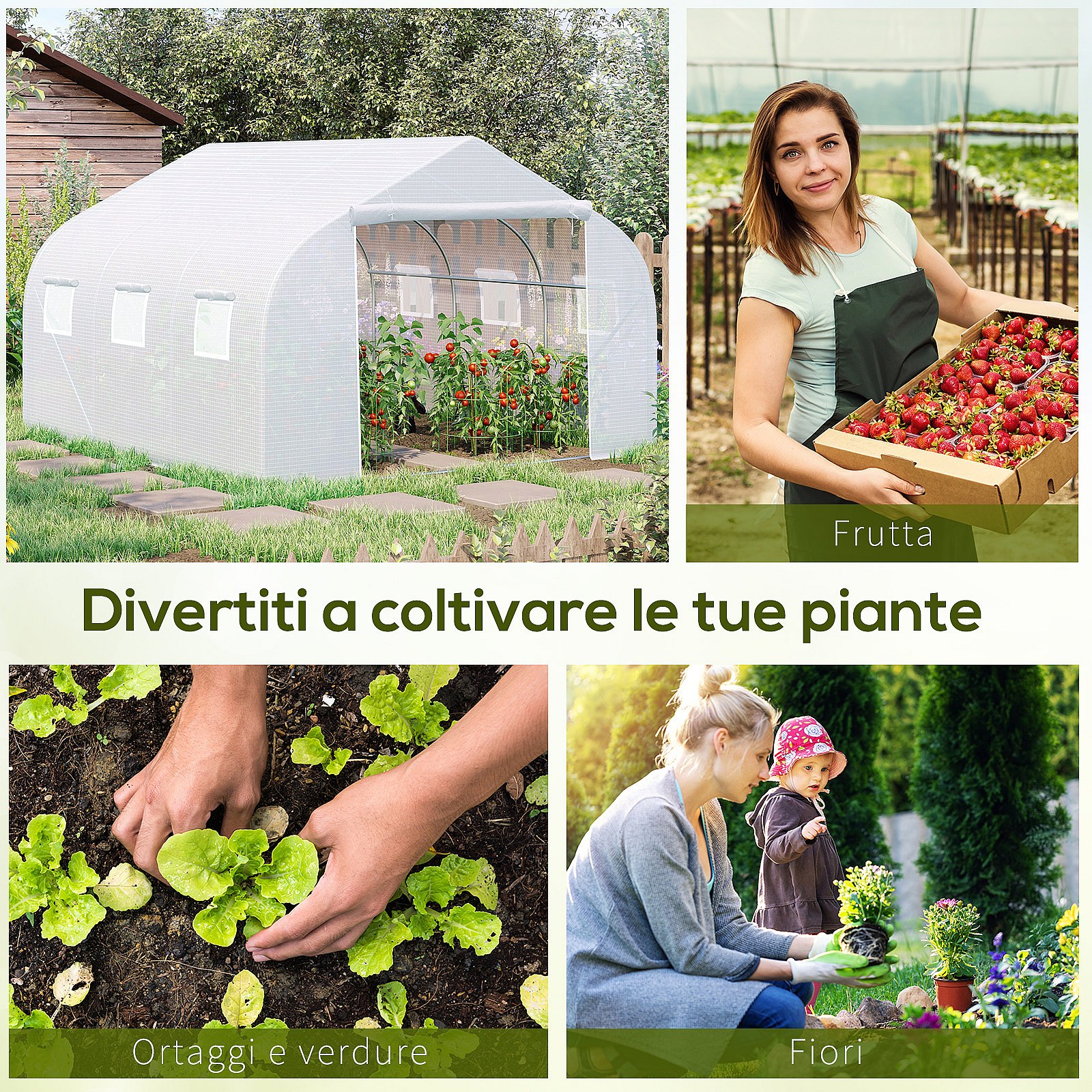 Serra a tunnel con 6 finestre a rete in metallo e pe 3.5x3 m bianca