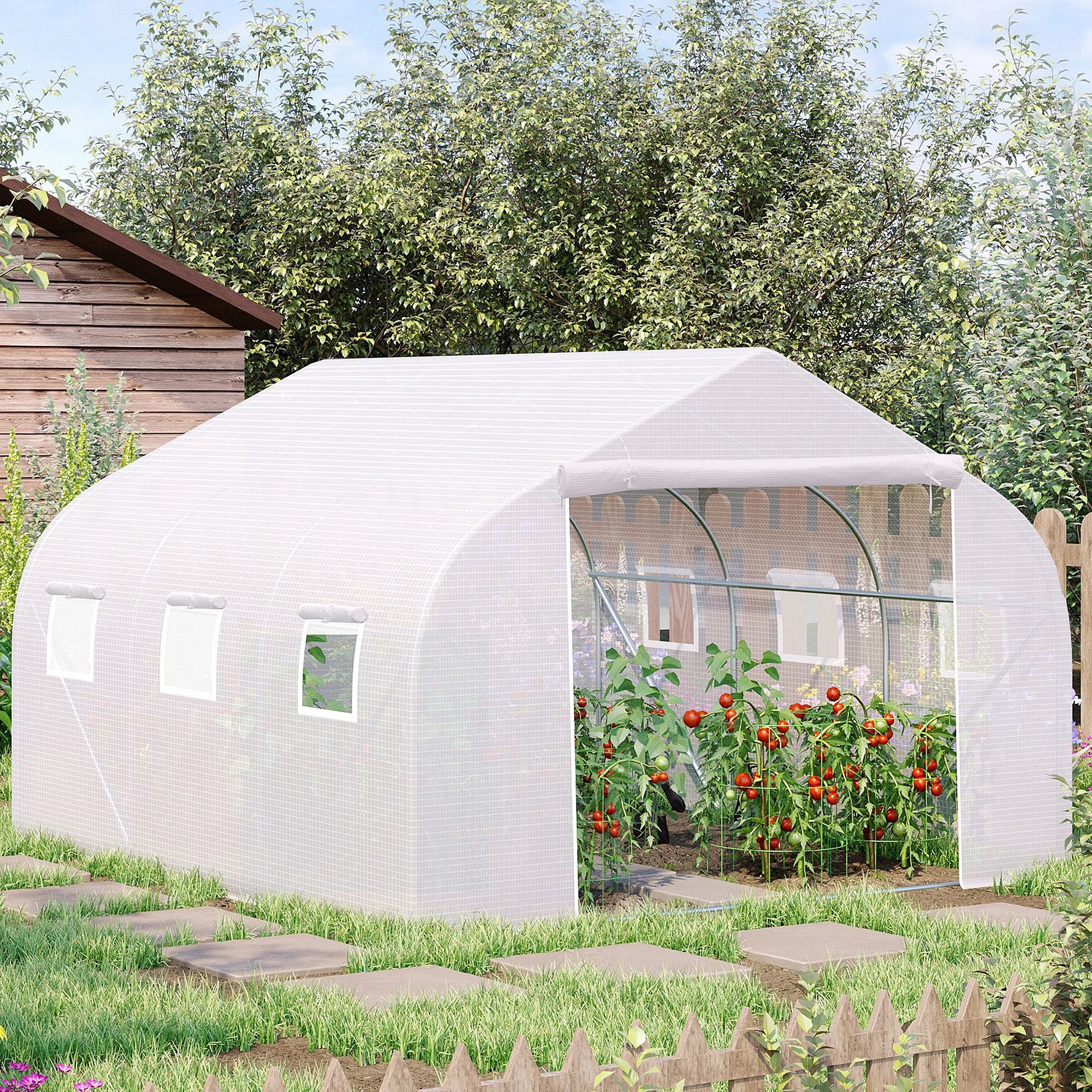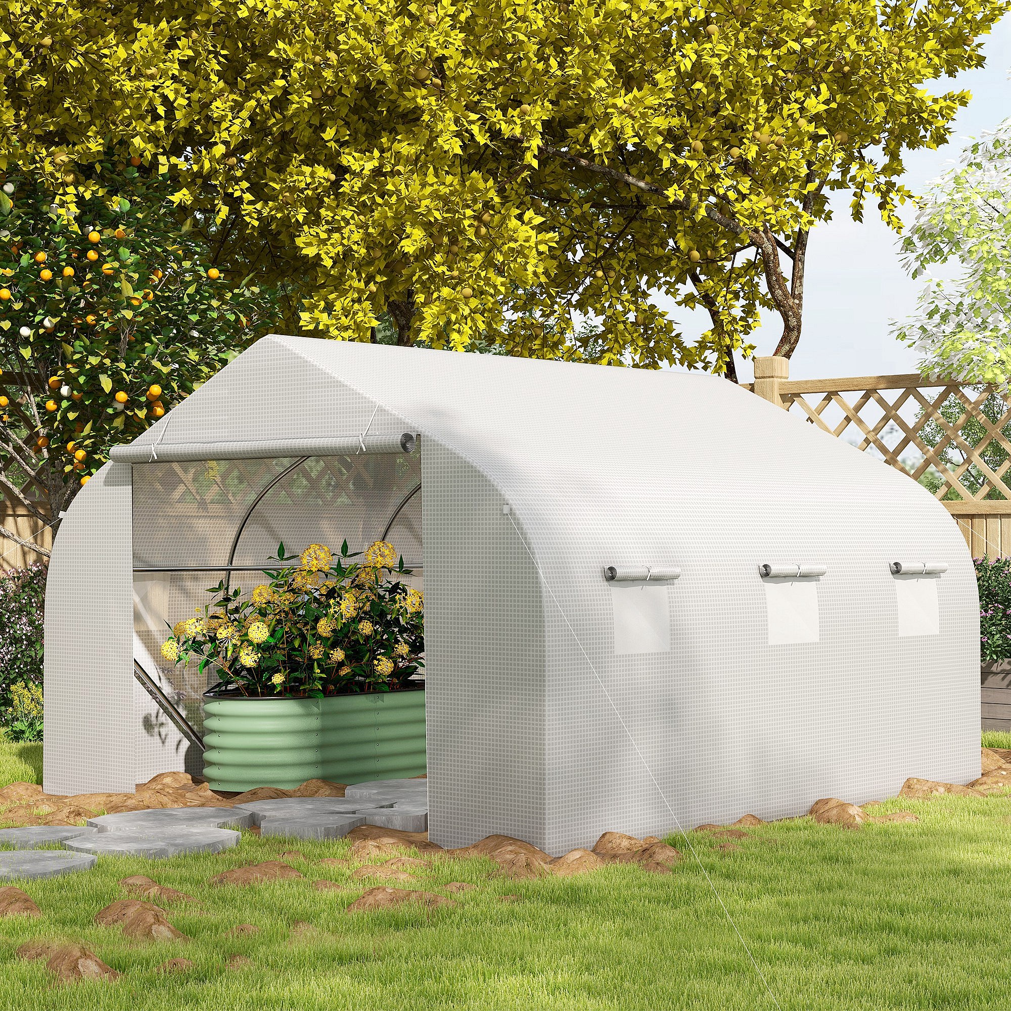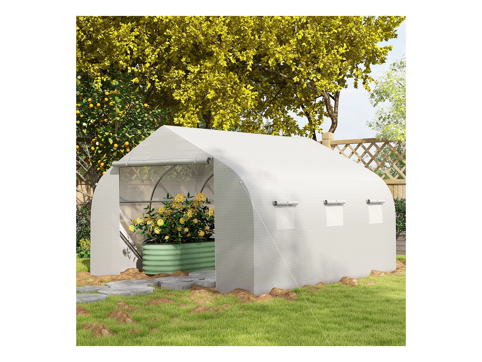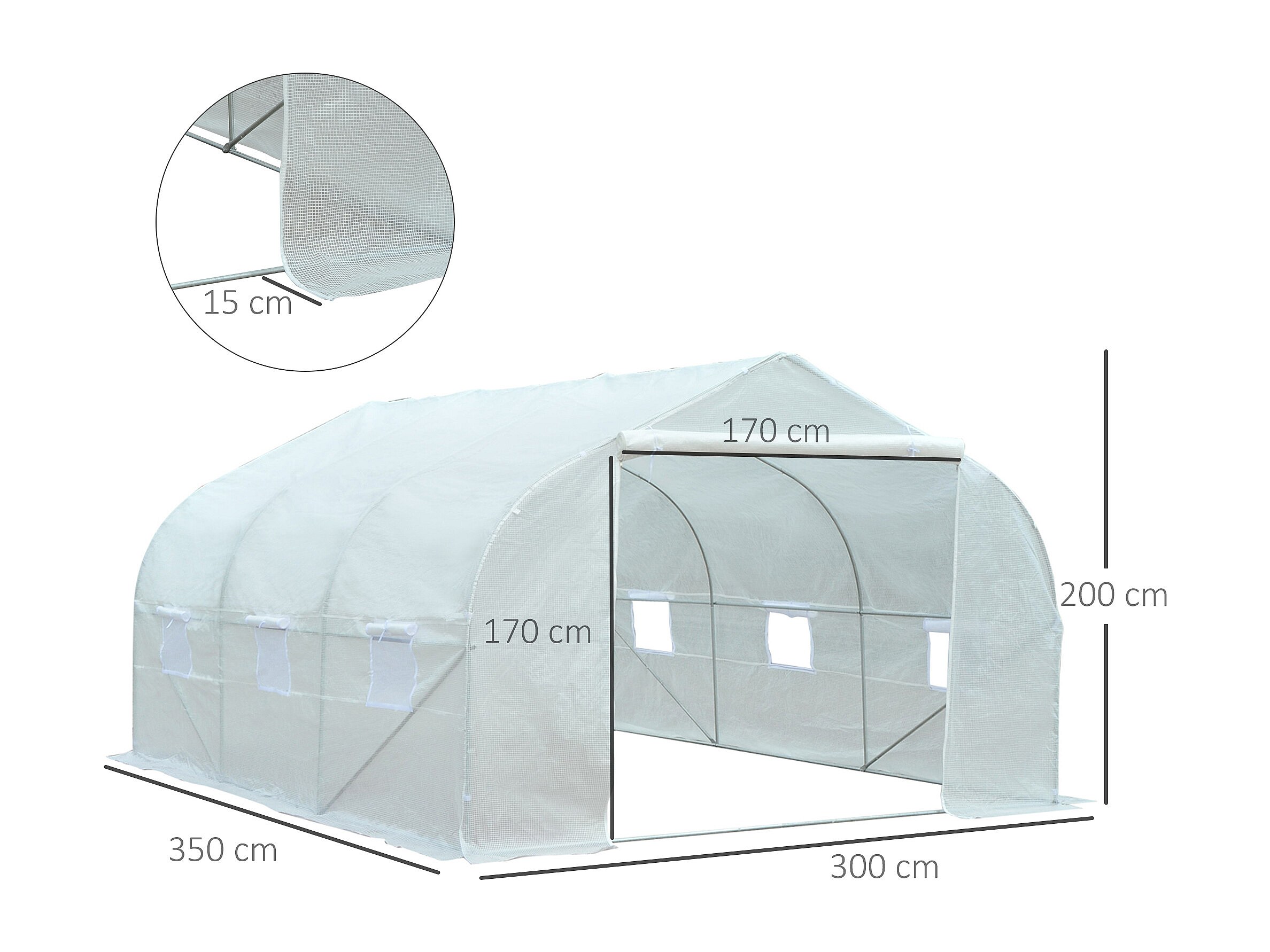 Serra a tunnel con 6 finestre a rete in metallo e pe 3.5x3 m bianca