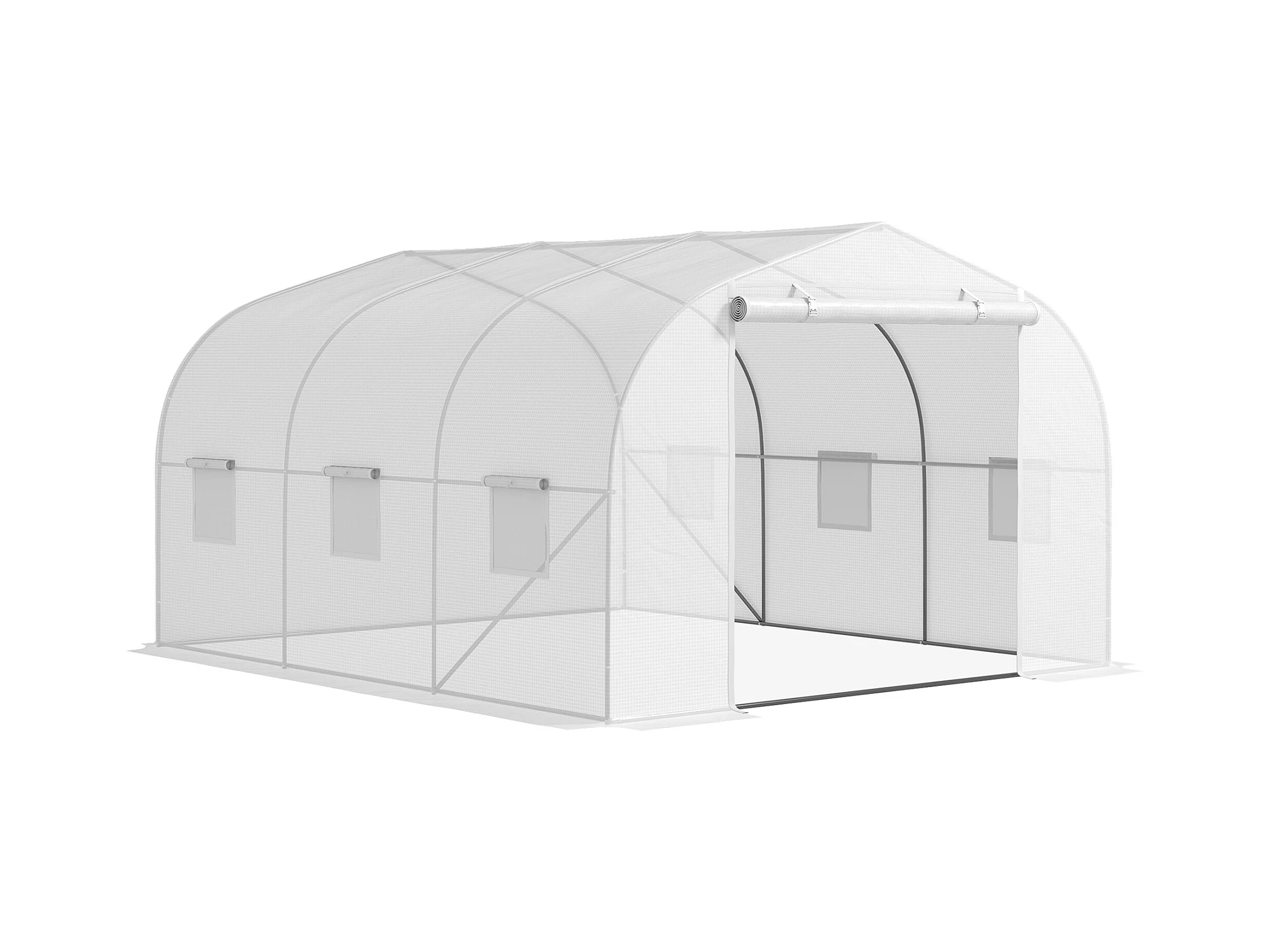 Serra a tunnel con 6 finestrelle e porta a rullo in acciaio pe bianco