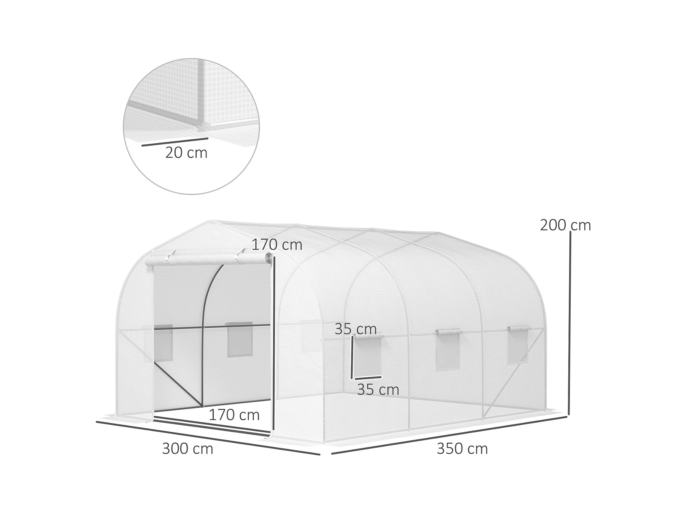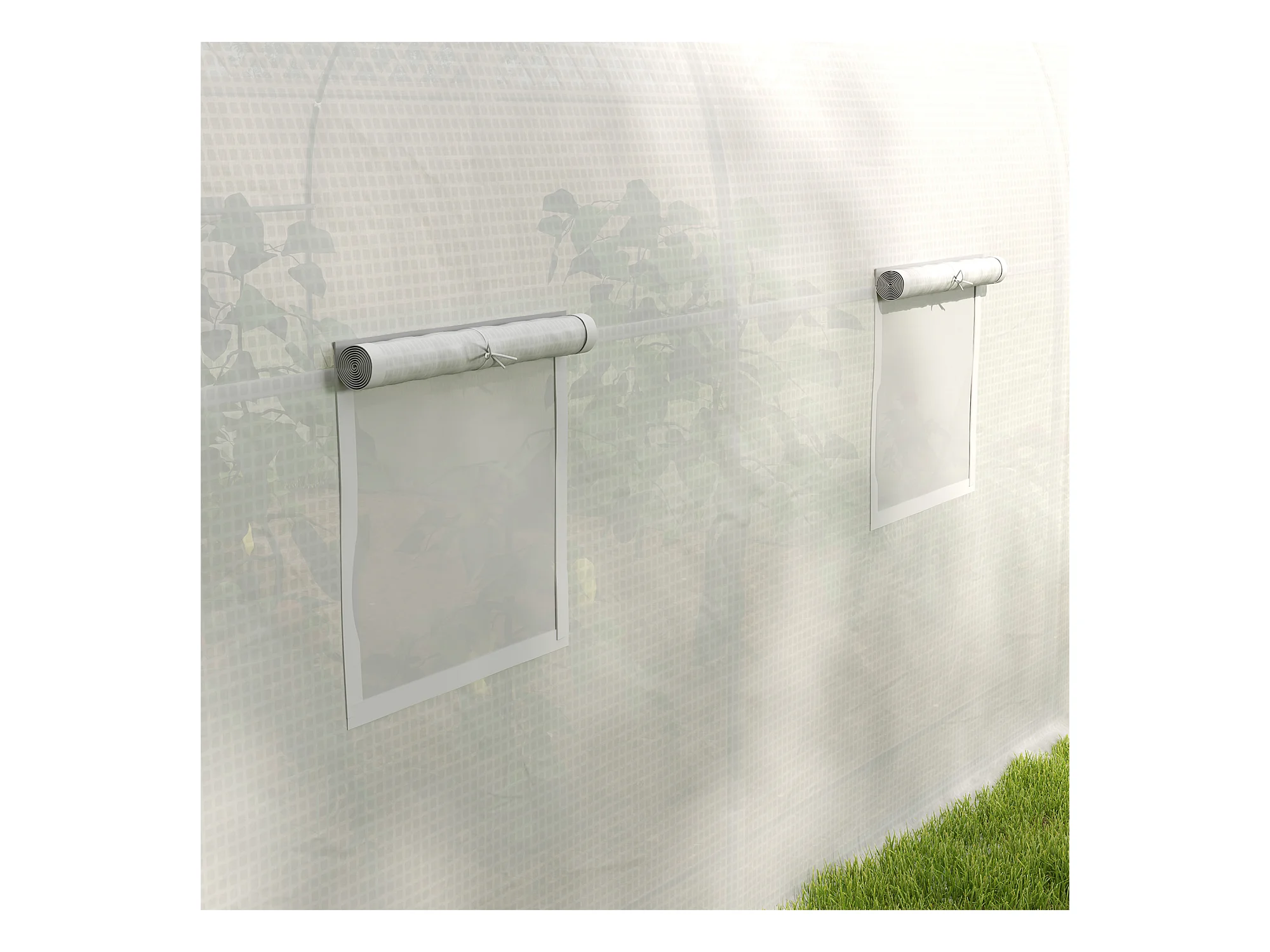 Serra a tunnel in pe con 6 finestre e tubi in ferro bianca
