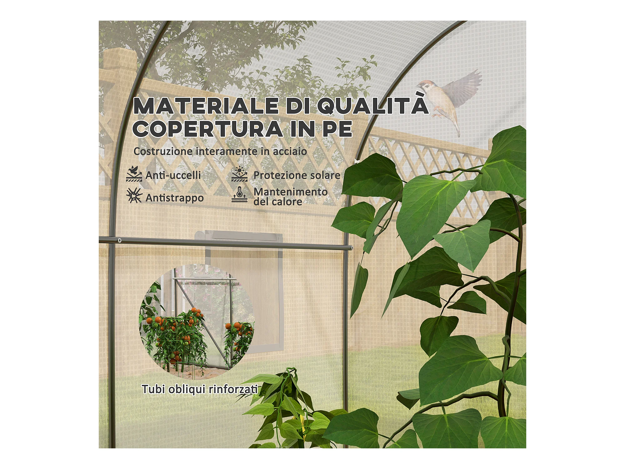 Serra a tunnel 6x3x2m per orto e giardino in metallo e pe