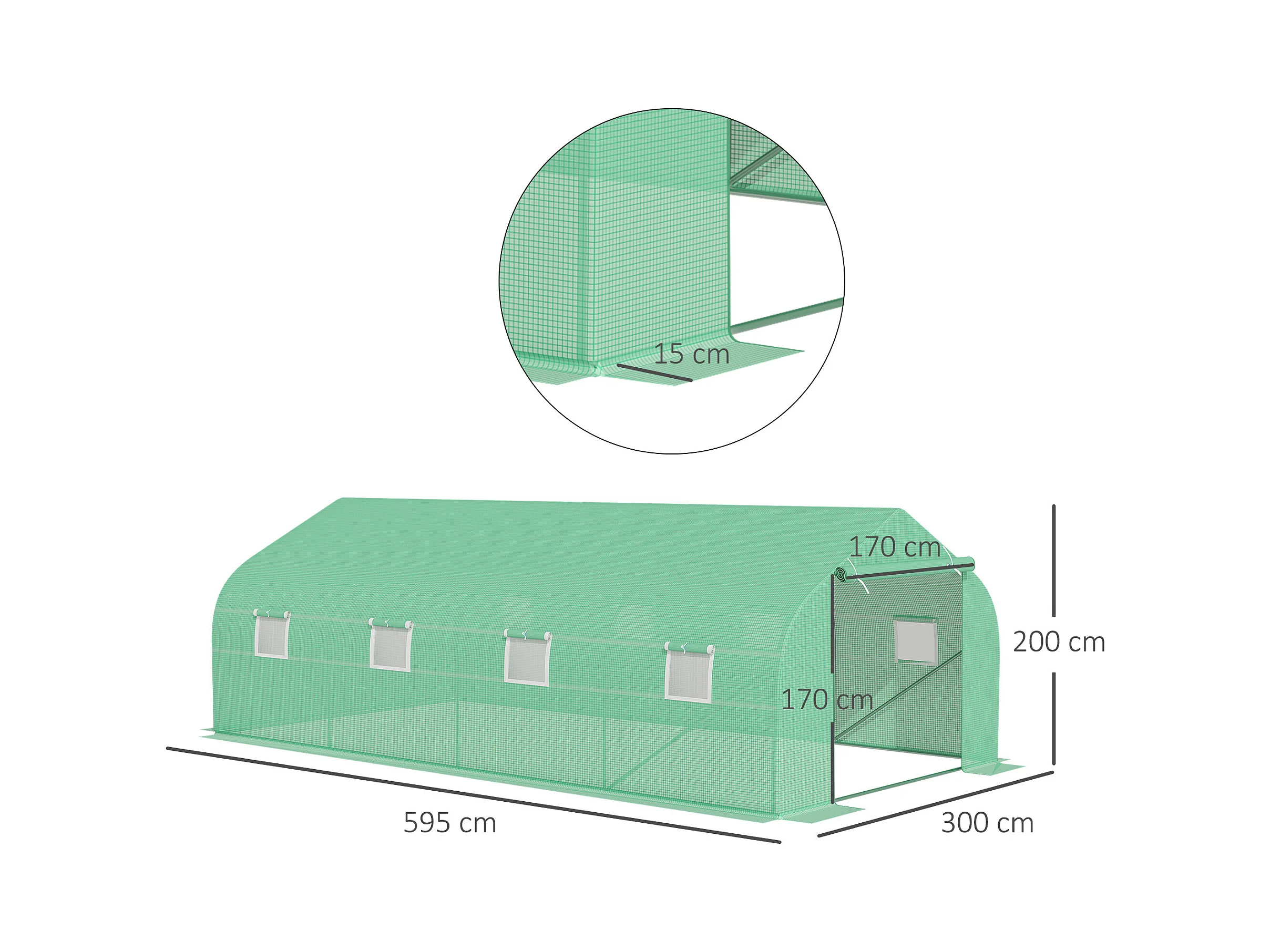 Serra a tunnel in acciaio e pe con 8 finestre 5.95x3x2 m verde