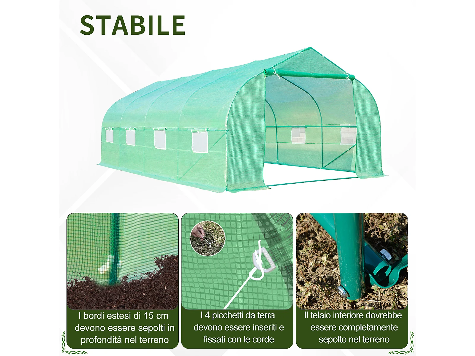 Serra a tunnel 4.5x2x2 m con picchetti e funi incluse verde