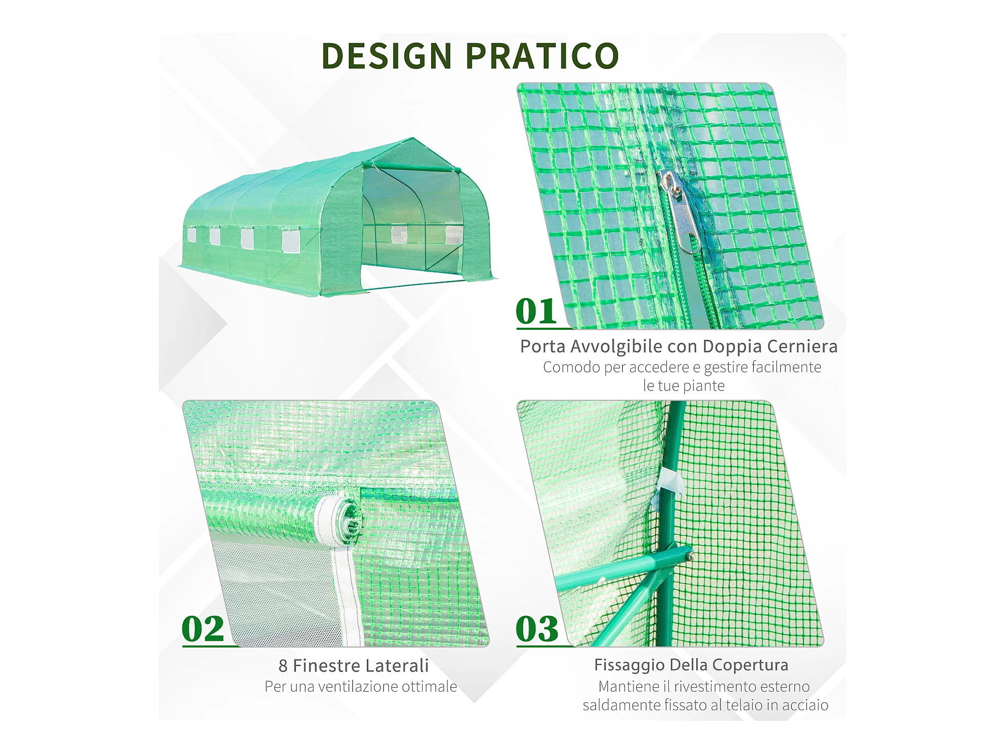 Serra a tunnel con 8 finestre laterali e ingresso avvolgibile verde