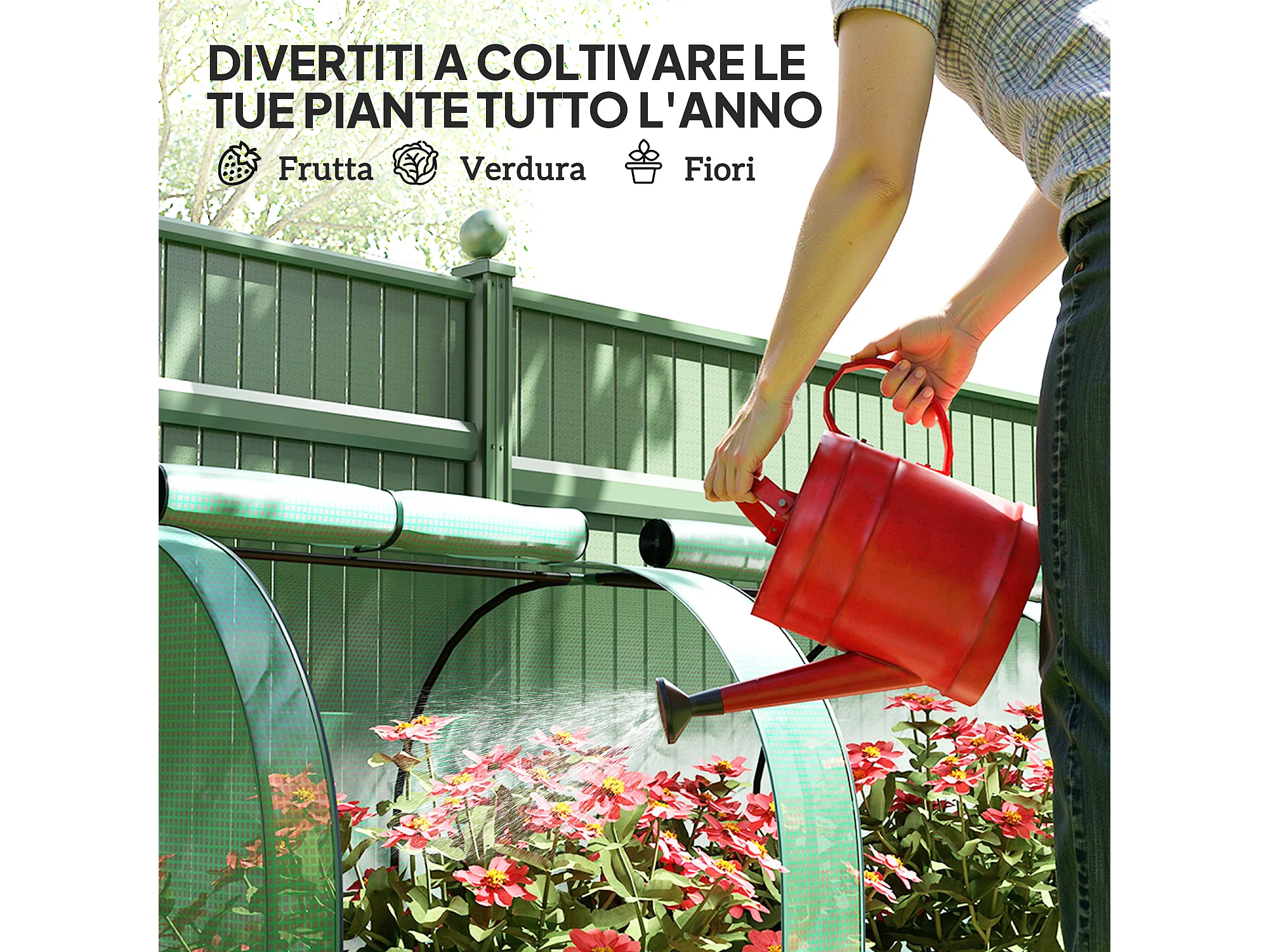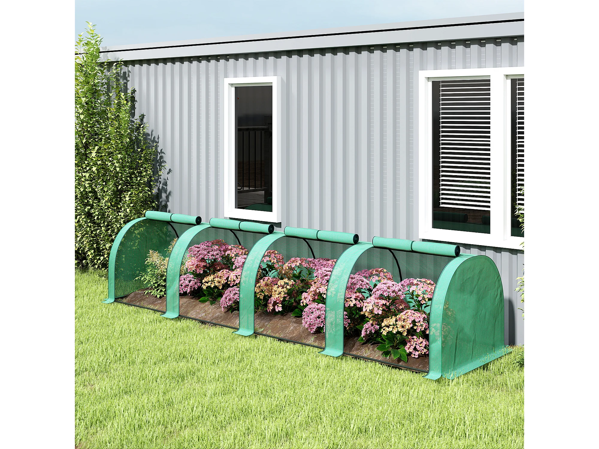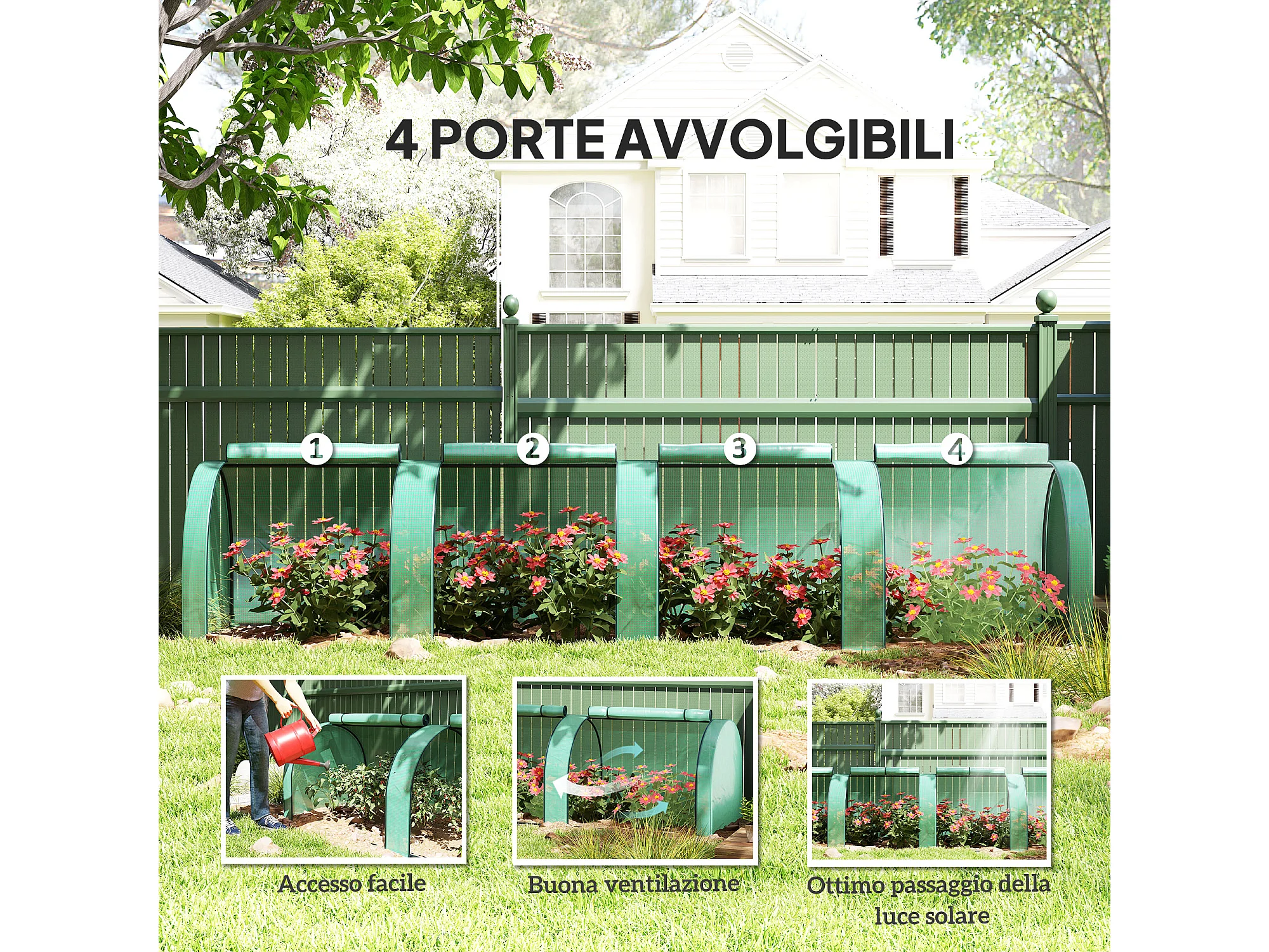 Serra da giardino con 2 coperture in pe e 4 finestre avvolgibili