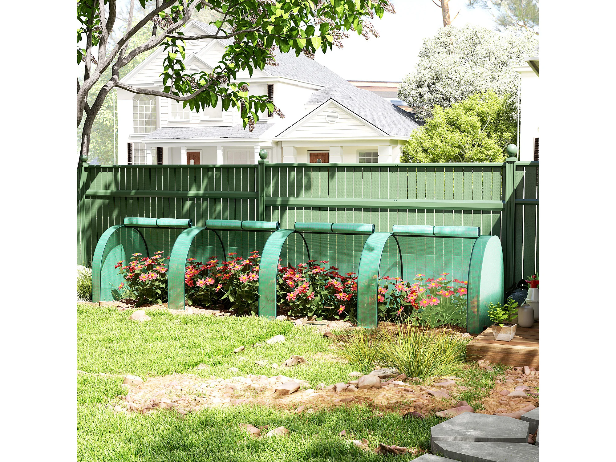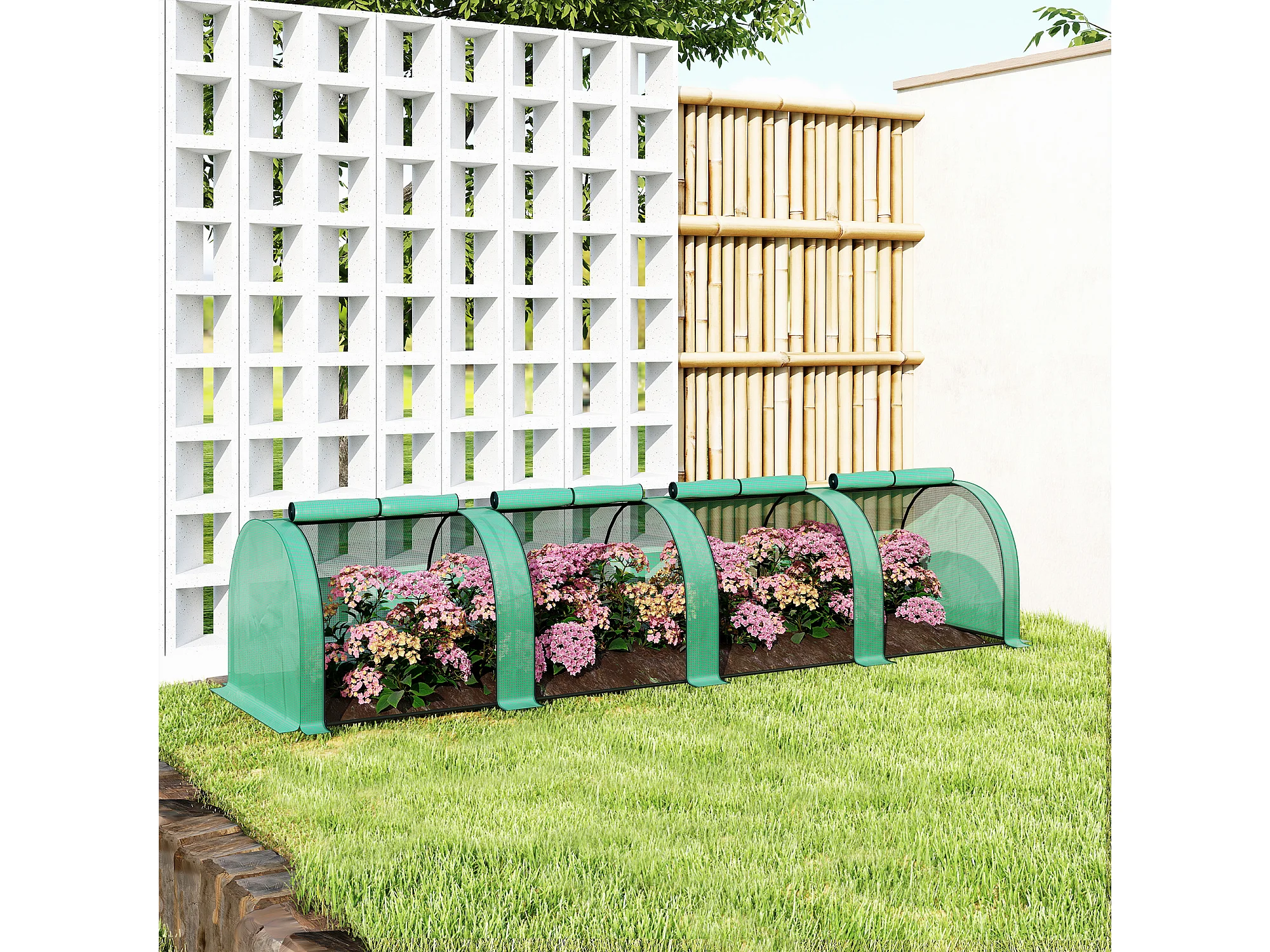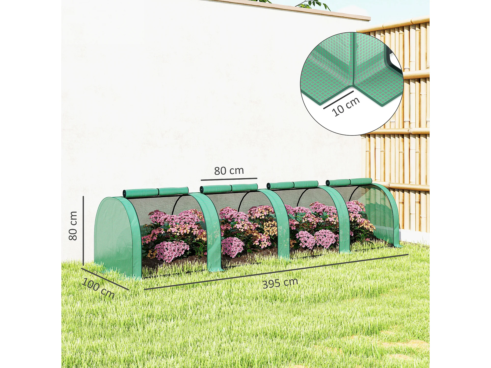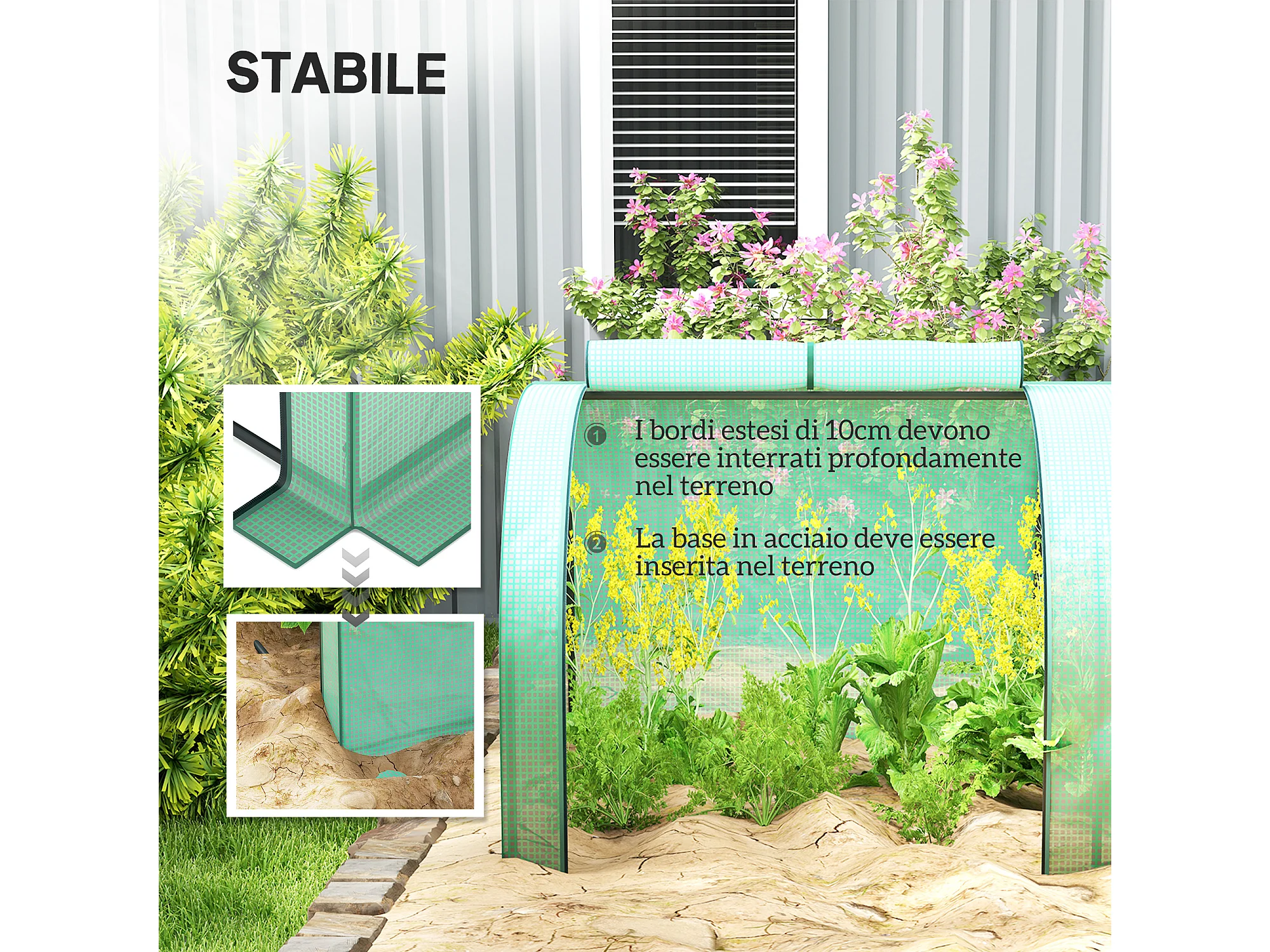 Serra da giardino con 2 coperture in pe e 4 finestre avvolgibili