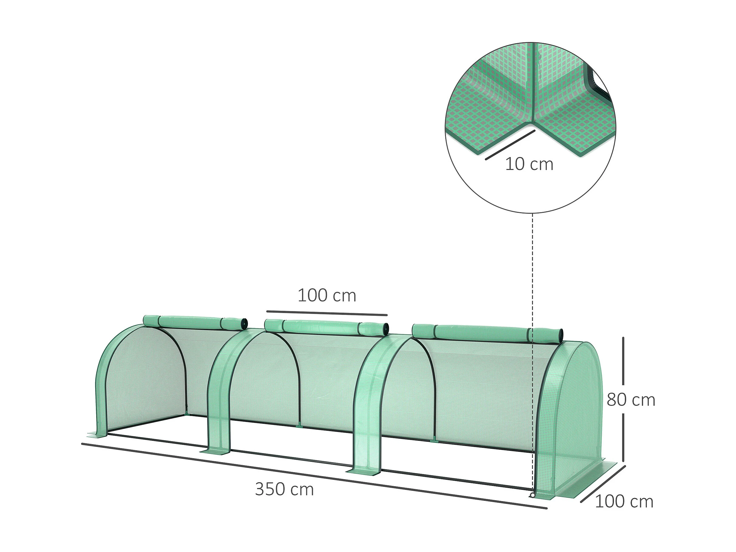 Serra da giardino 3x1x0.8m in acciaio e pp con porte avvolgibili verde