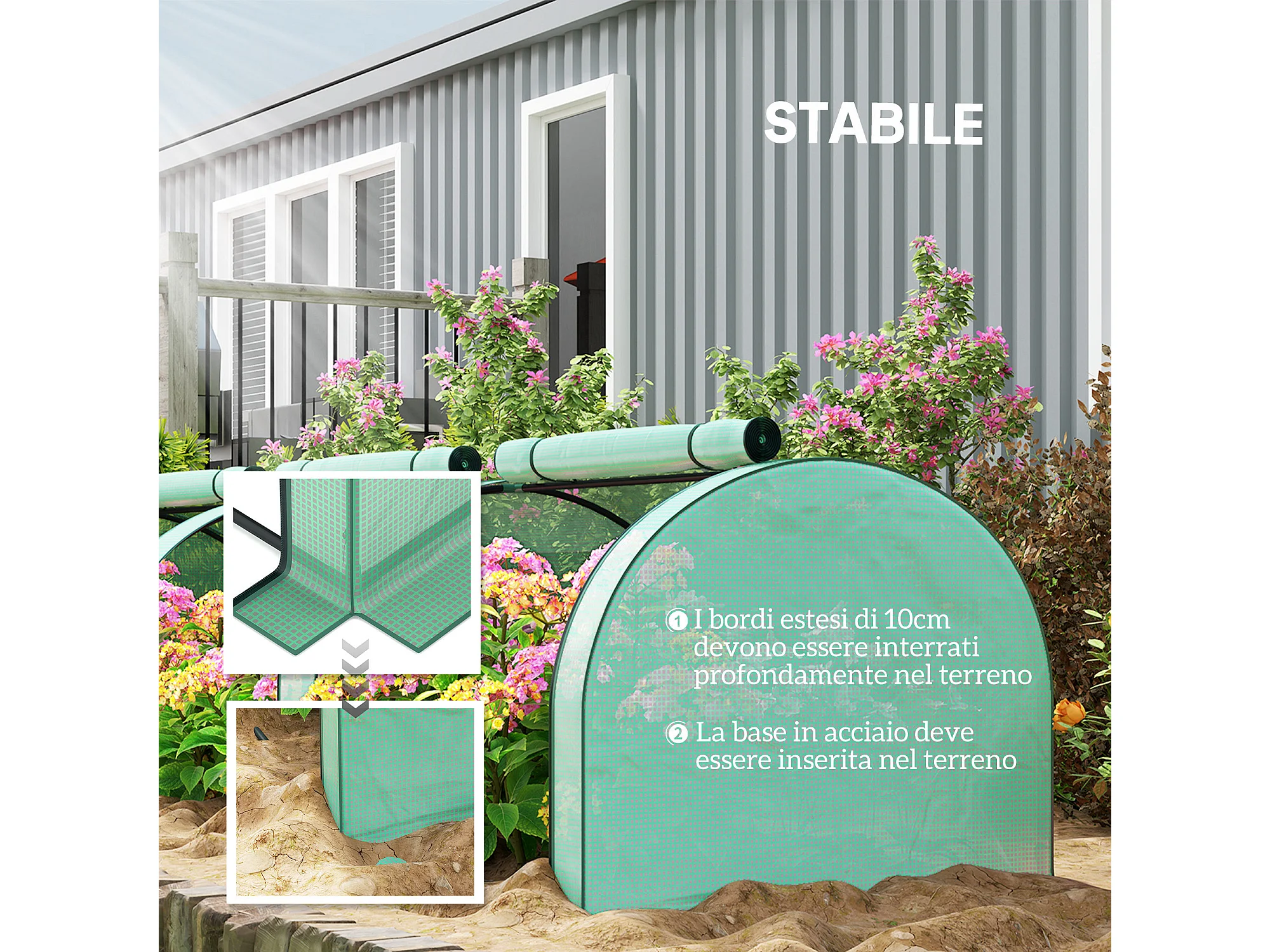 Mini serra da giardino a 4 porte arrotolabili in acciaio e pe verde