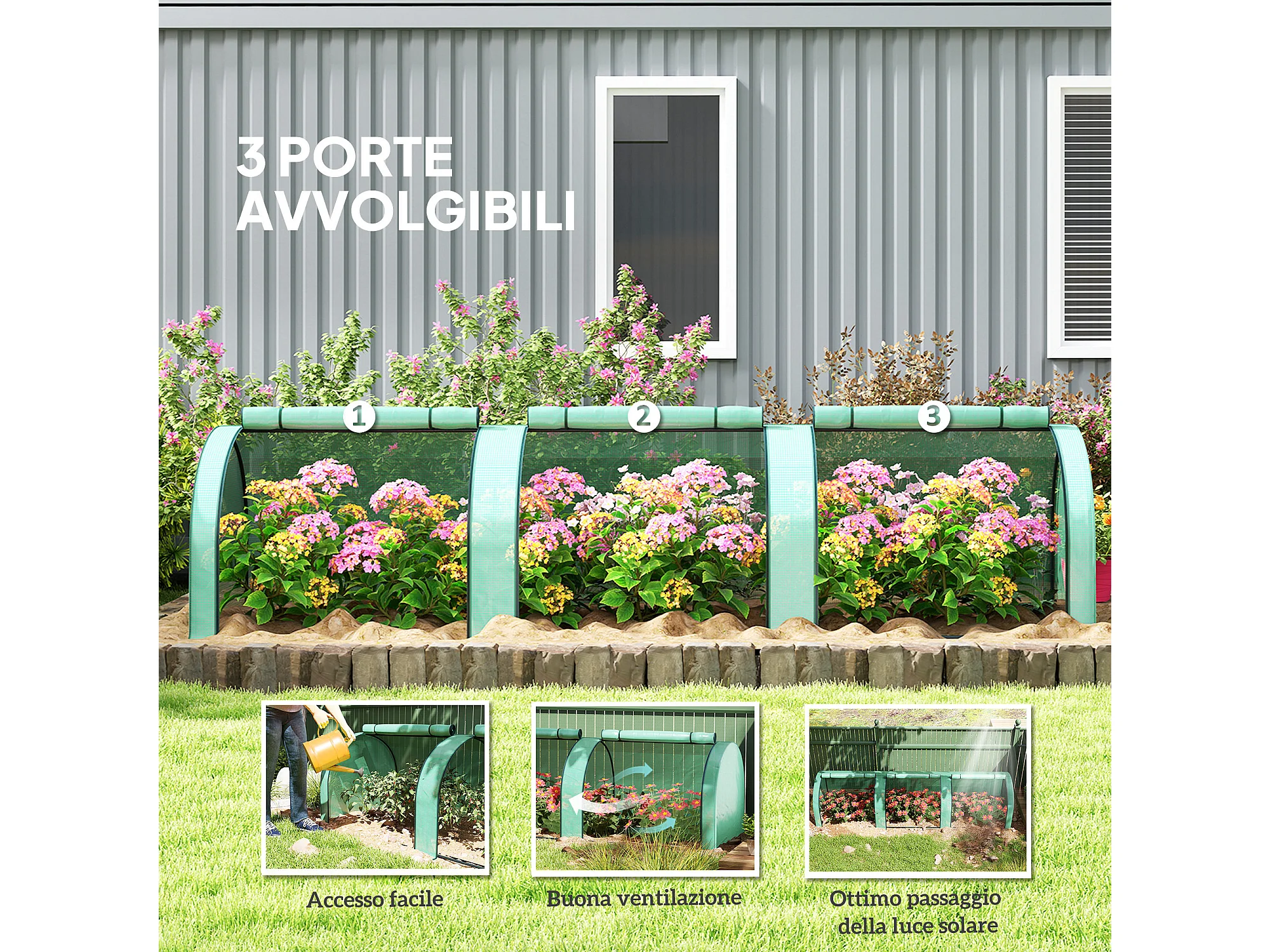 Serra per piante 4x1x0.8 m con 3 ingressi avvolgibili in acciaio e pe