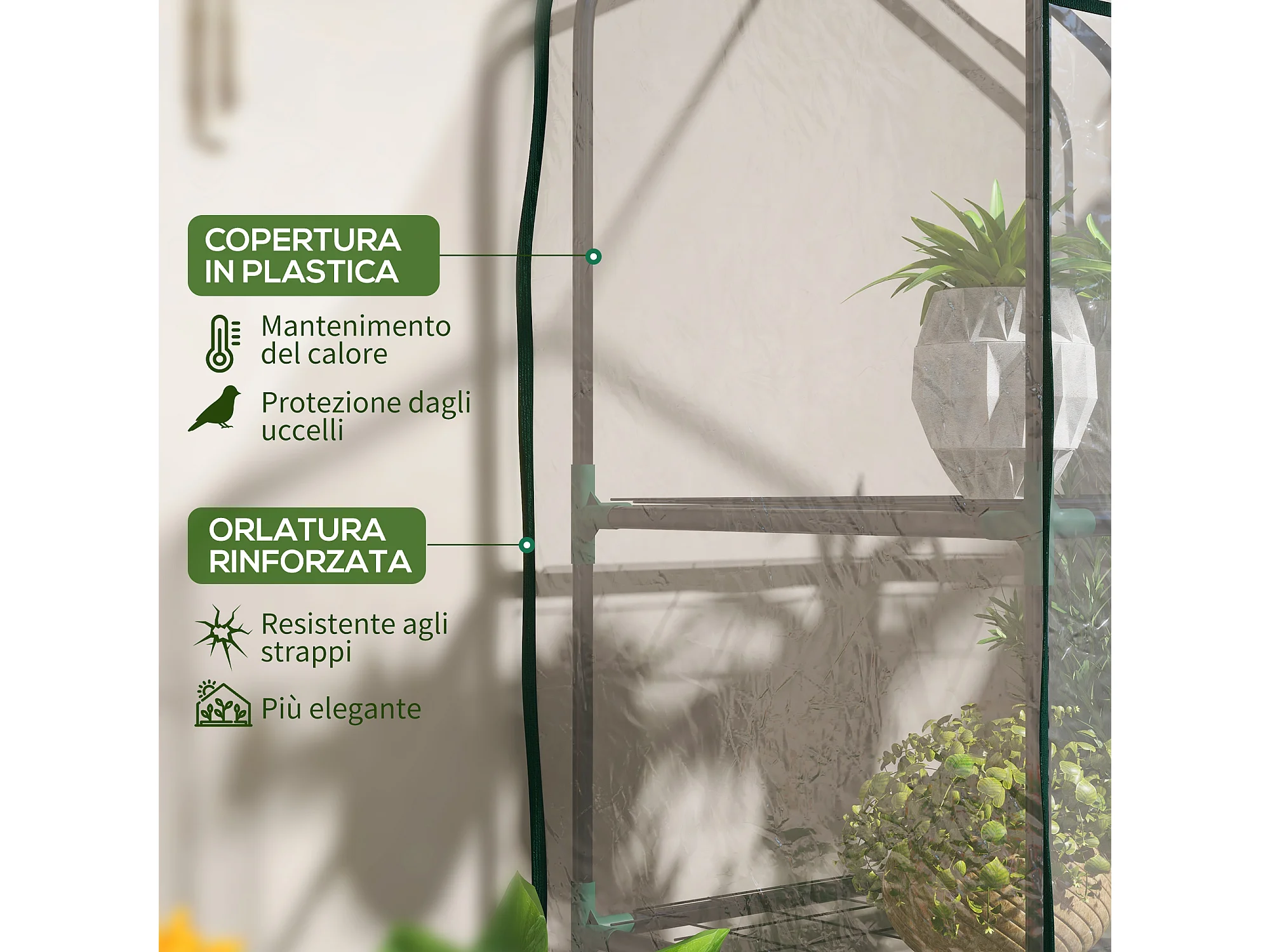 Serra da balcone a 4 livelli con 4 rotelle ingresso avvolgibile verde