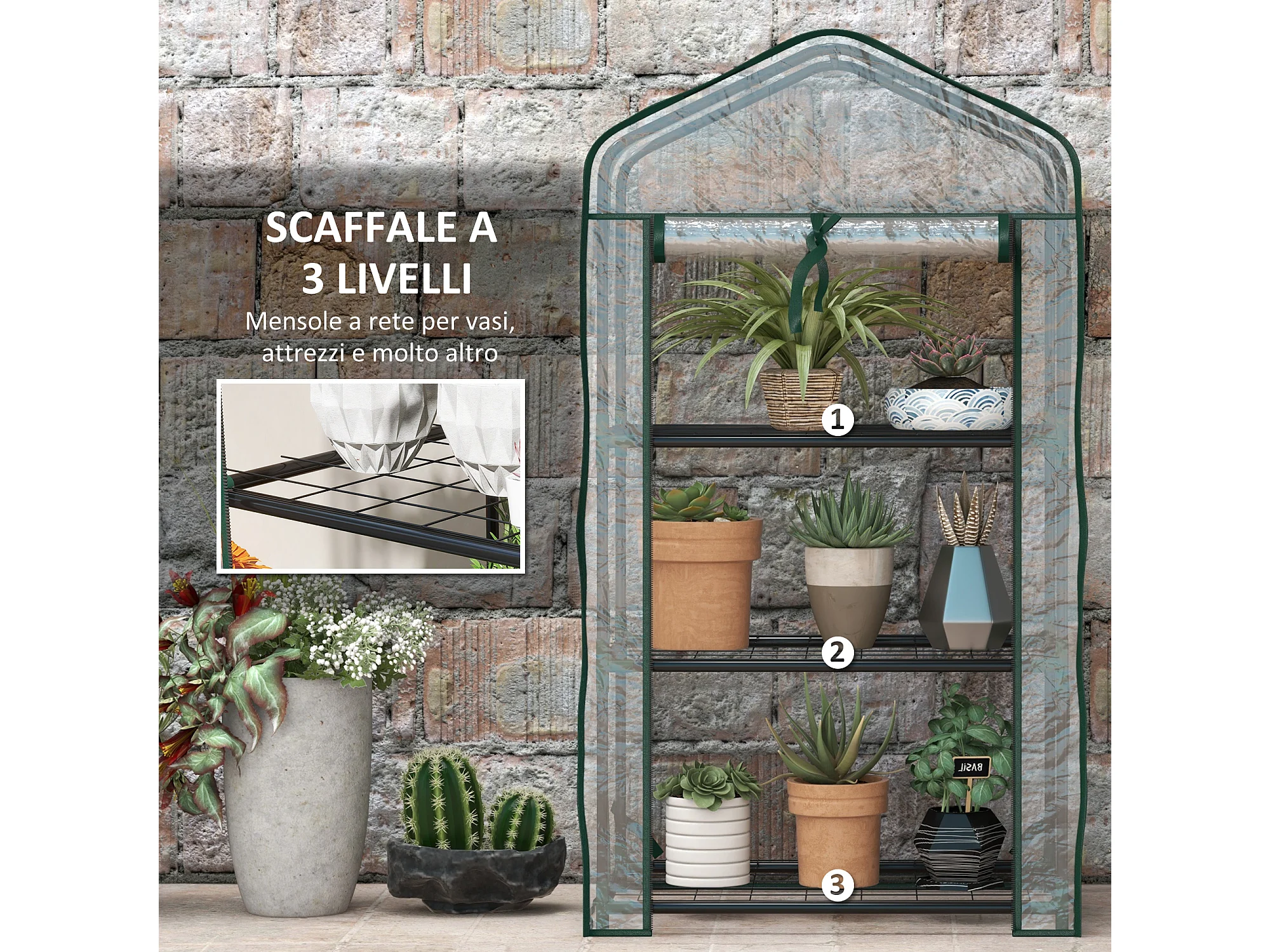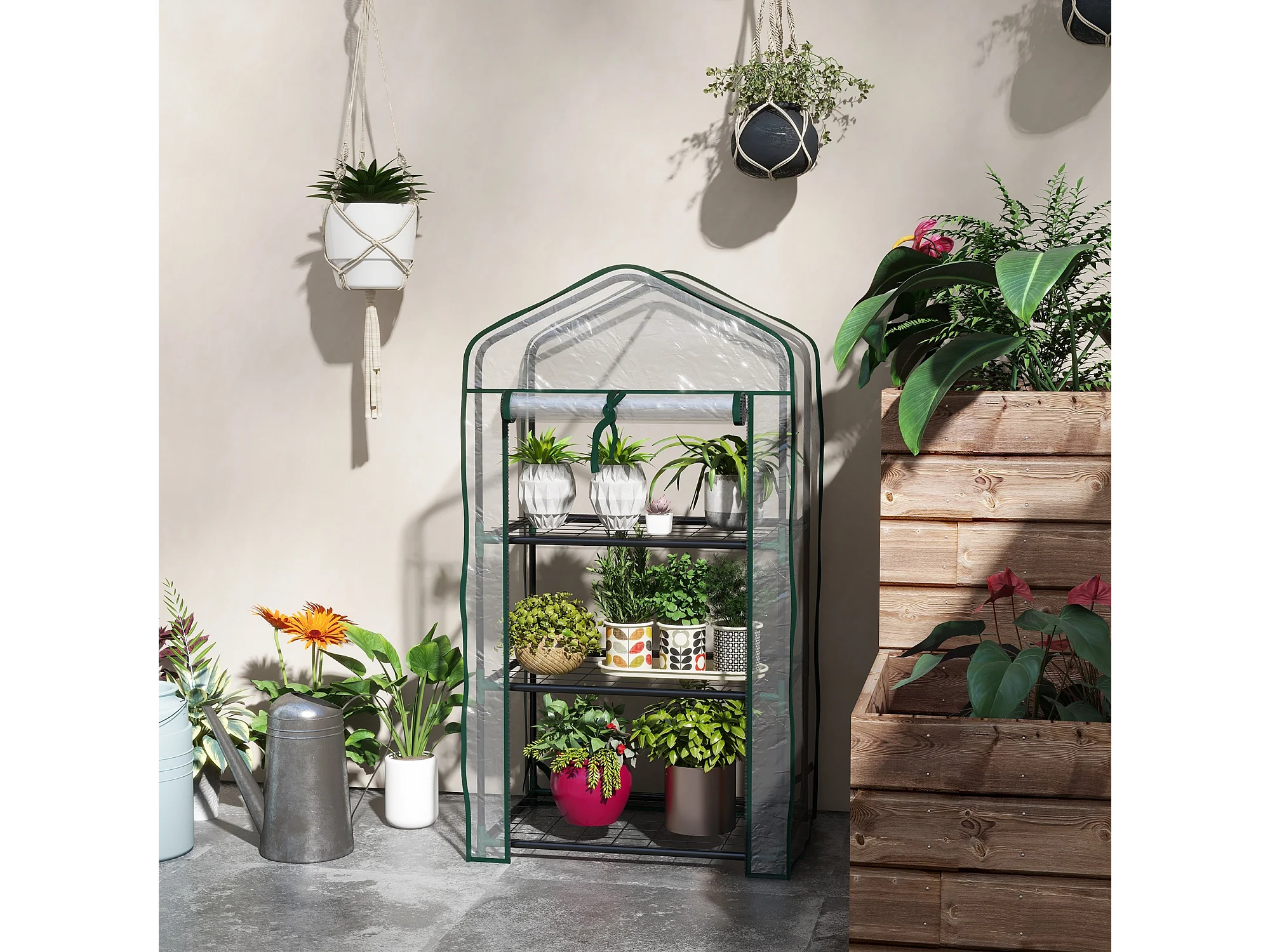 Serra da giardino a 3 livelli con copertura avvolgibile trasparente