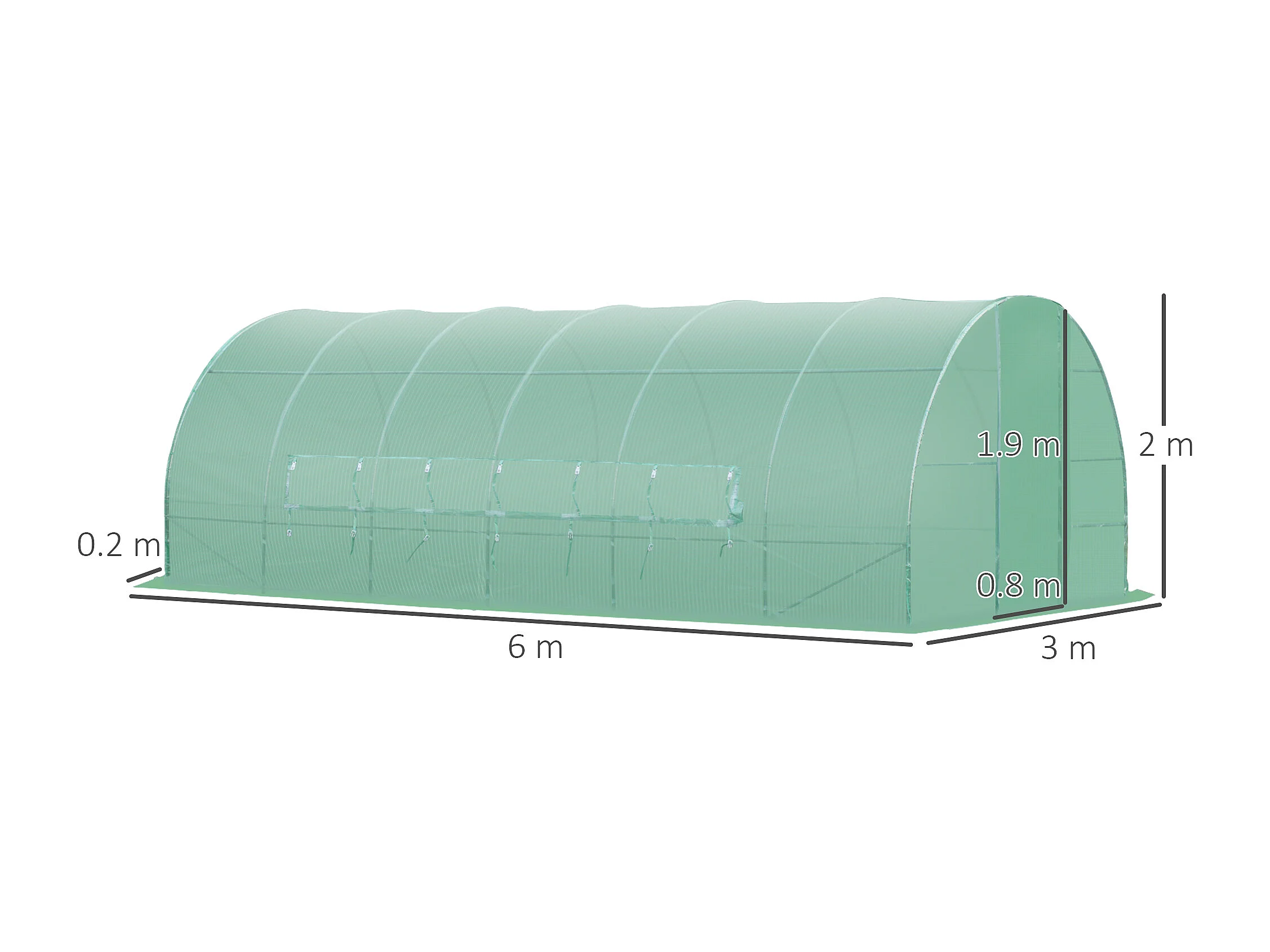 Serra a tunnel in acciaio e pe con 8 finestre 5.95x3x2 m verde